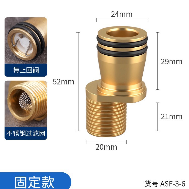 • 모델 F: 유형 20 58mm 곡선 피트(필터 체크 밸브로 고정)