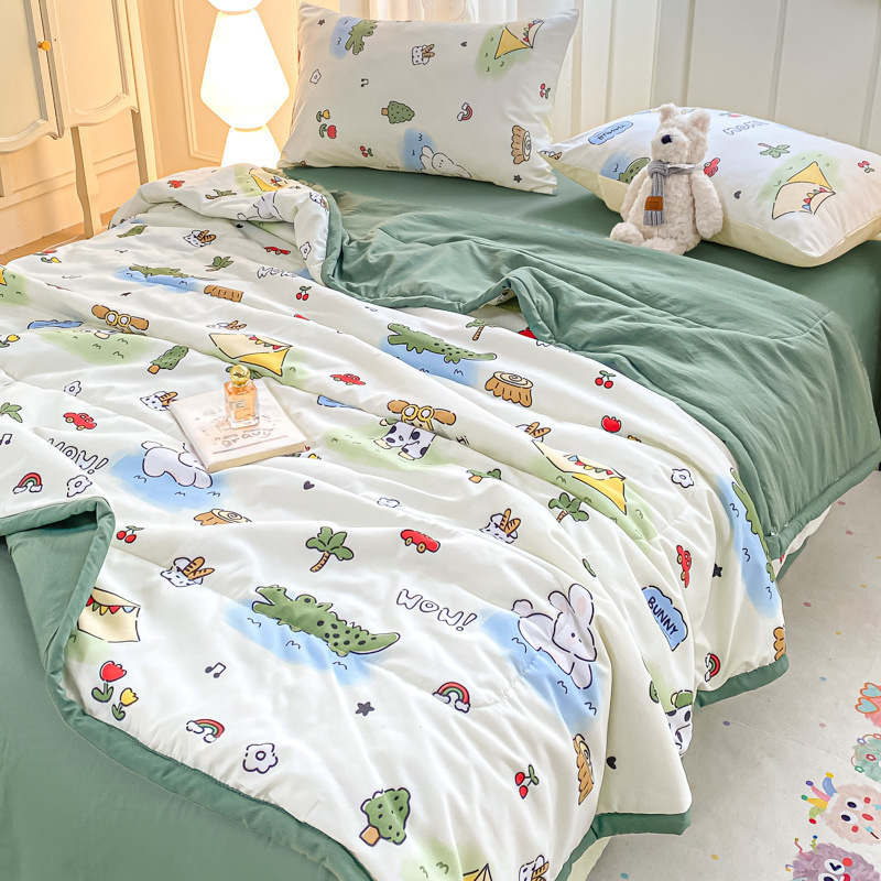 100% 순면 여름 시원한 이불 에어컨 이불 여름 얇은 이불 완전 세탁기로 세탁 가능한 싱글 및 더블 봄, 가을 기숙사 어린이 이불