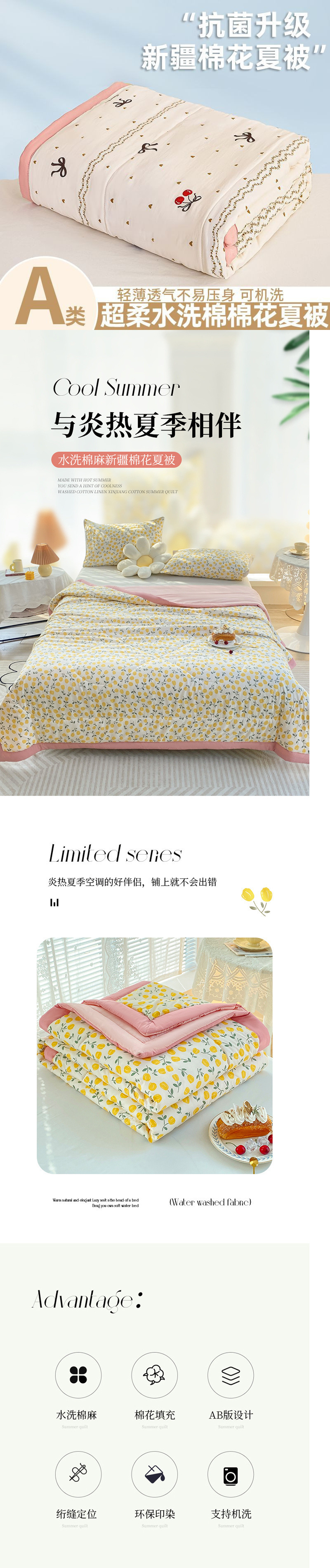 100% 순면 여름 시원한 이불 에어컨 이불 여름 얇은 이불 완전 세탁기로 세탁 가능한 싱글 및 더블 봄, 가을 기숙사 어린이 이불스토어 가기