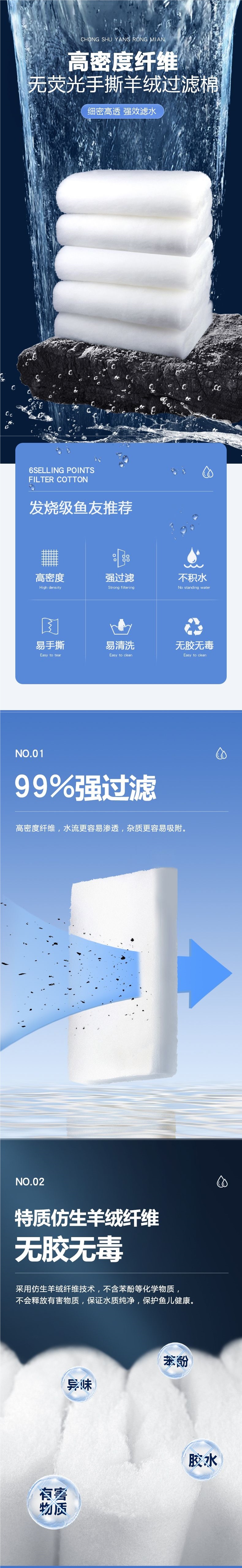 물고기 탱크 필터 면, 정수, 두껍고 암호화된, 높은 투수성, 강력한 박테리아 배양, 수족관 특수 필터 재료 장비 청소 유물스토어 가기