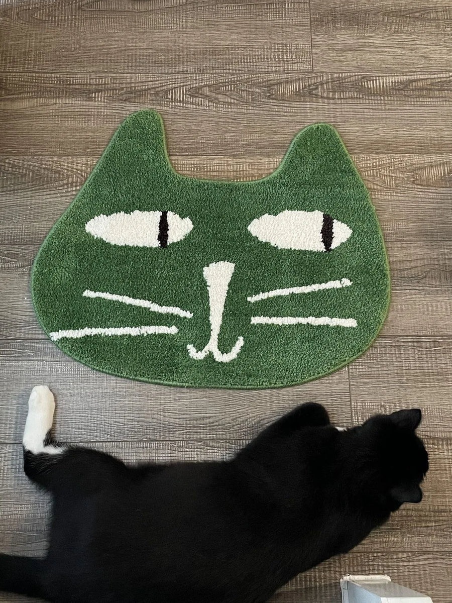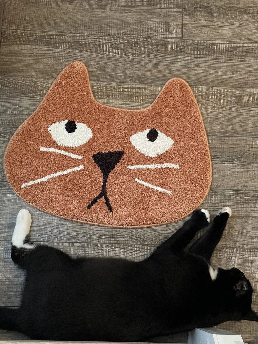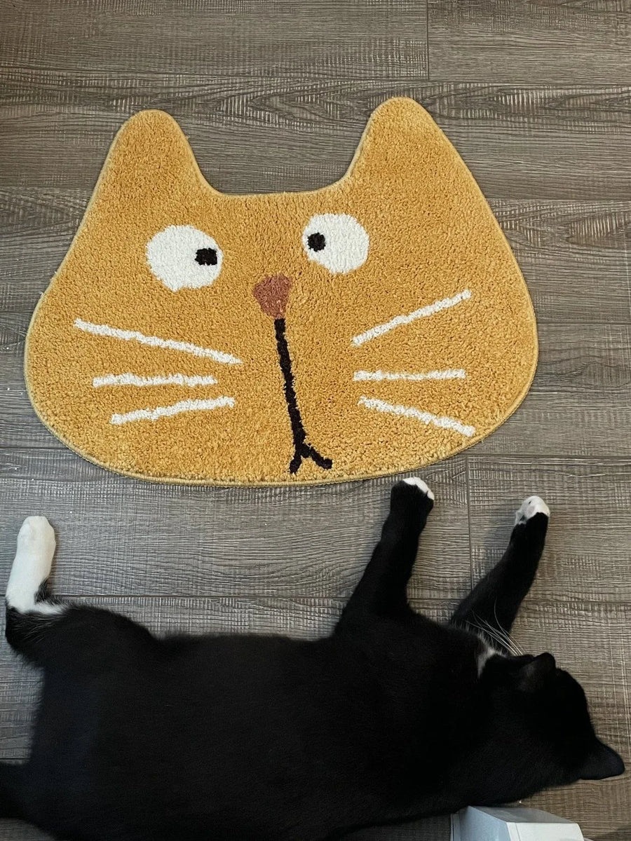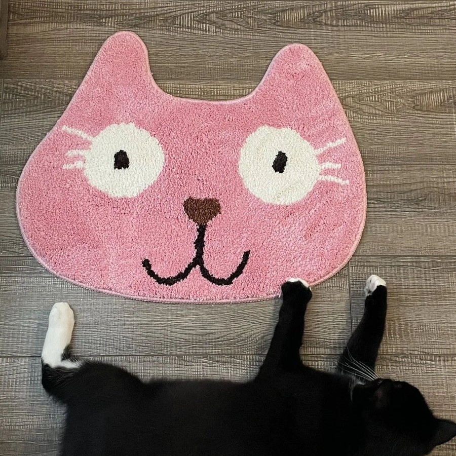 국경 간 만화 불규칙한 고양이 얼굴 모조 캐시미어 입구 문 바닥 매트 욕실 미끄럼 방지 흡수성 발 매트 부드러운 침대 옆 매트스토어 가기