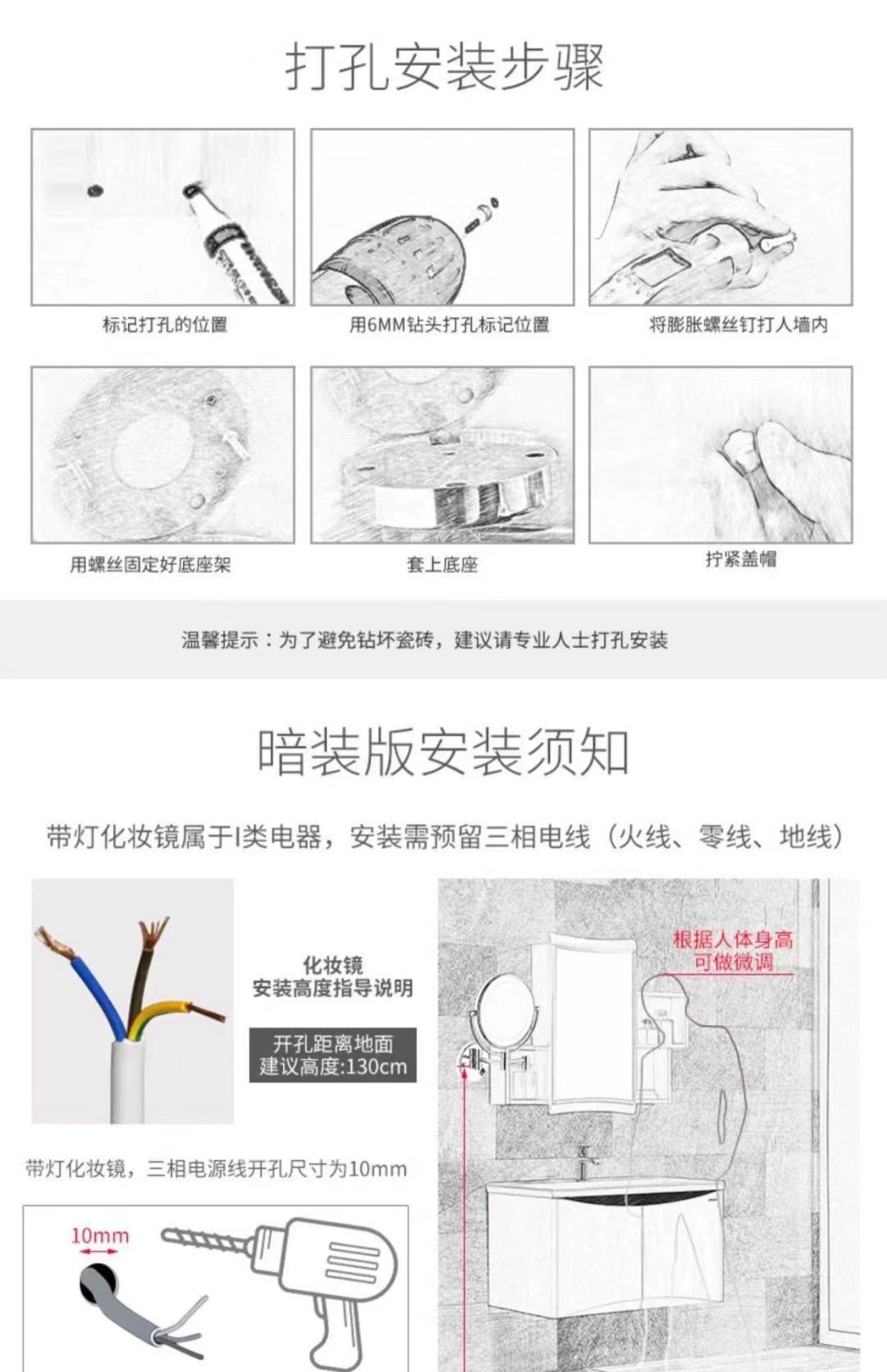 비엔나 호텔 LED 조명 양면 화장 거울 힐튼 리본 호텔 욕실 접이식 텔레스코픽 스윙 거울스토어 가기