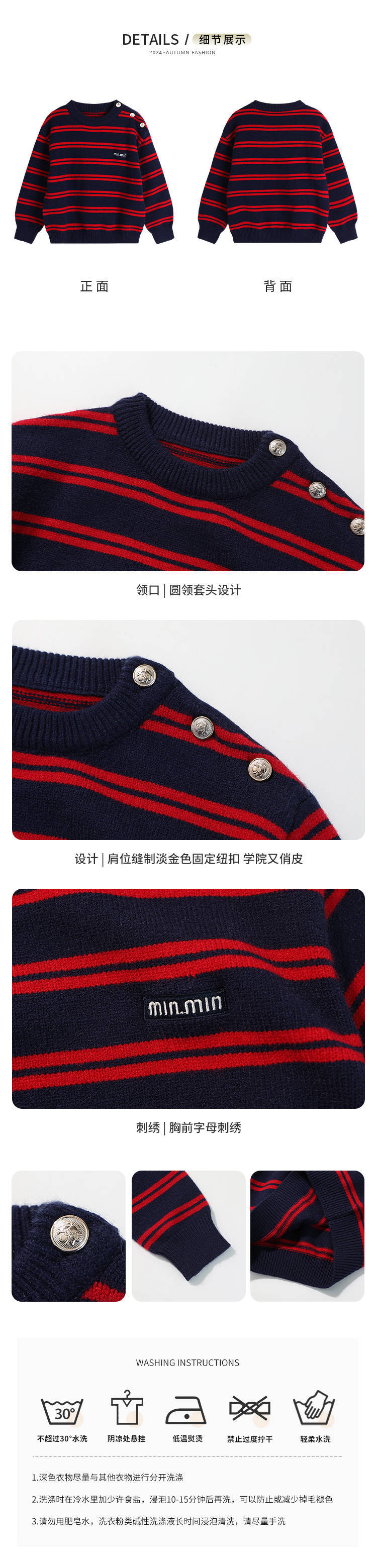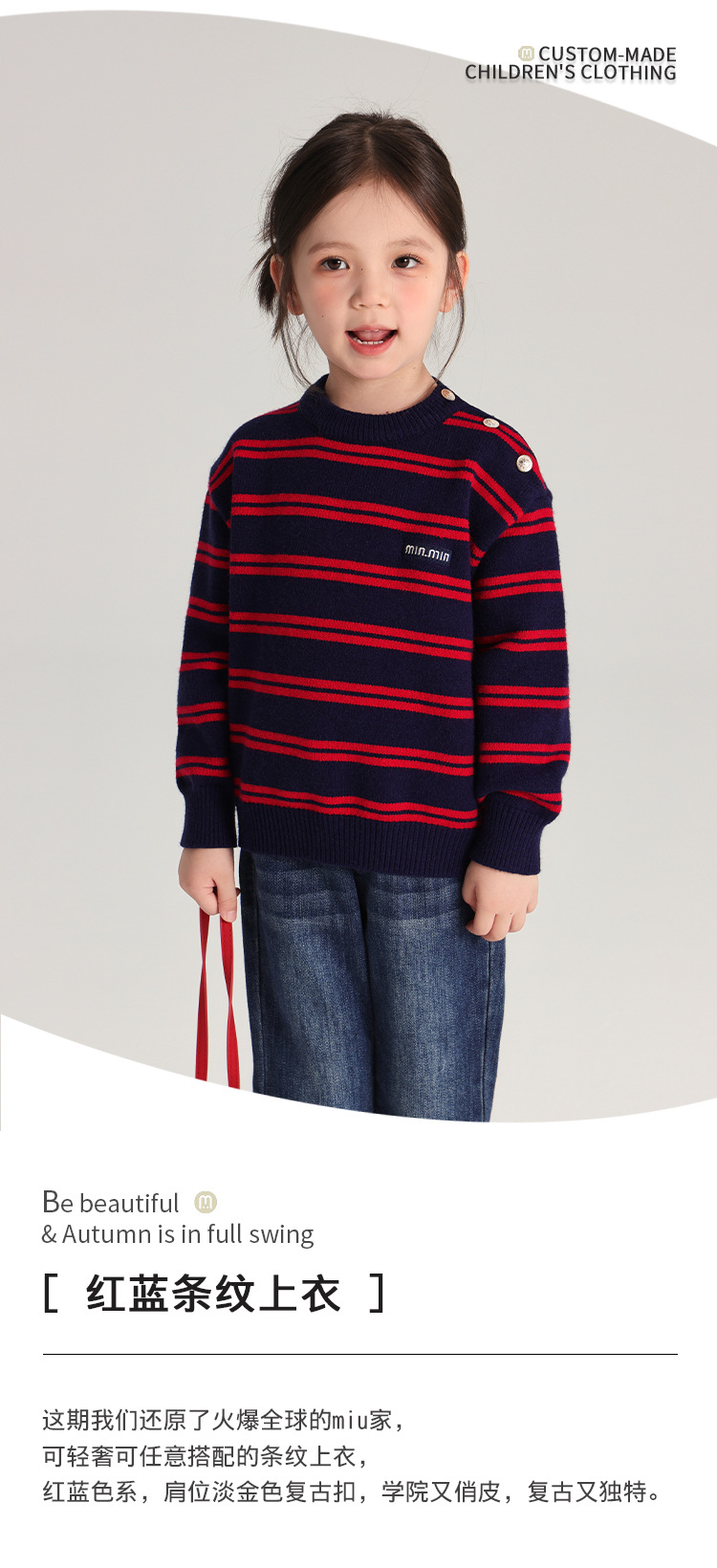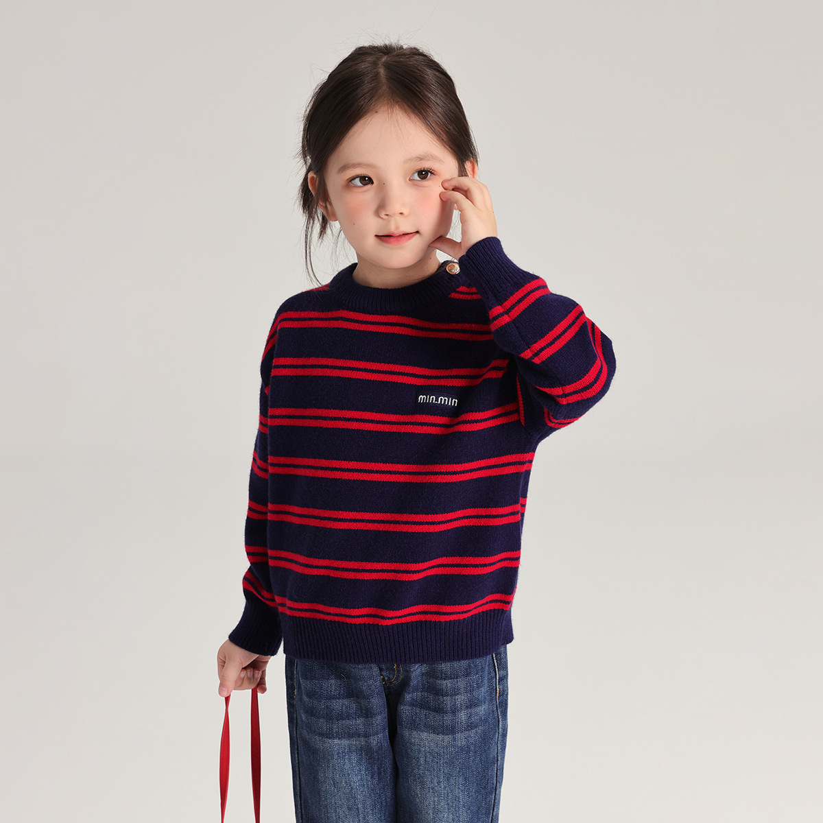 레드 로얄 블루 스트라이프 니트 심플 걸스 스웨터 2024 가을, 겨울 풀오버 긴 소매 스웨터 걸스 탑스토어 가기