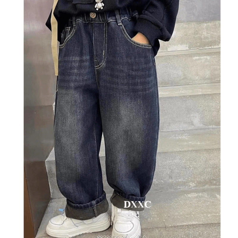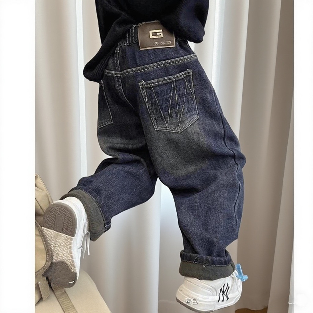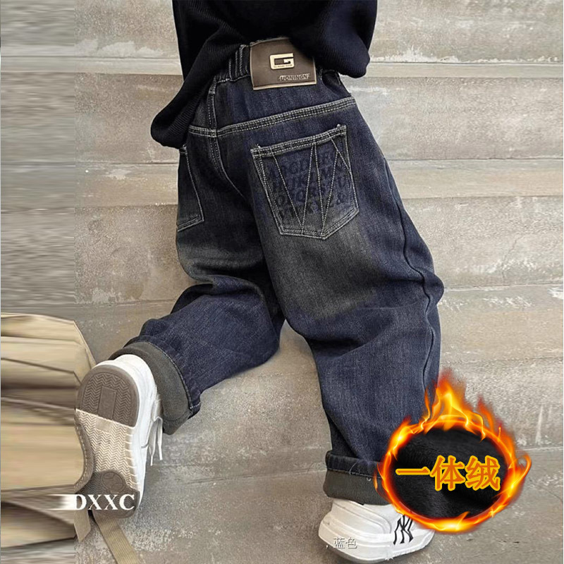 남아용 한국식 청바지, 아동용 가을 겨울 벨벳 바지, 신형 남아용 중대형 아동용 루즈한 데님 바지