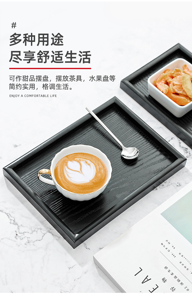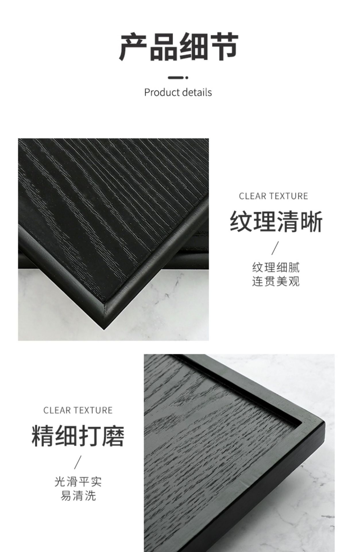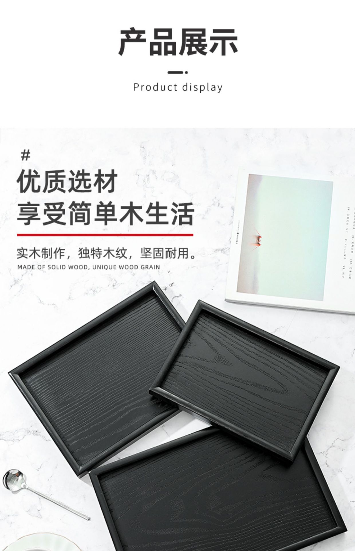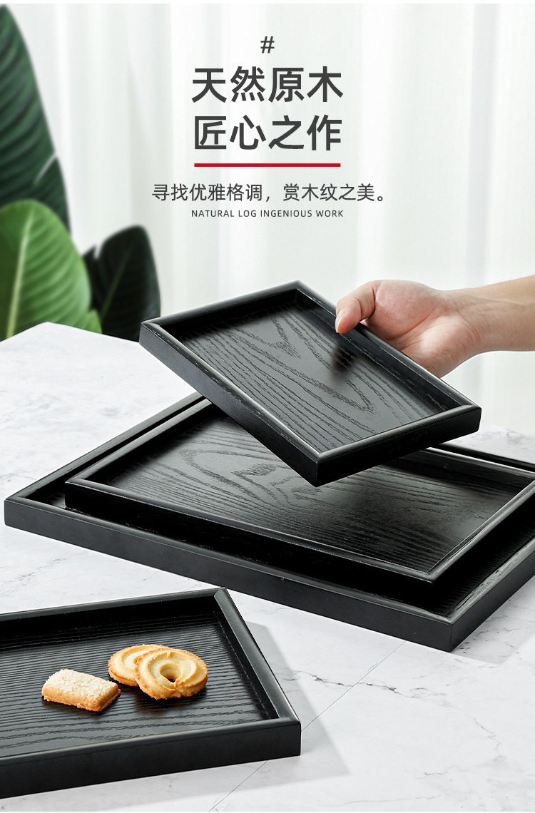 일본식 검은 나무 트레이 직사각형 물 컵 차 트레이 호텔 서빙 트레이 디너 트레이 호텔 단단한 나무 트레이 조각