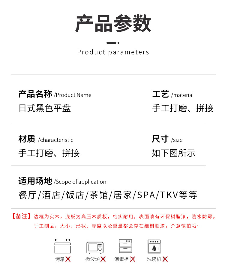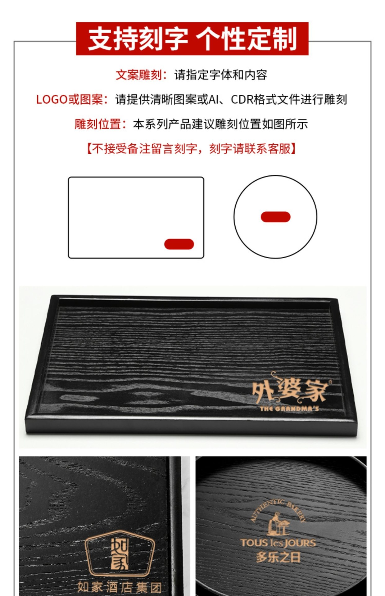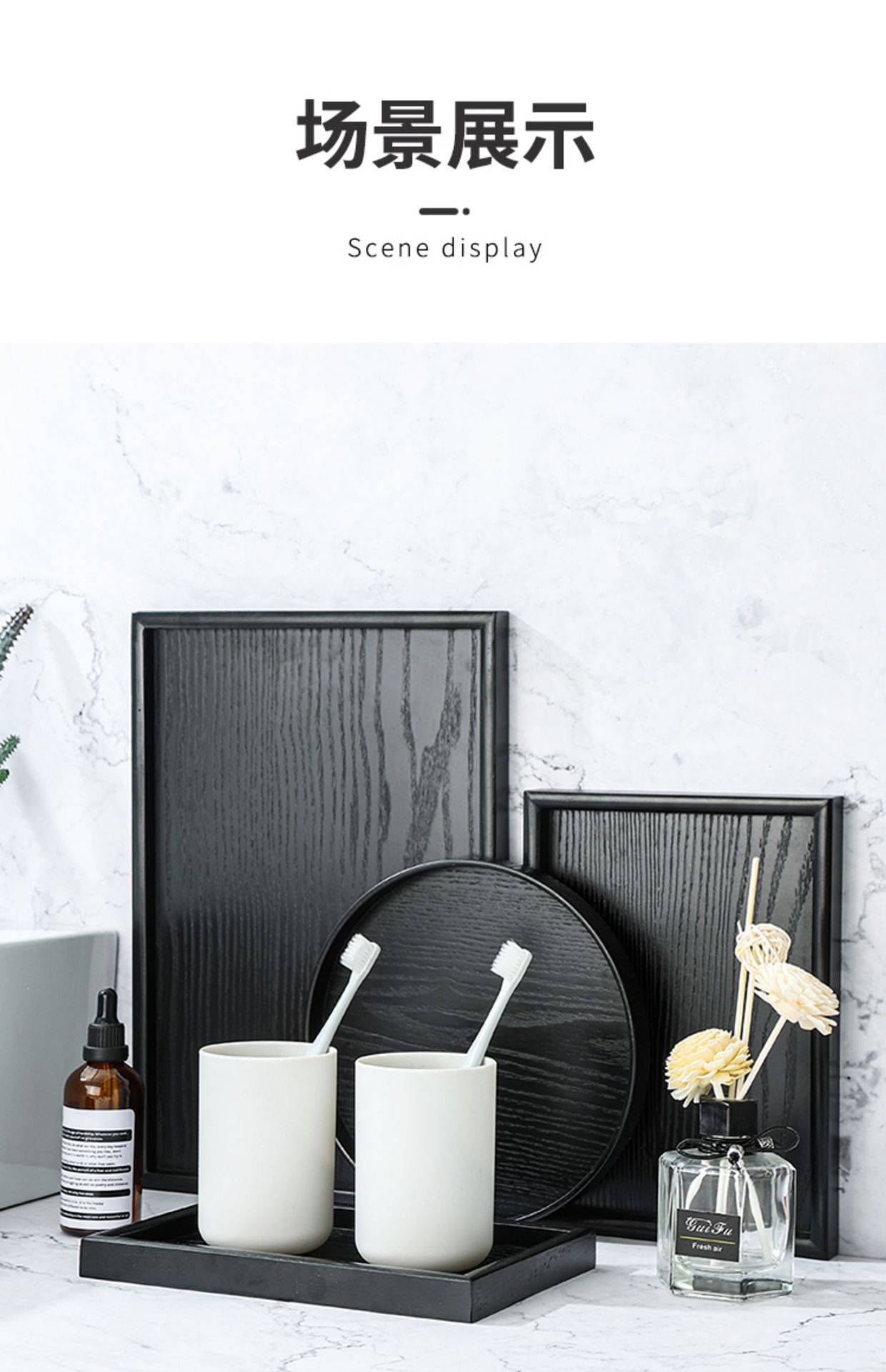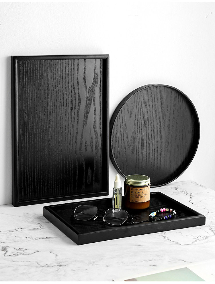 일본식 검은 나무 트레이 직사각형 물 컵 차 트레이 호텔 서빙 트레이 디너 트레이 호텔 단단한 나무 트레이 조각