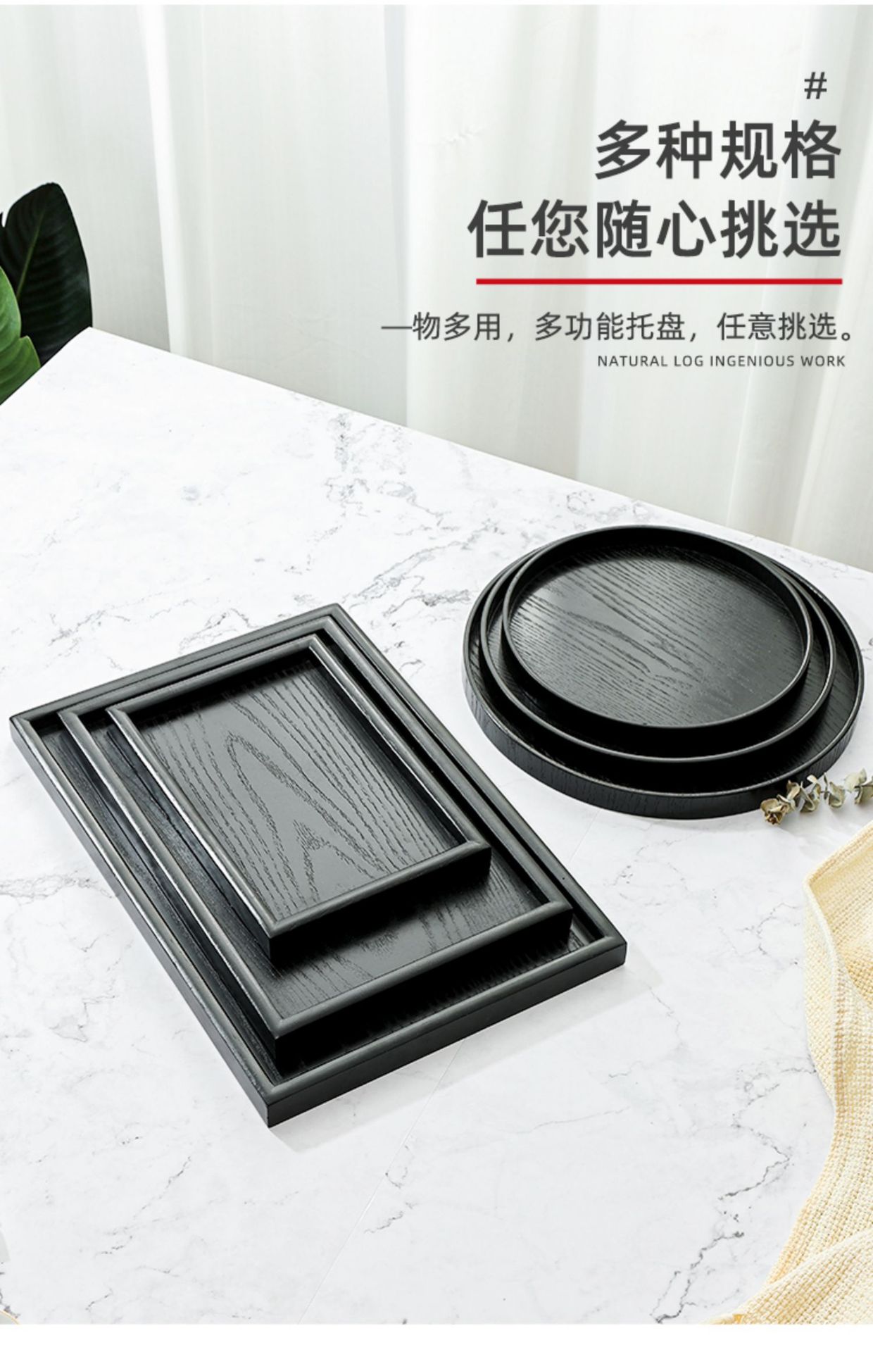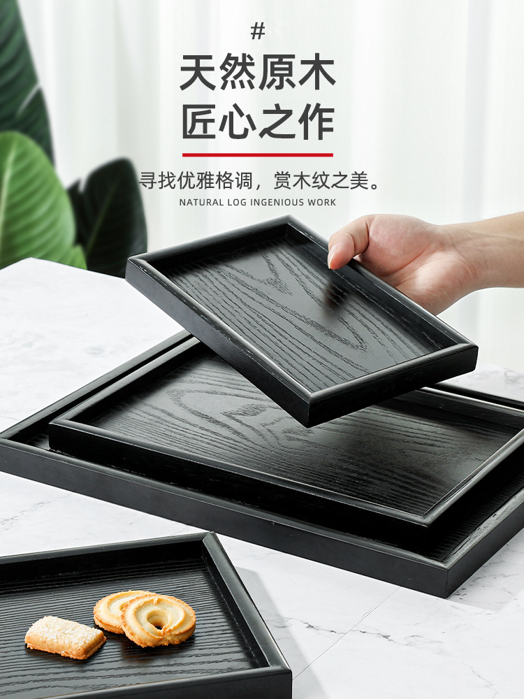 일본식 검은 나무 트레이 직사각형 물 컵 차 트레이 호텔 서빙 트레이 디너 트레이 호텔 단단한 나무 트레이 조각스토어 가기
