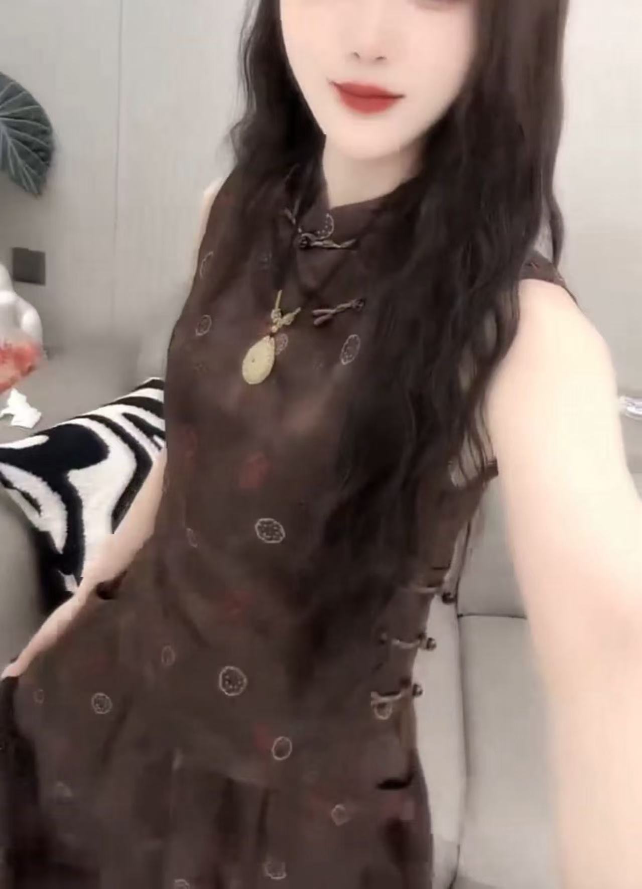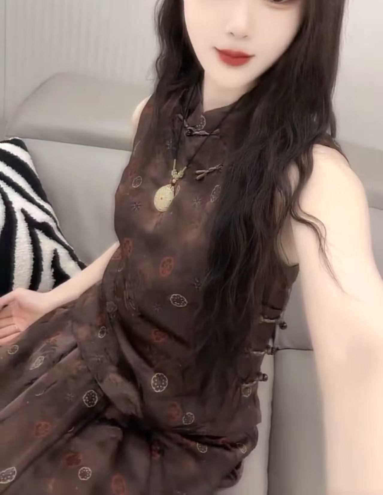 82503 Xin Da Mei Yiyuan 2025 여름 새로운 중국 스타일 버튼 민소매 탑 하이 웨이스트 스커트 여성용스토어 가기