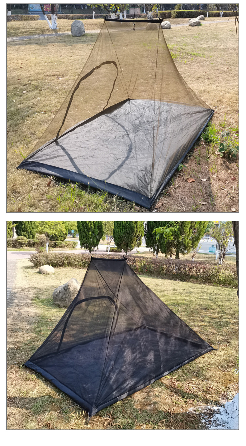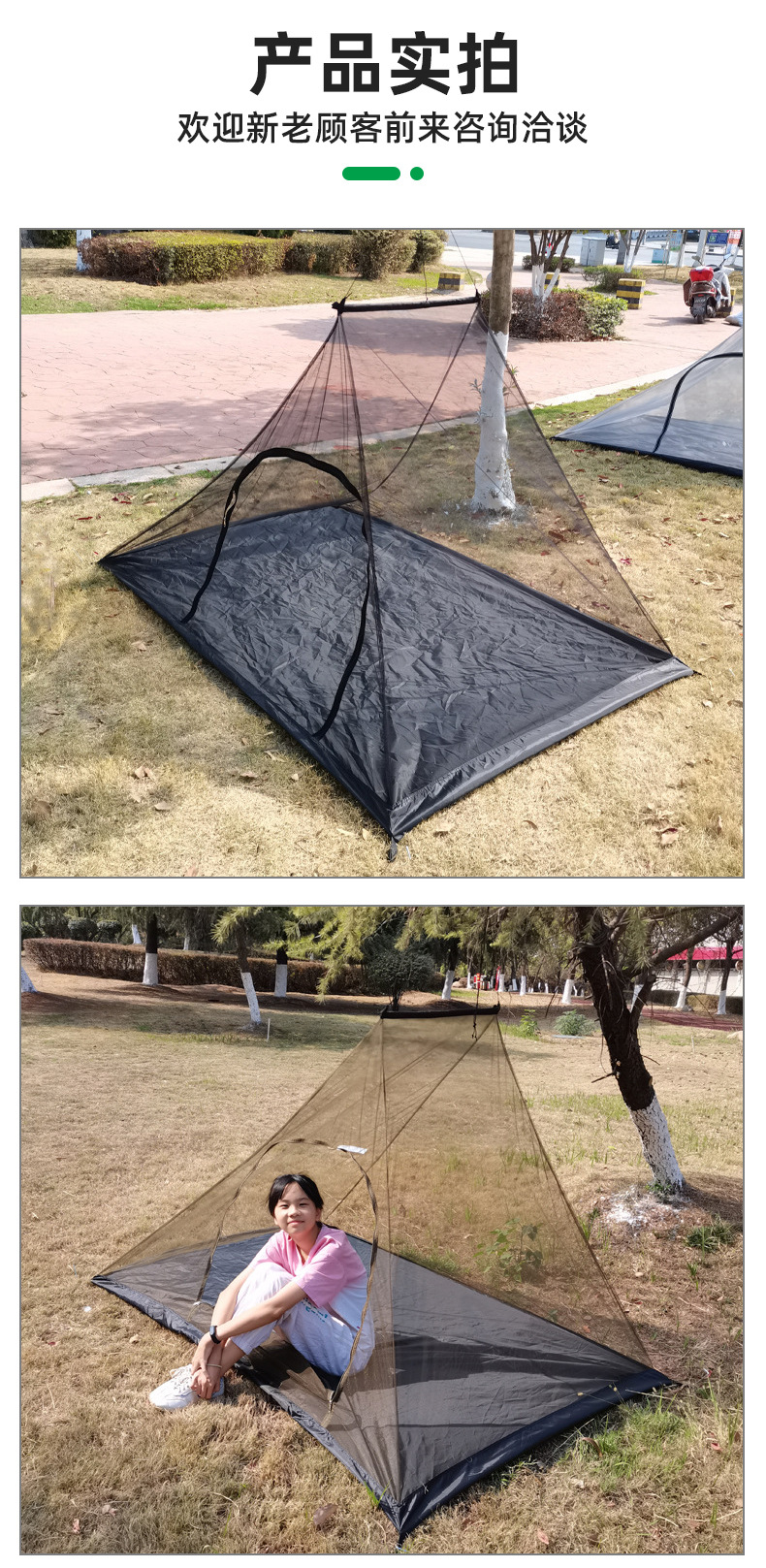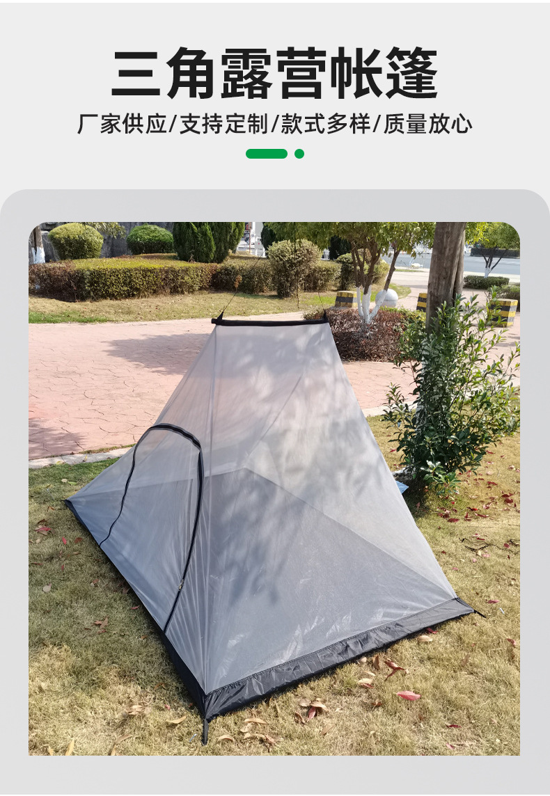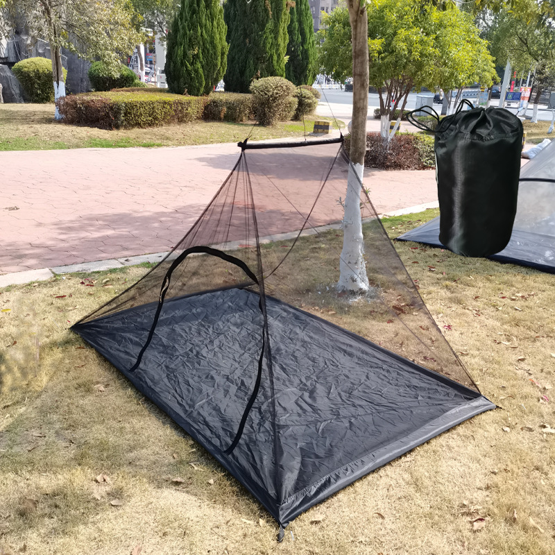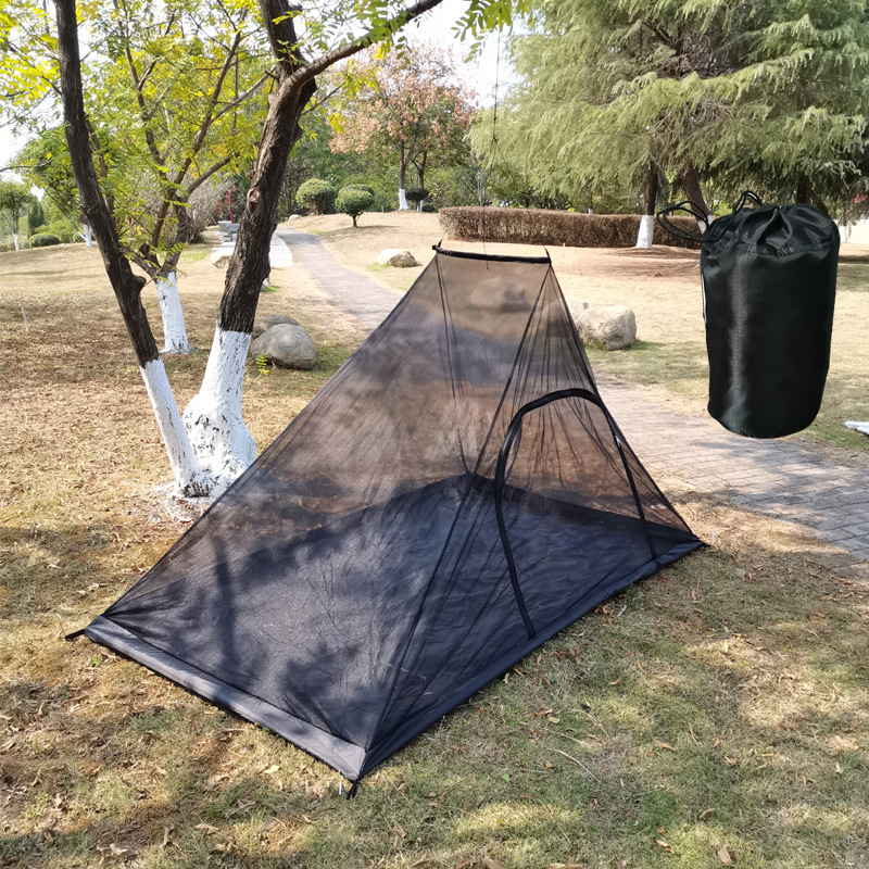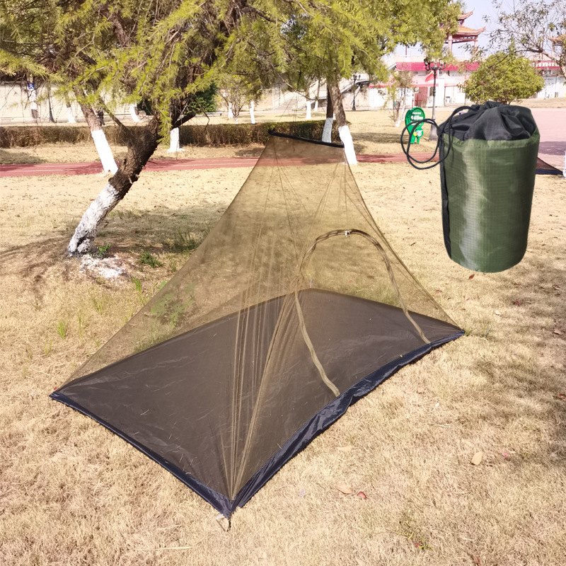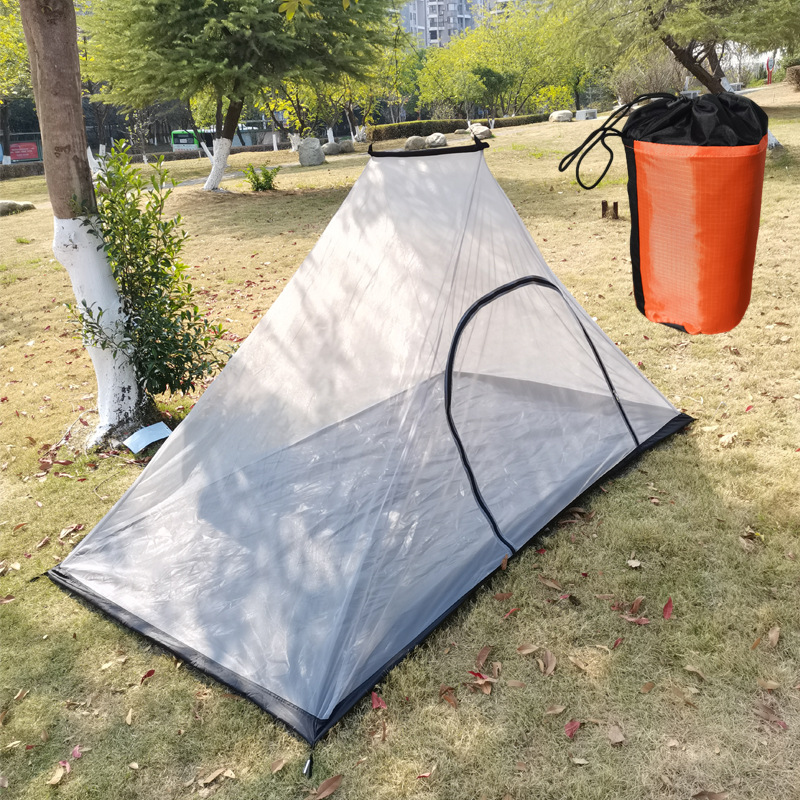휴대용 접이식 텐트, 2인용 야외 메쉬 모기 방지 텐트, 막대가 있는 하이킹, 여행 및 레저용 바닥이 있는 삼각형 텐트