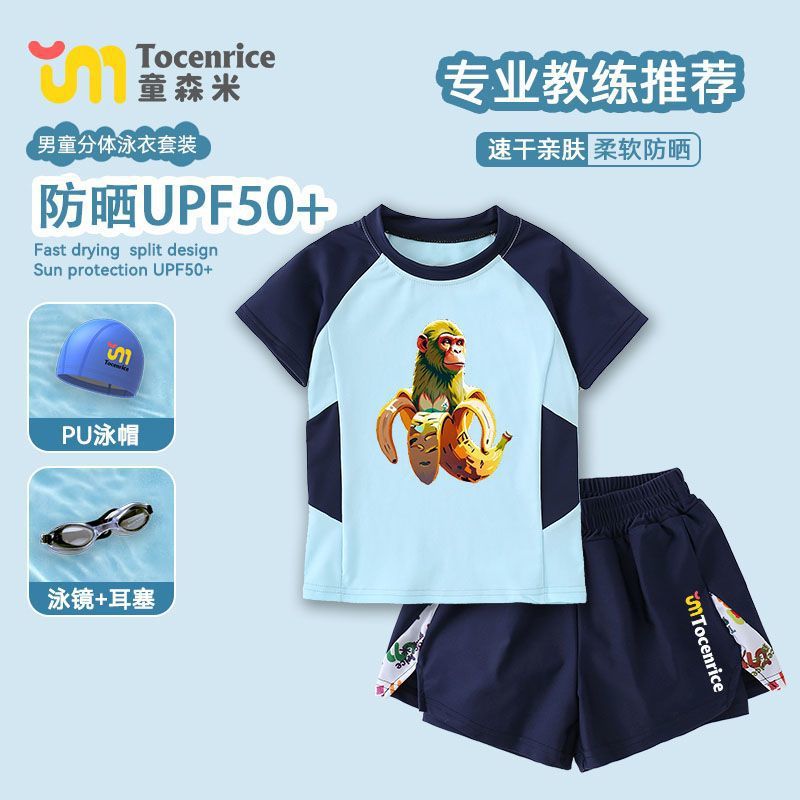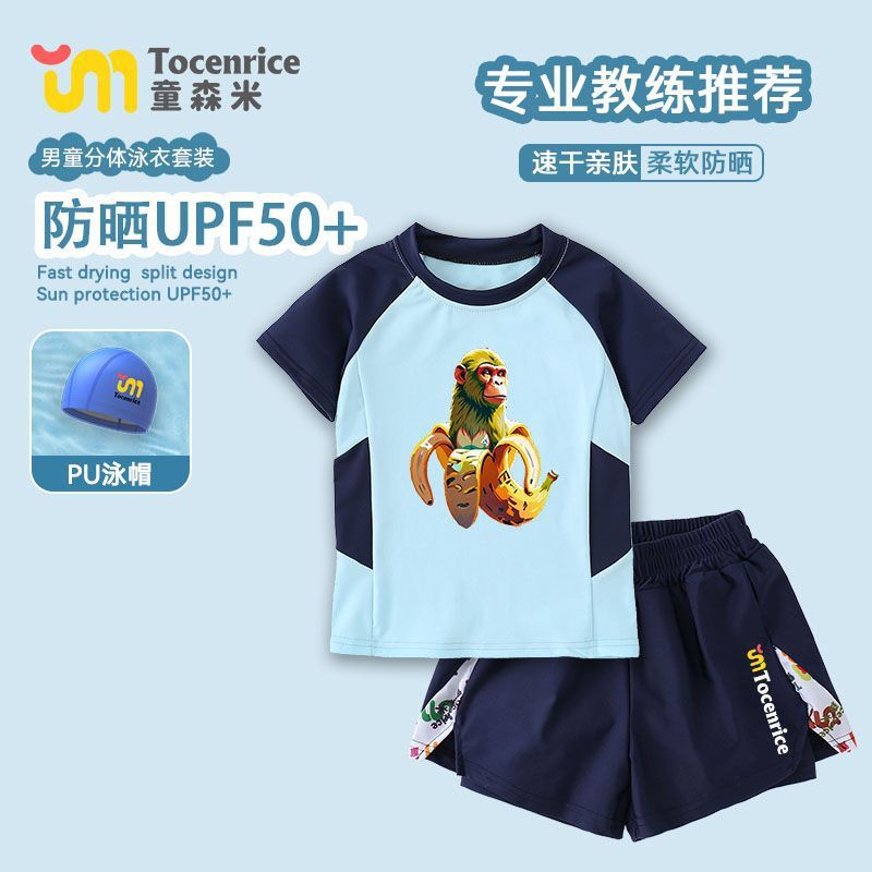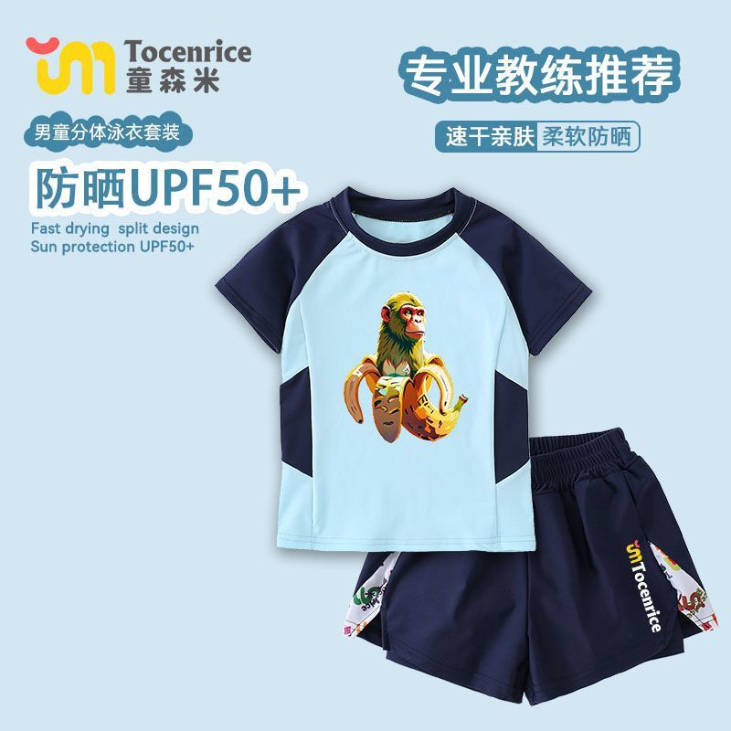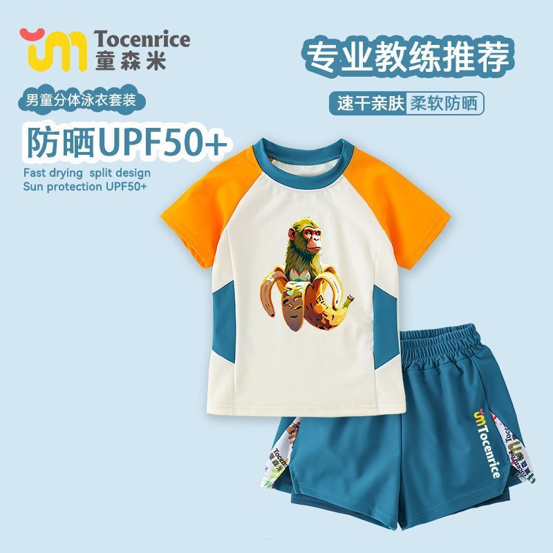 수영복 어린이 소년 스플릿 자외선 차단 수영복 산과 바다 인쇄 2025 새로운 소년 수영 속건성 슈트스토어 가기