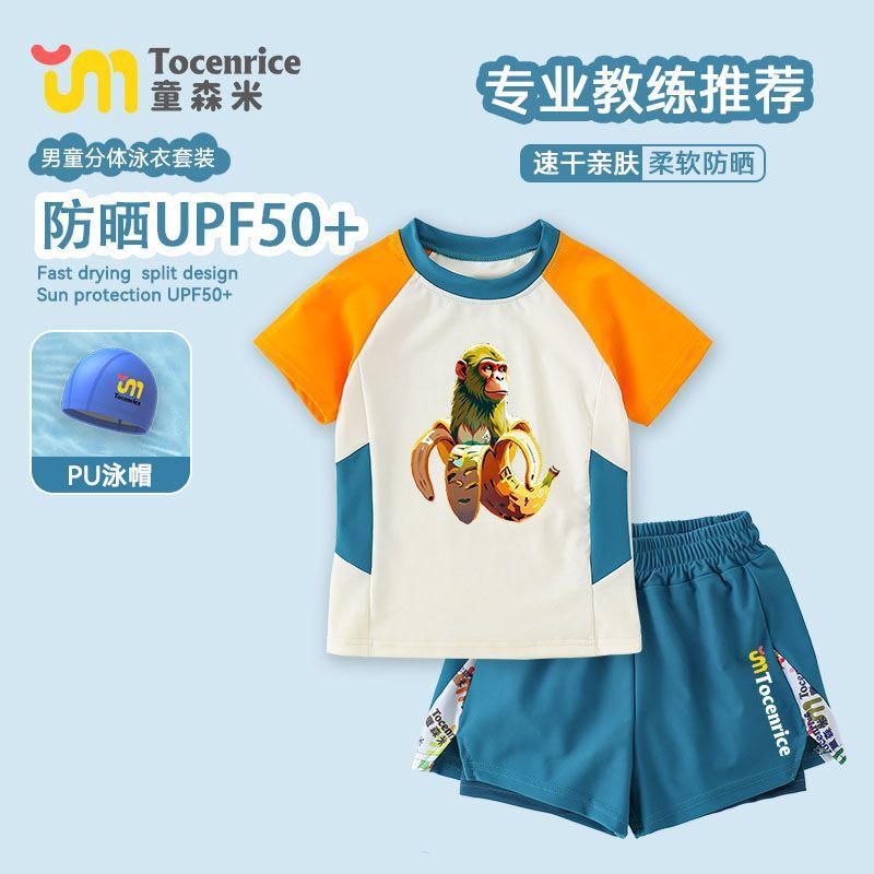 수영복 어린이 소년 스플릿 자외선 차단 수영복 산과 바다 인쇄 2025 새로운 소년 수영 속건성 슈트