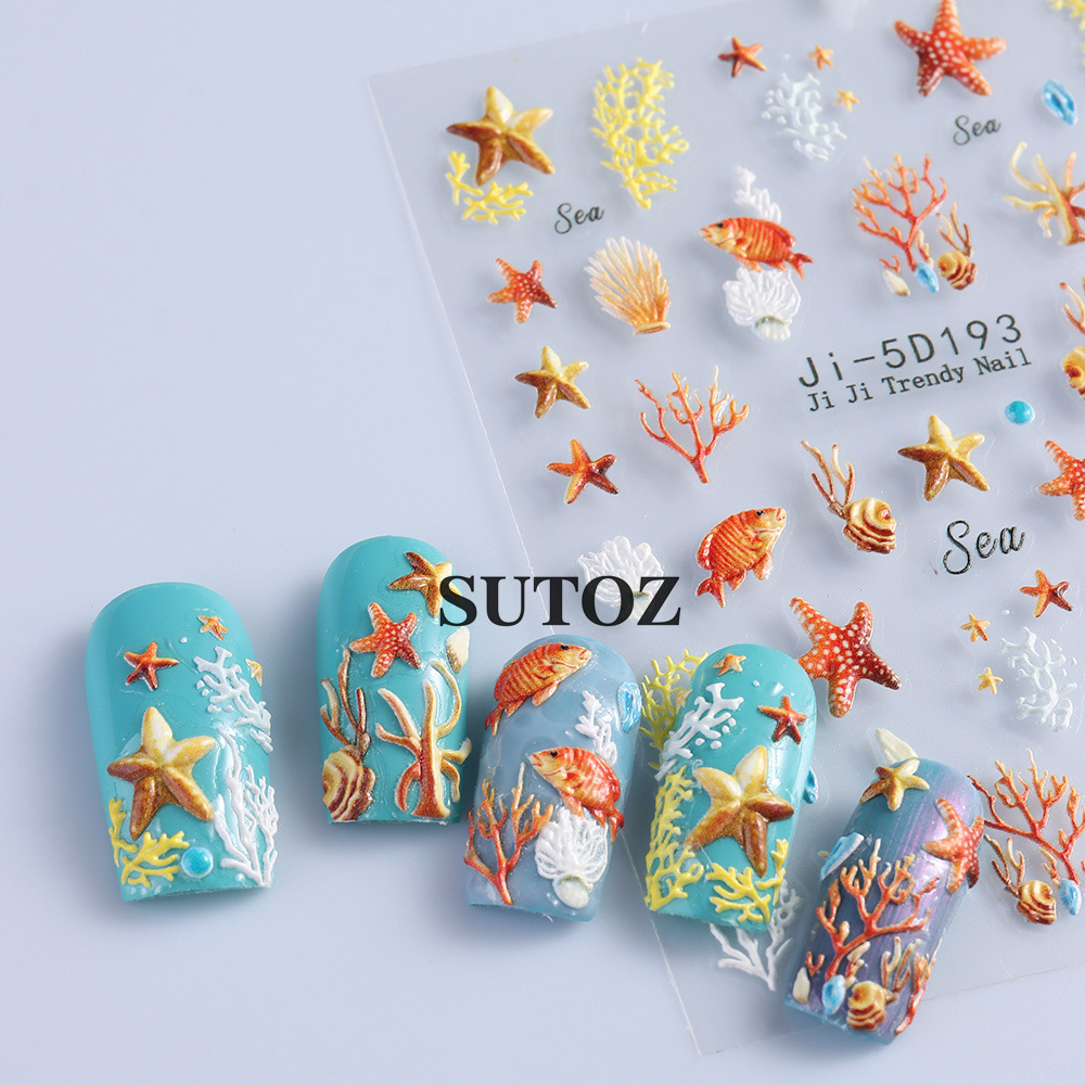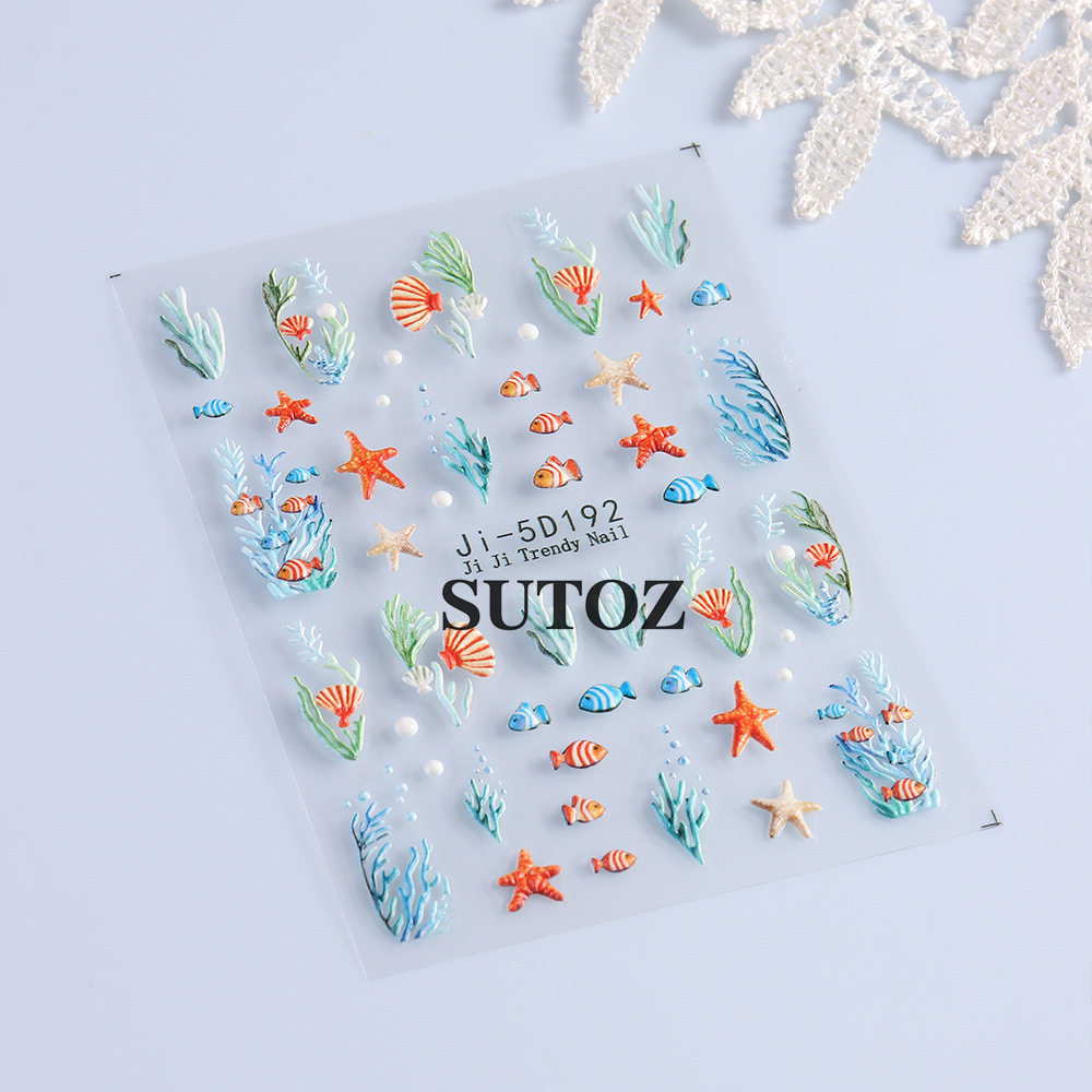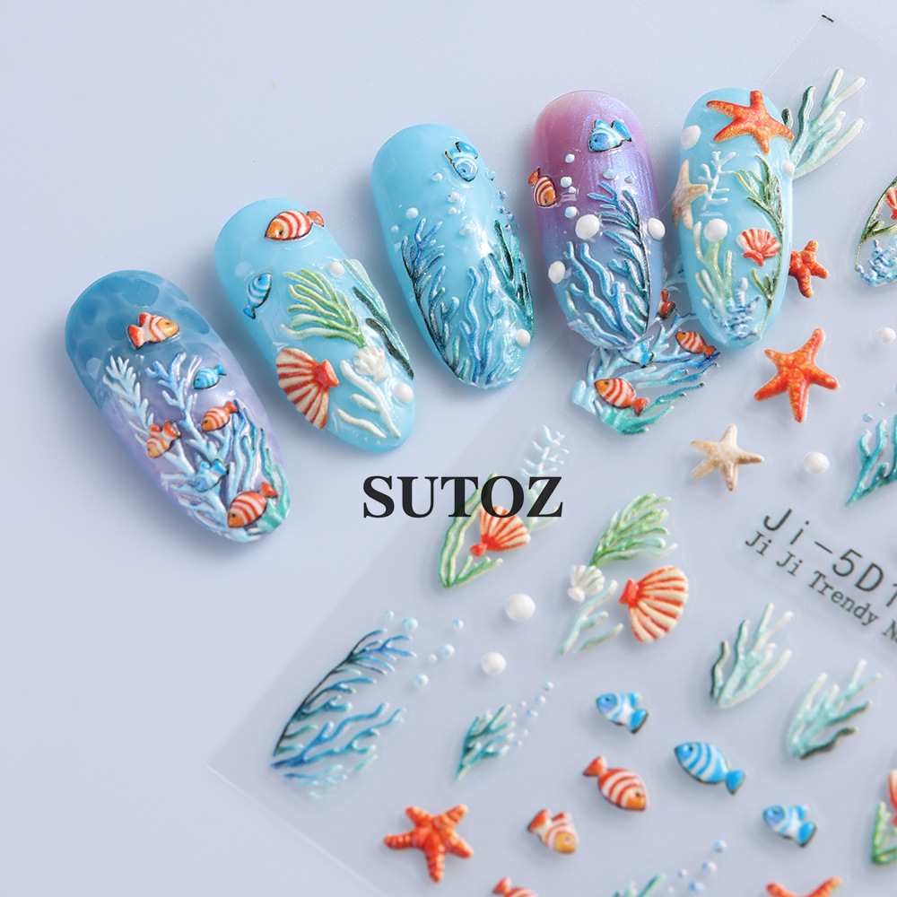 새로운 양각 판타지 바다 세계 시리즈 다채로운 여름 귀여운 도파민 해양 동물 네일 스티커스토어 가기