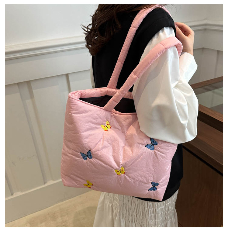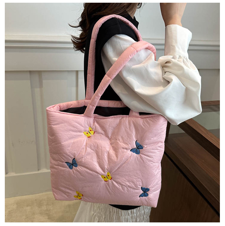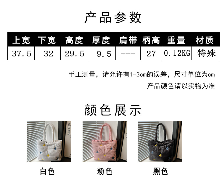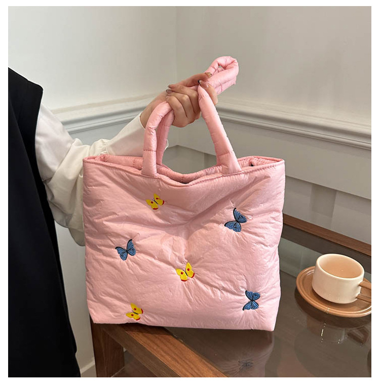 여성을위한 캐주얼 마름모 자수 작은 가방 2024 새로운 가을, 겨울 면화 가방 슈퍼 핫 휴대용 작은 가방 버킷 가방스토어 가기