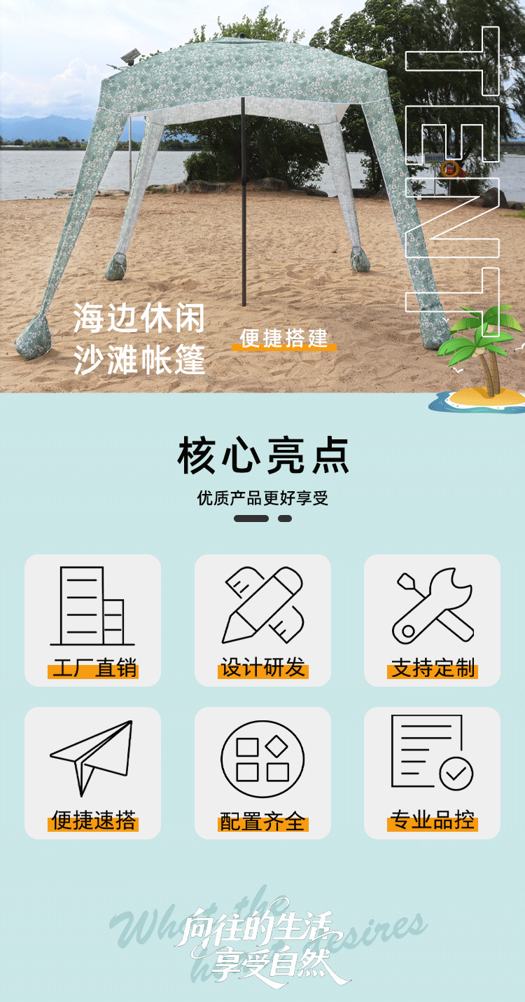 원래 제조업체는 해변 텐트, 야외 레저 파라솔, 해변 휴가, 대형 공간 철제 텐트를 맞춤화할 수 있습니다.