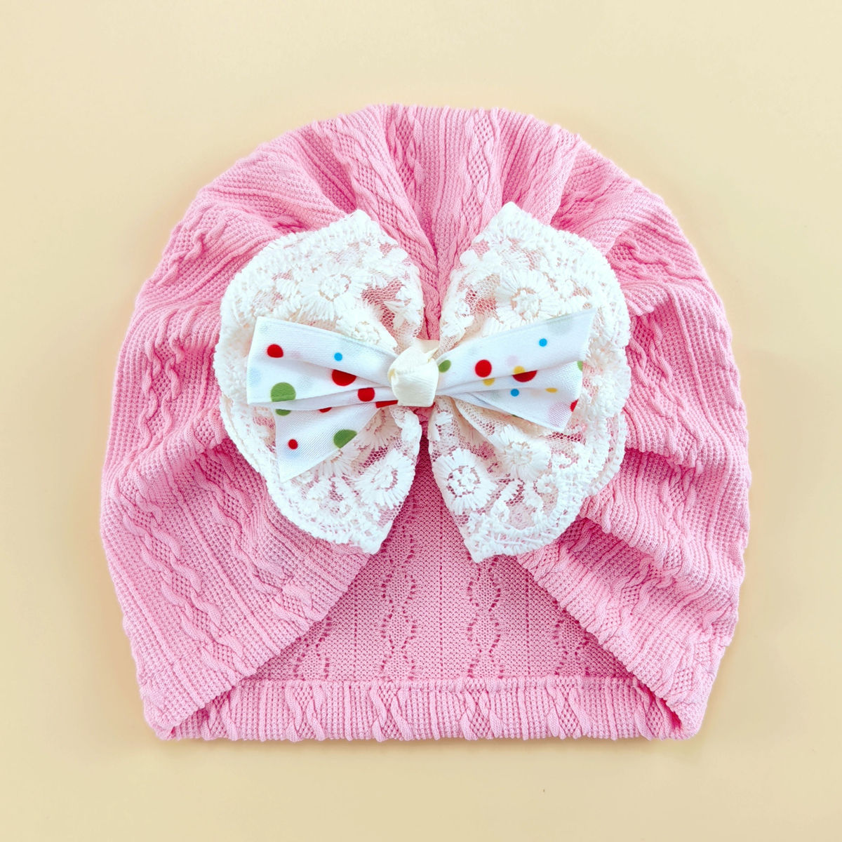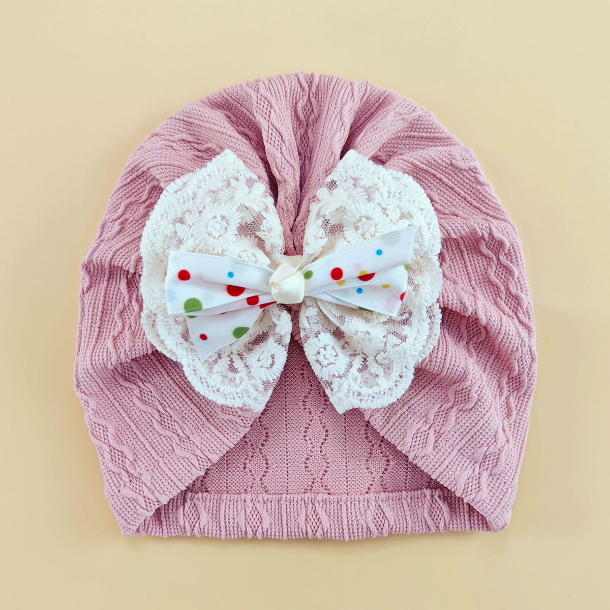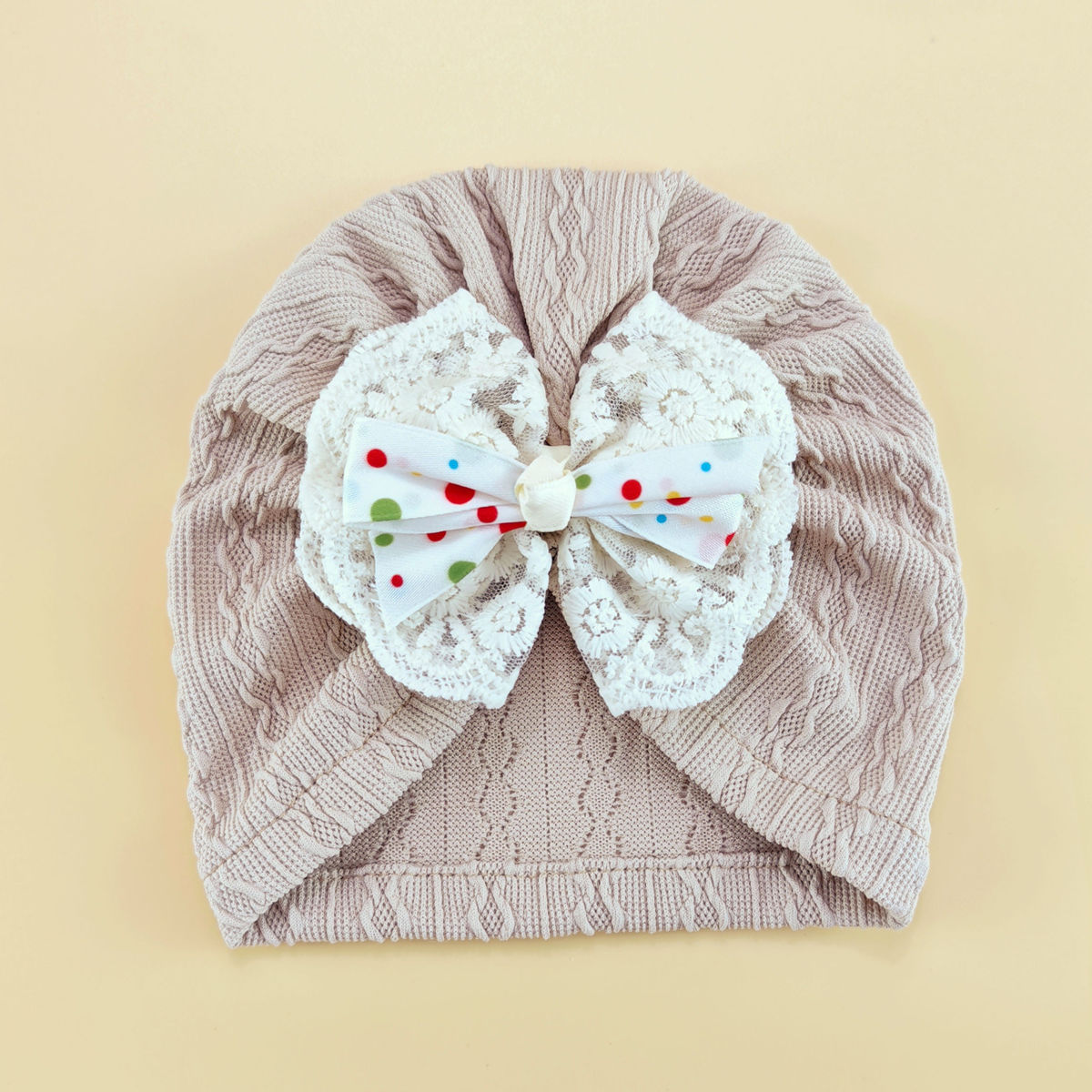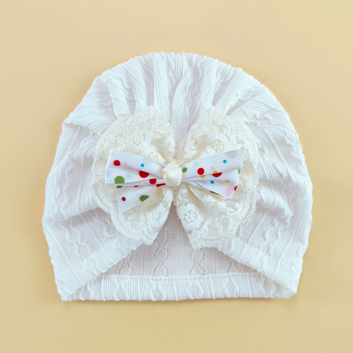 外贸婴儿帽0-6个月护囟门帽子弹性提花头巾帽袜子套装新生儿胎帽