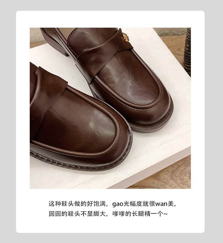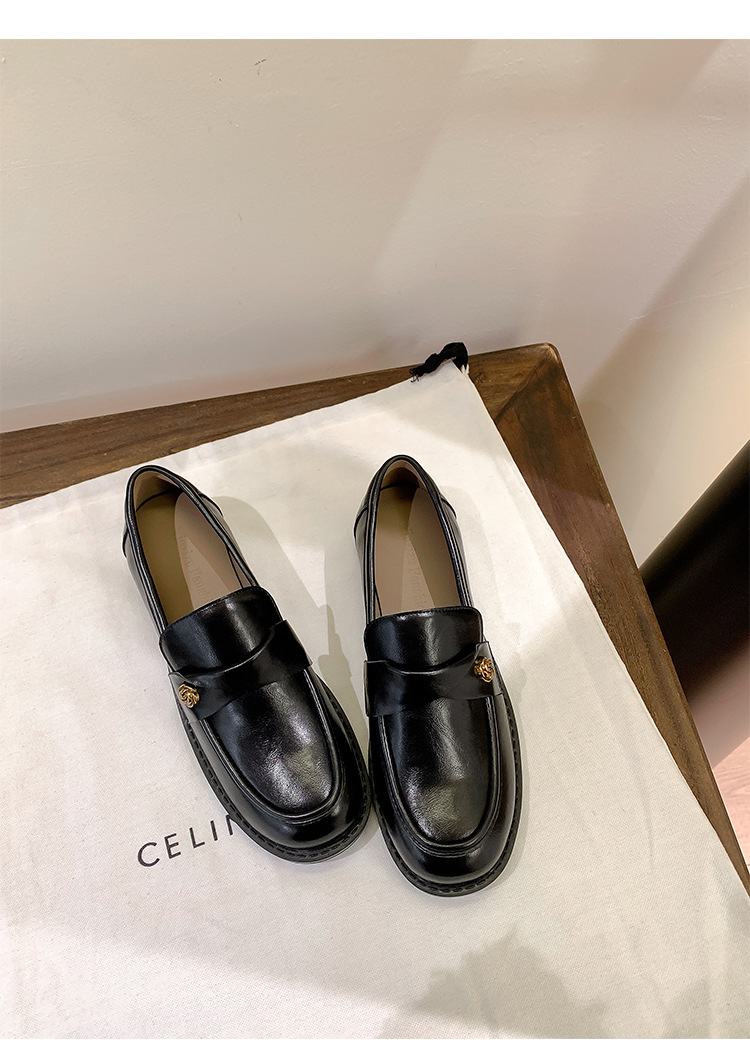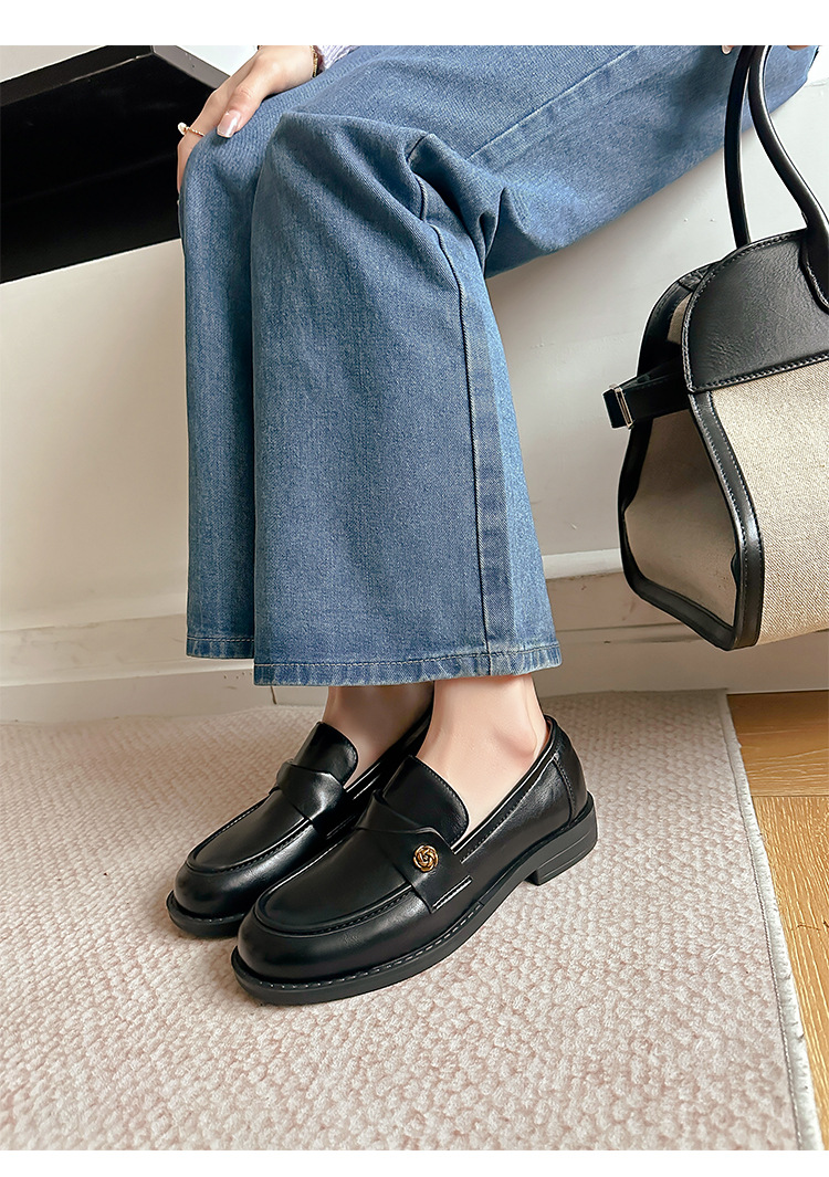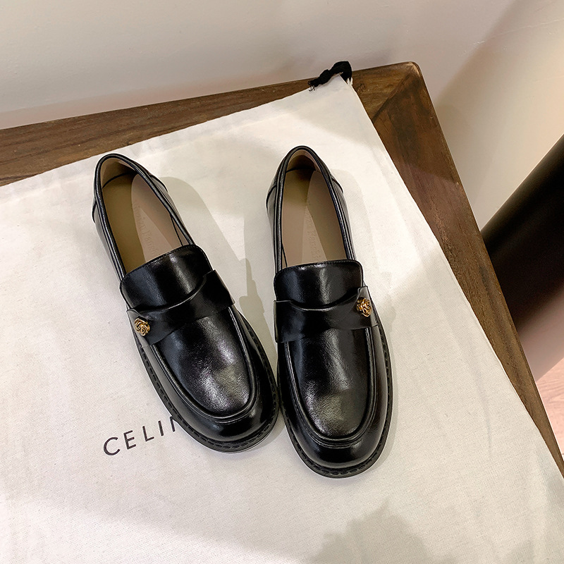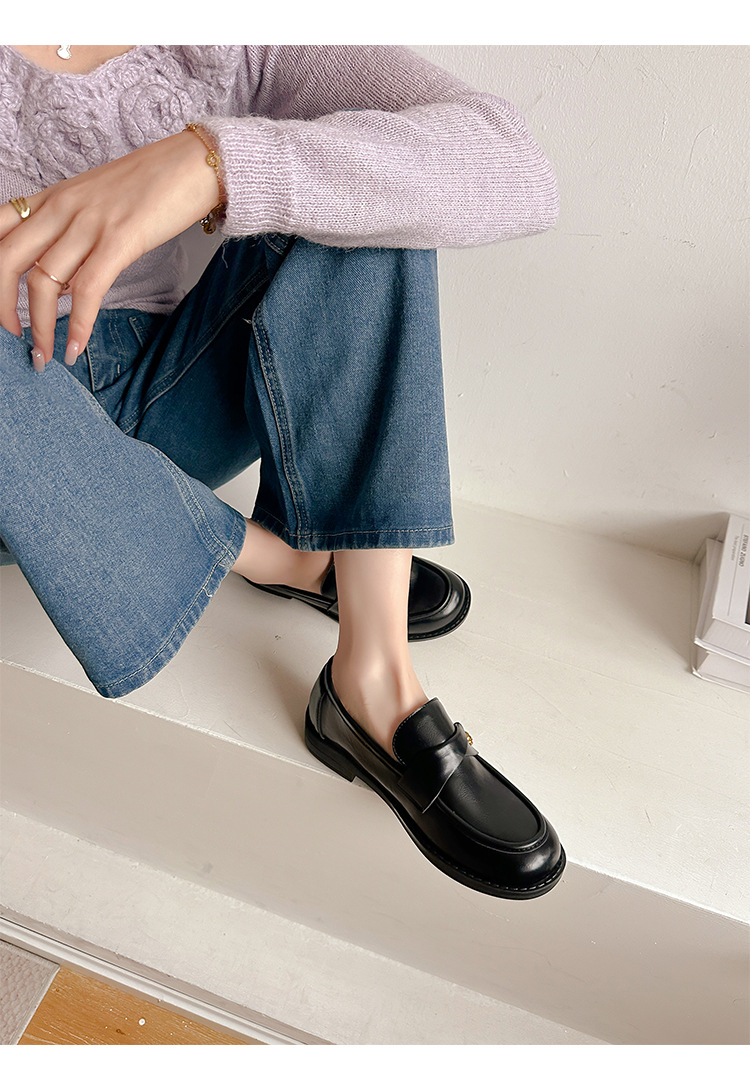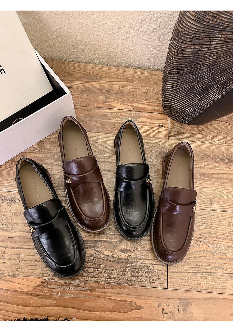 여성을위한 내부 높이 증가 로퍼 2025 봄 새로운 스타일 복고풍 작은 금 버클 싱글 신발 검은색 정품 가죽 두꺼운 굽 게으른 작은 가죽 신발스토어 가기