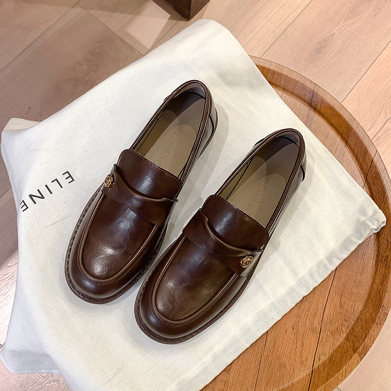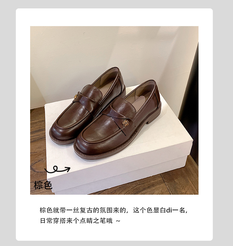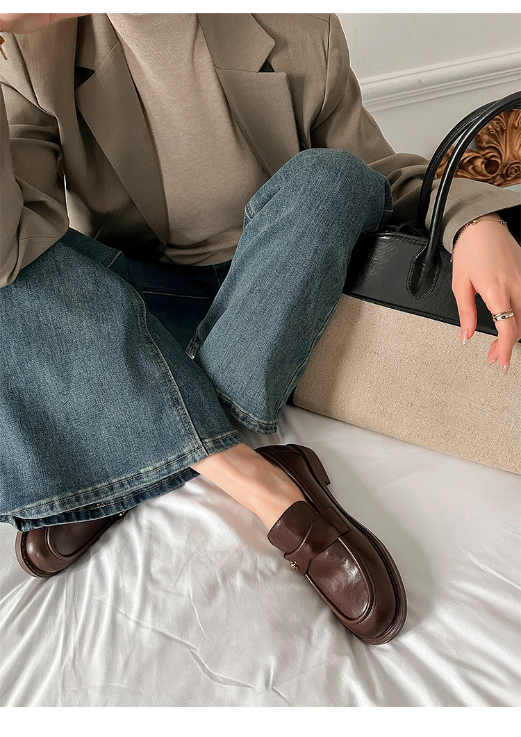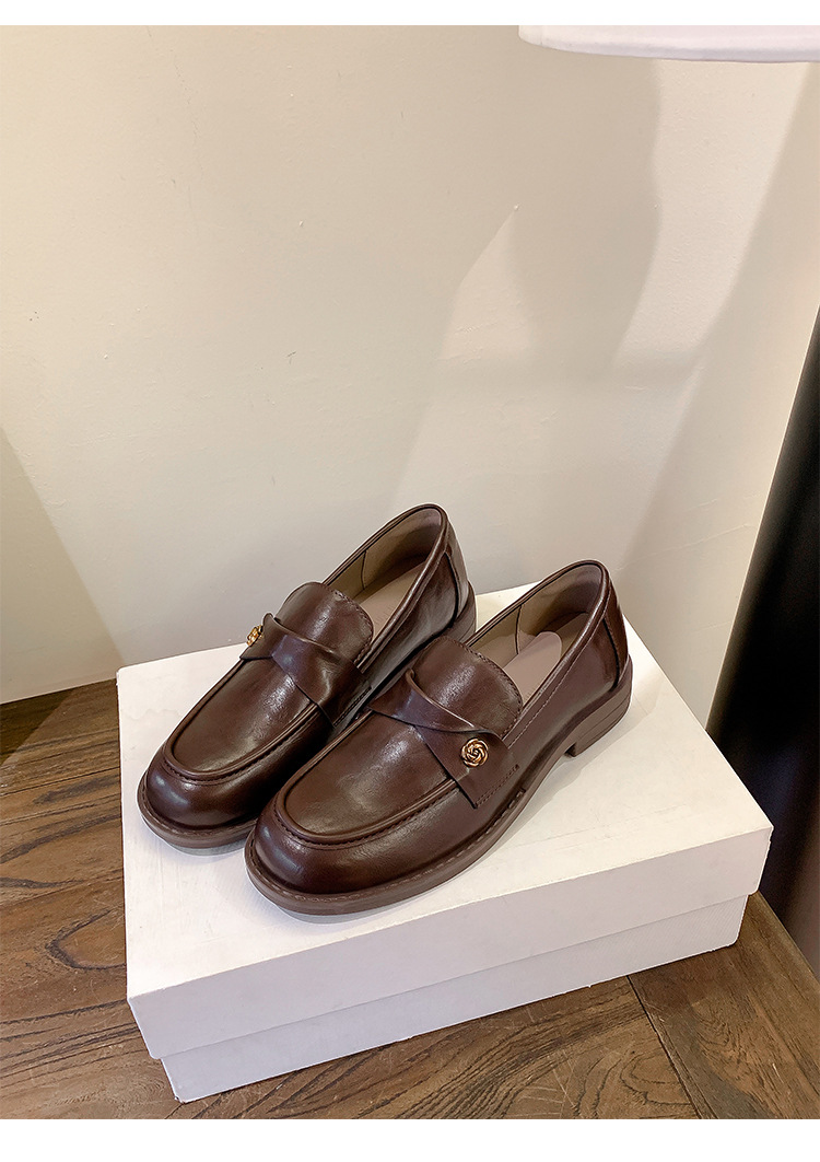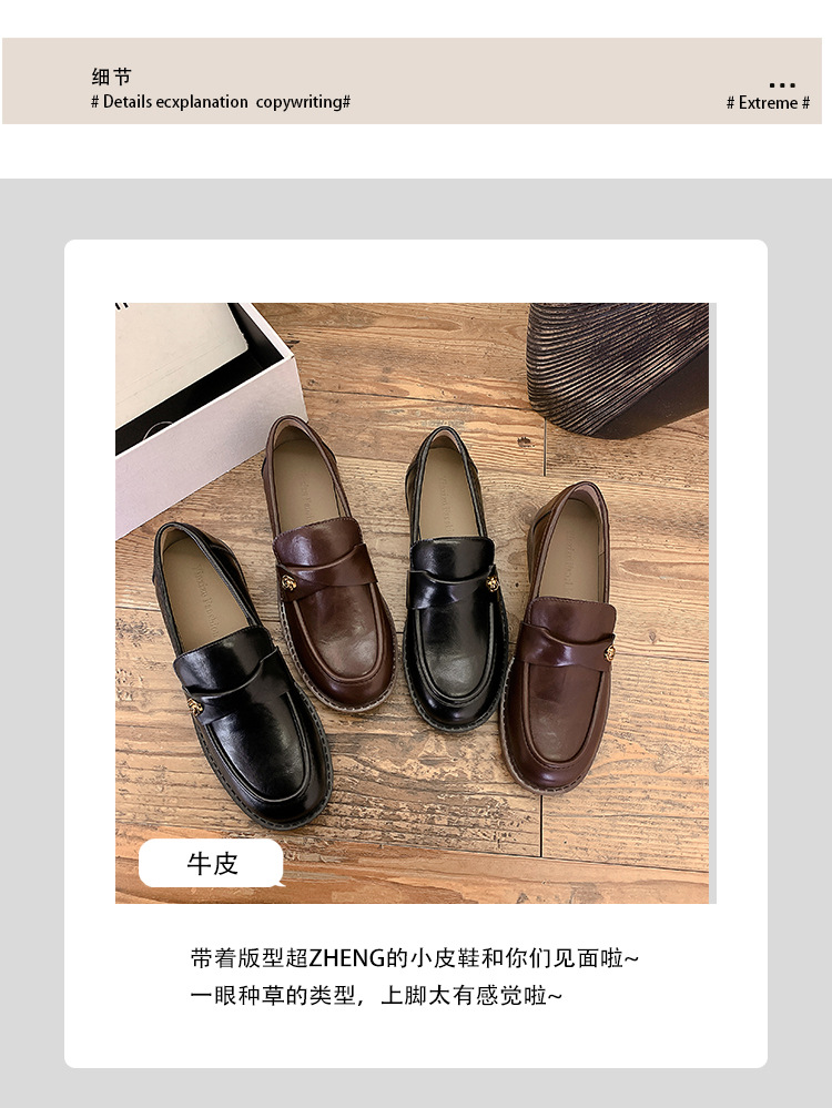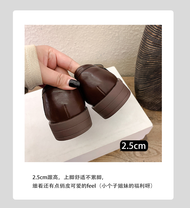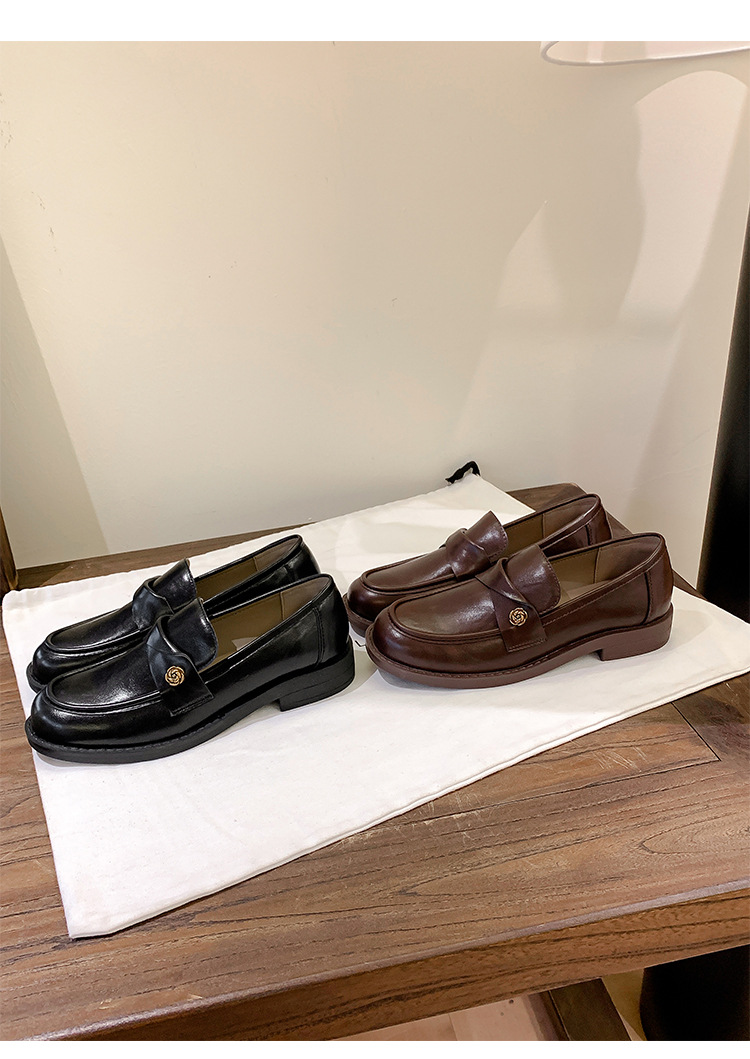 여성을위한 내부 높이 증가 로퍼 2025 봄 새로운 스타일 복고풍 작은 금 버클 싱글 신발 검은색 정품 가죽 두꺼운 굽 게으른 작은 가죽 신발스토어 가기