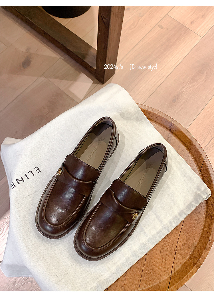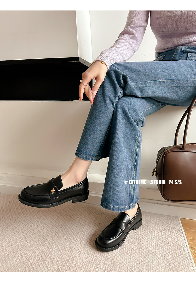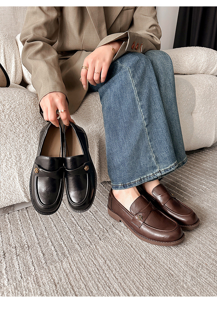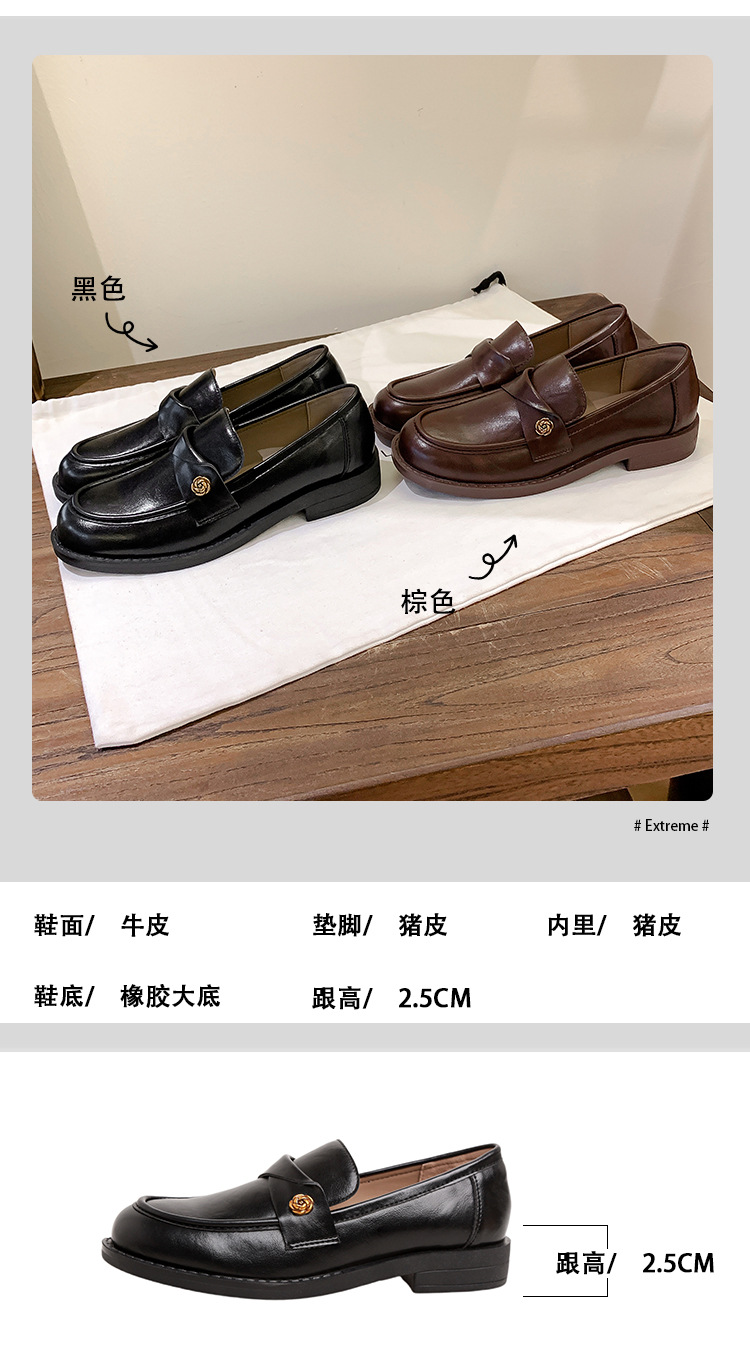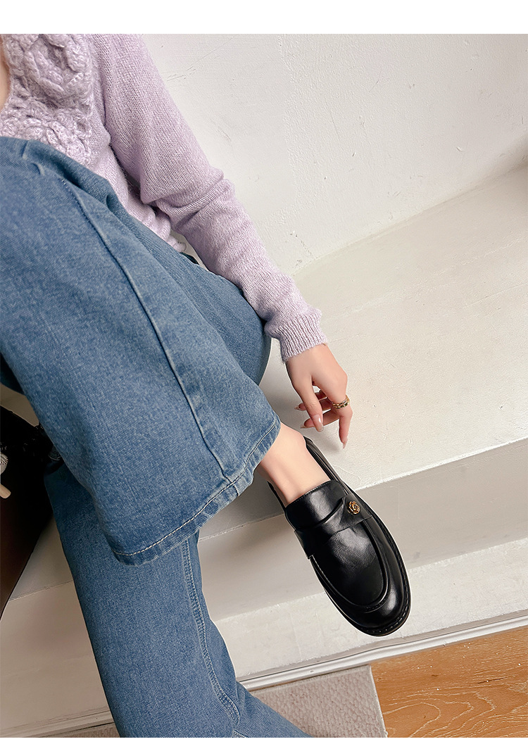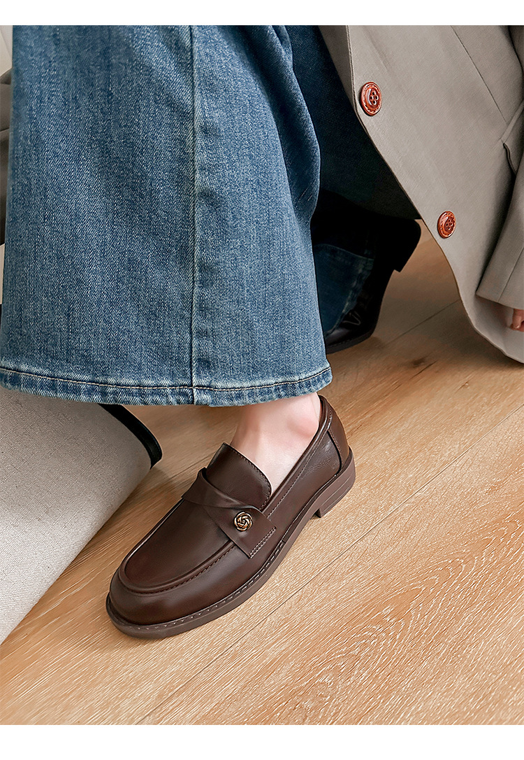 여성을위한 내부 높이 증가 로퍼 2025 봄 새로운 스타일 복고풍 작은 금 버클 싱글 신발 검은색 정품 가죽 두꺼운 굽 게으른 작은 가죽 신발스토어 가기