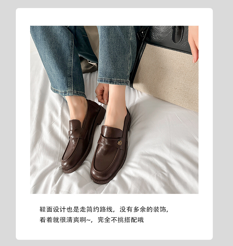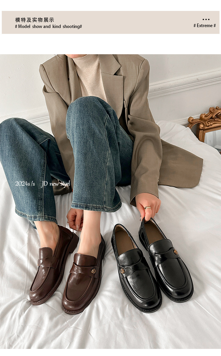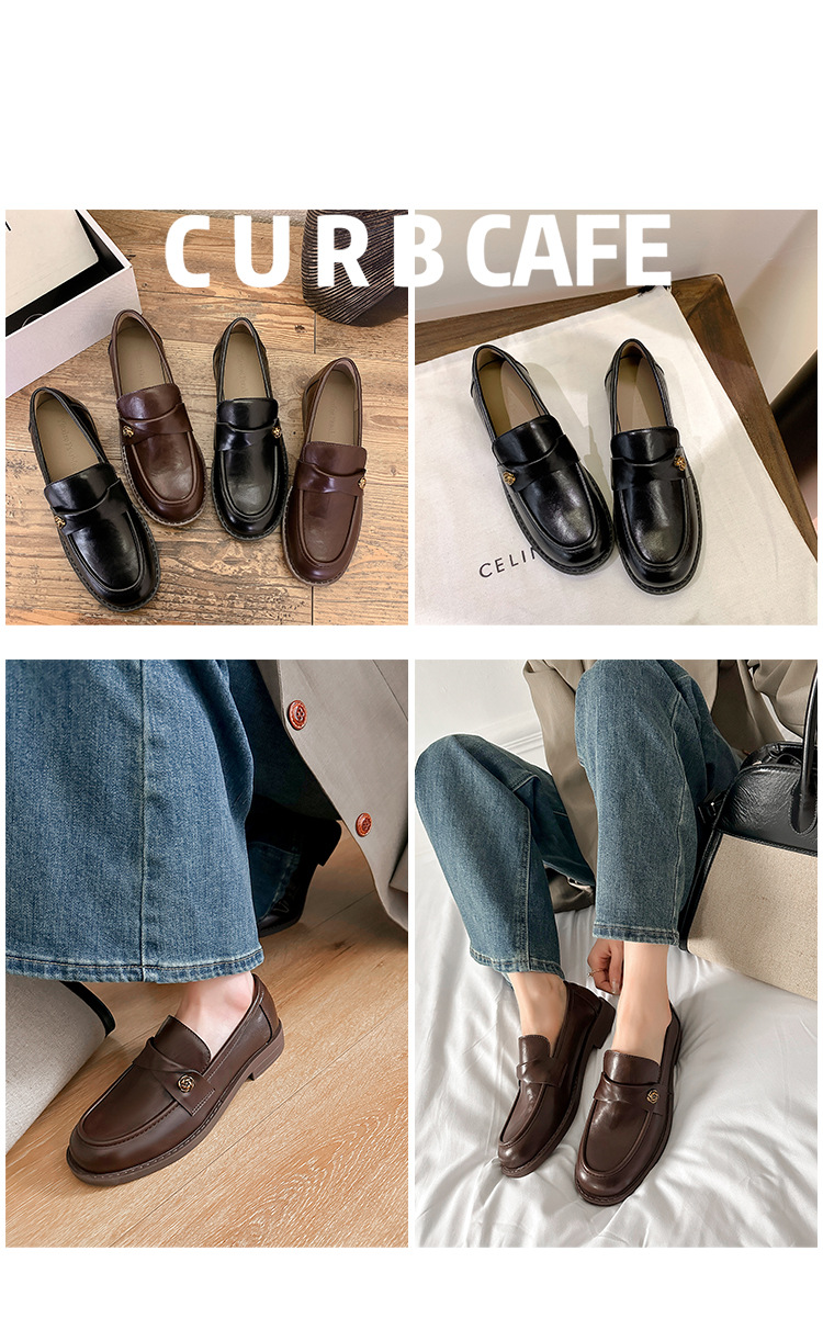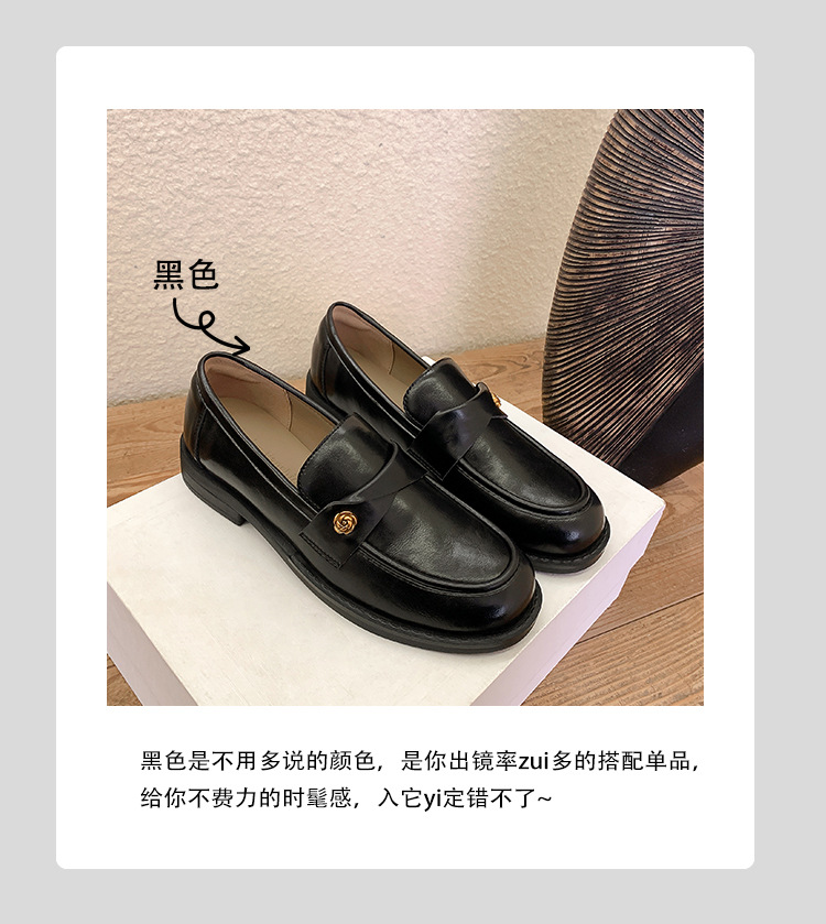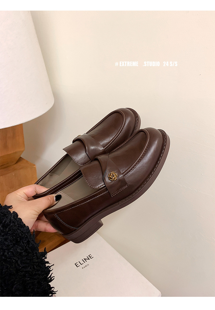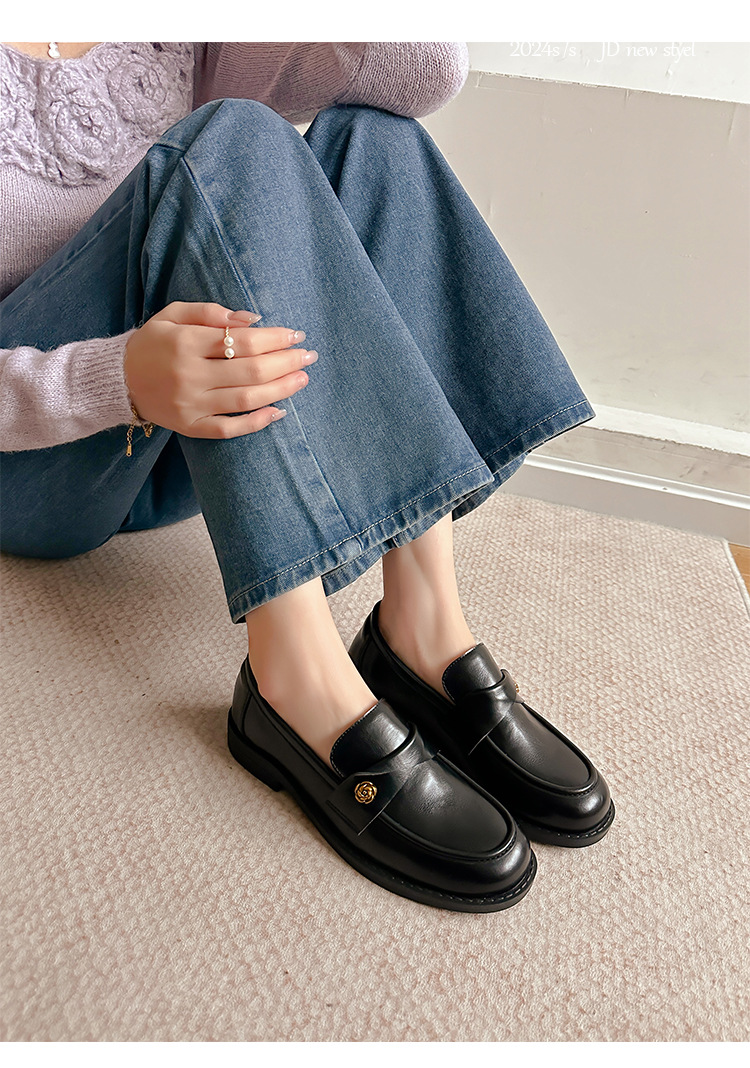 여성을위한 내부 높이 증가 로퍼 2025 봄 새로운 스타일 복고풍 작은 금 버클 싱글 신발 검은색 정품 가죽 두꺼운 굽 게으른 작은 가죽 신발스토어 가기