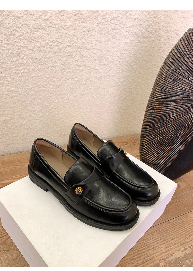 여성을위한 내부 높이 증가 로퍼 2025 봄 새로운 스타일 복고풍 작은 금 버클 싱글 신발 검은색 정품 가죽 두꺼운 굽 게으른 작은 가죽 신발