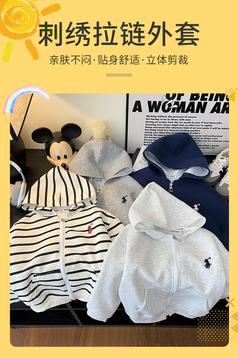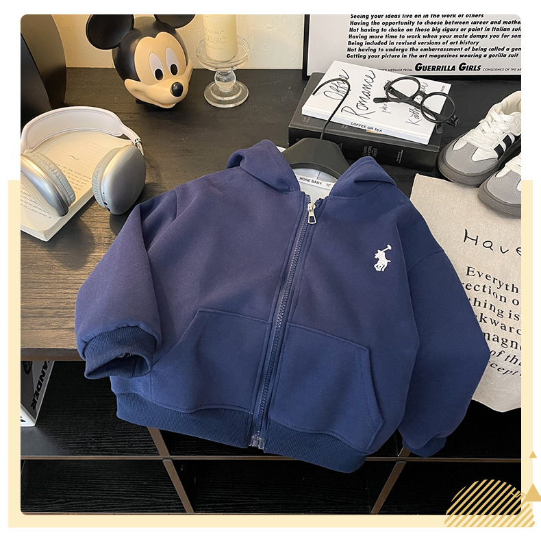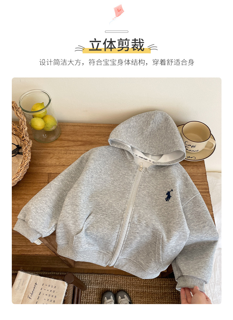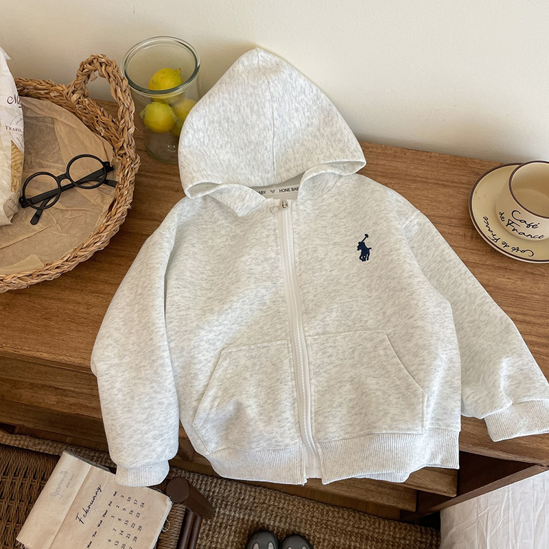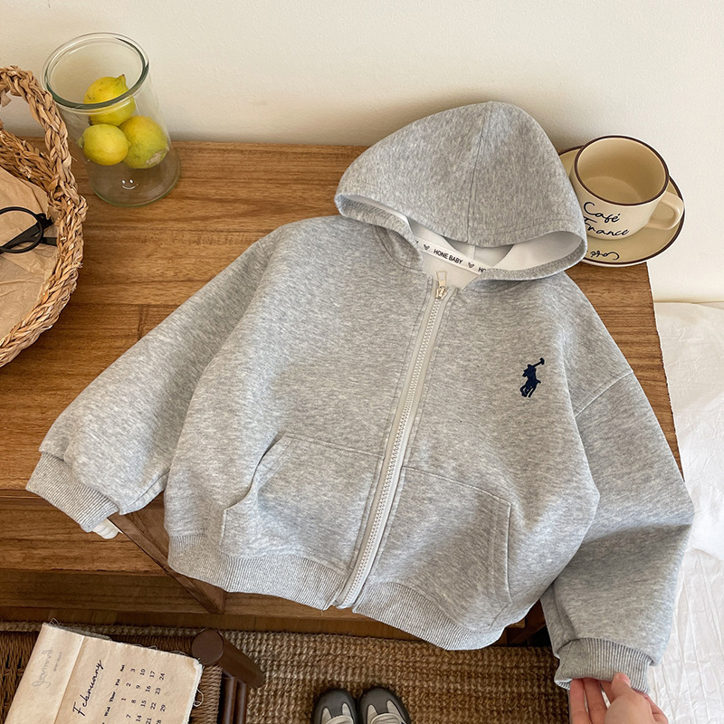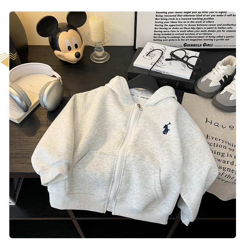 새로운 스타일의 남성과 여성의 자수 지퍼 자켓 소녀의 긴팔 후드 다목적 스웨트 셔츠 봄 2025 베이비 자켓스토어 가기