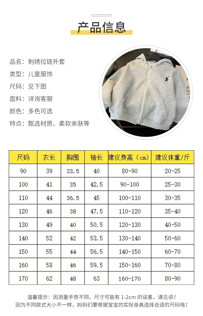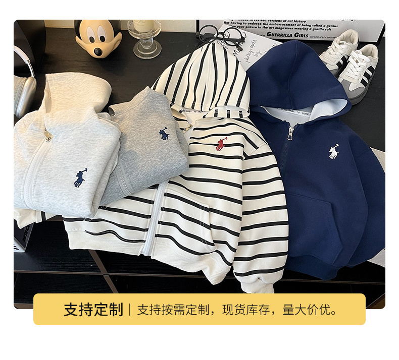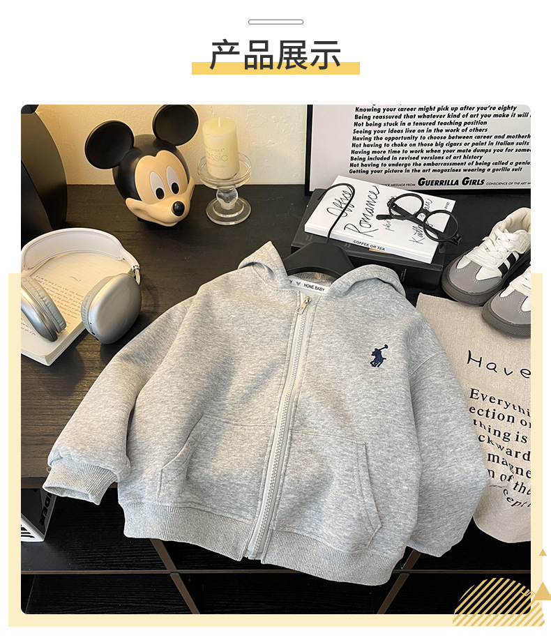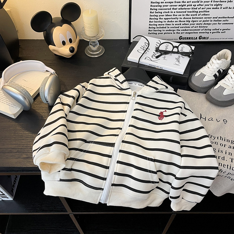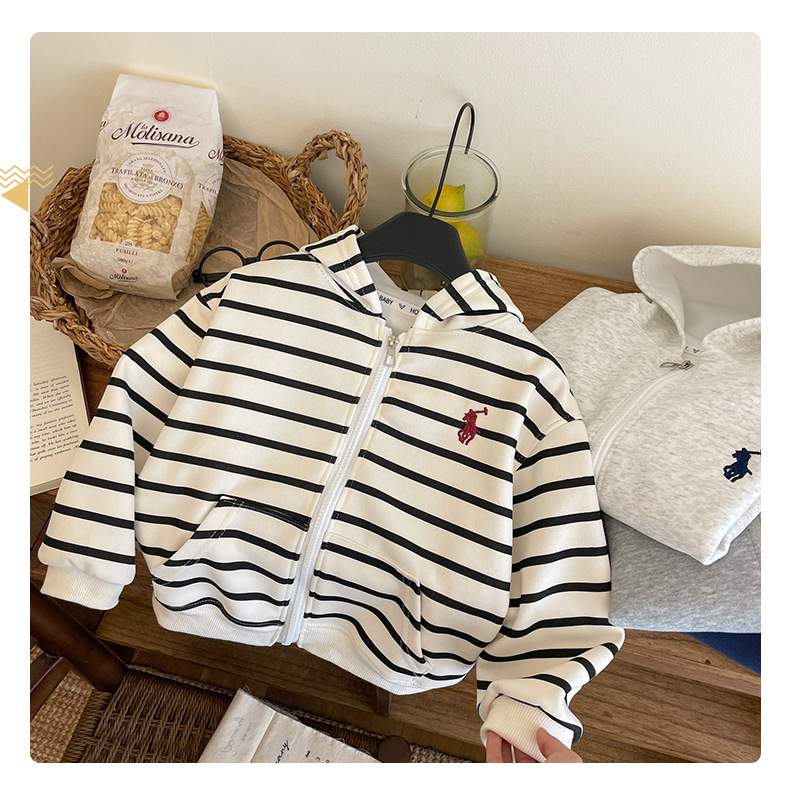 새로운 스타일의 남성과 여성의 자수 지퍼 자켓 소녀의 긴팔 후드 다목적 스웨트 셔츠 봄 2025 베이비 자켓스토어 가기