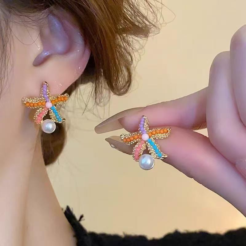 2025 새로운 컬러 불가사리 귀걸이 틈새 고급 기질 가벼운 럭셔리 패션 휴가 스타일 귀걸이 여성 액세서리스토어 가기