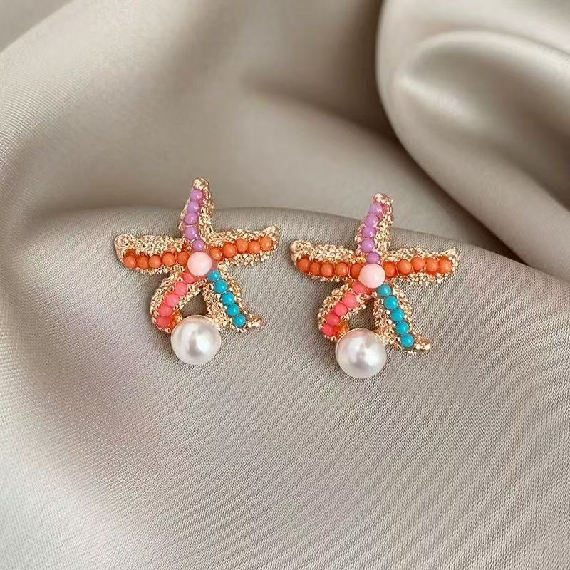 2025 새로운 컬러 불가사리 귀걸이 틈새 고급 기질 가벼운 럭셔리 패션 휴가 스타일 귀걸이 여성 액세서리