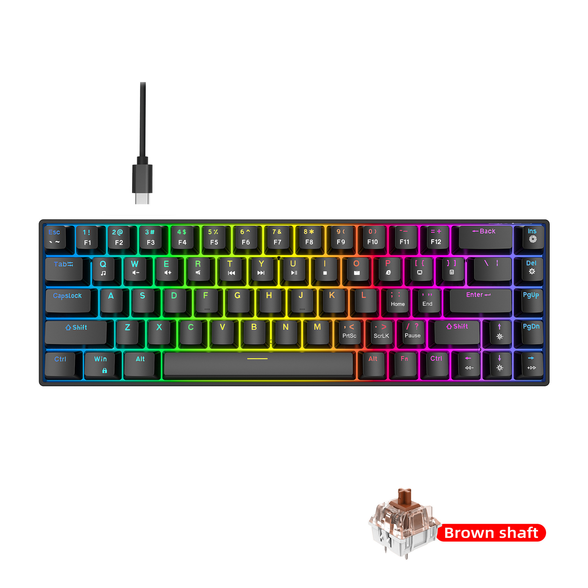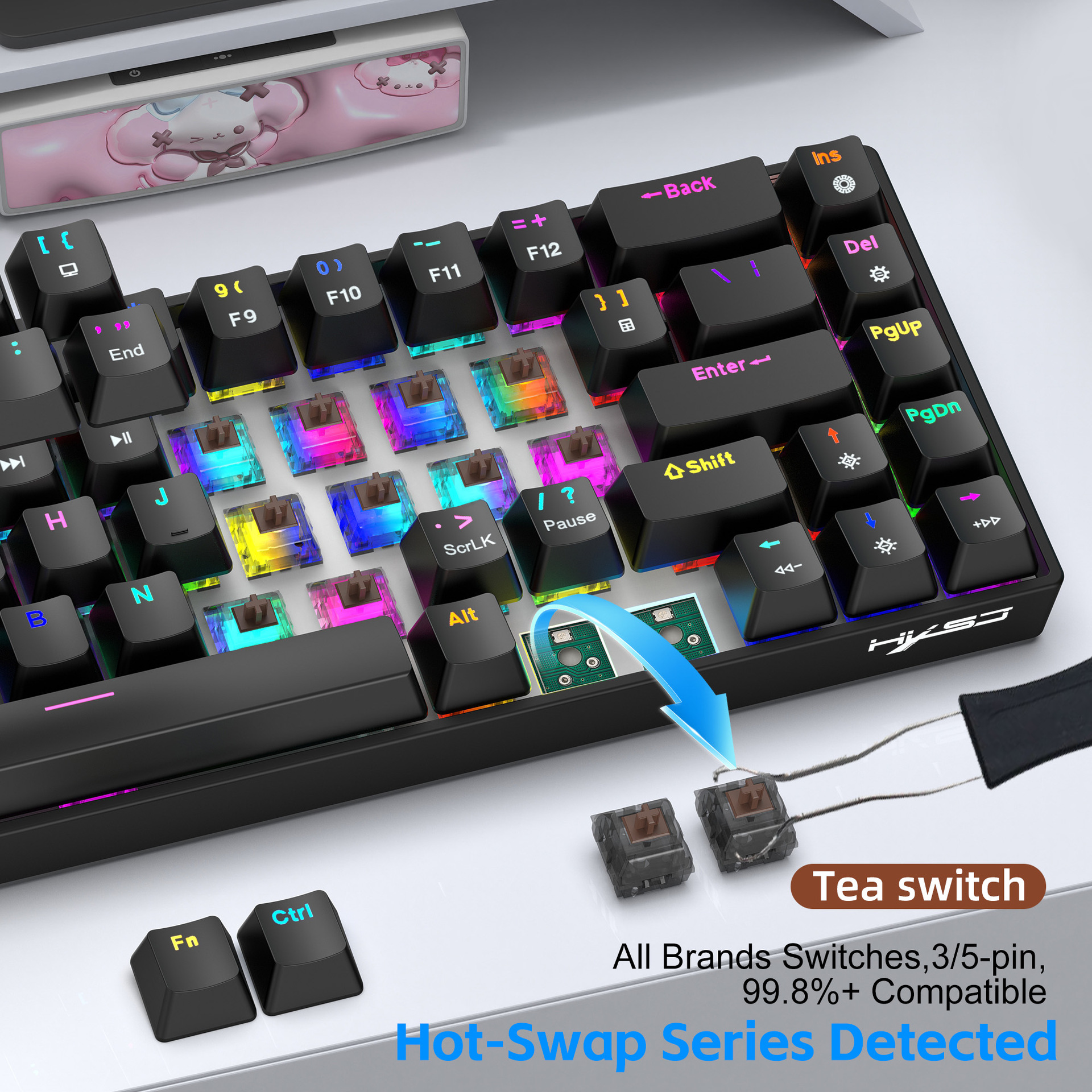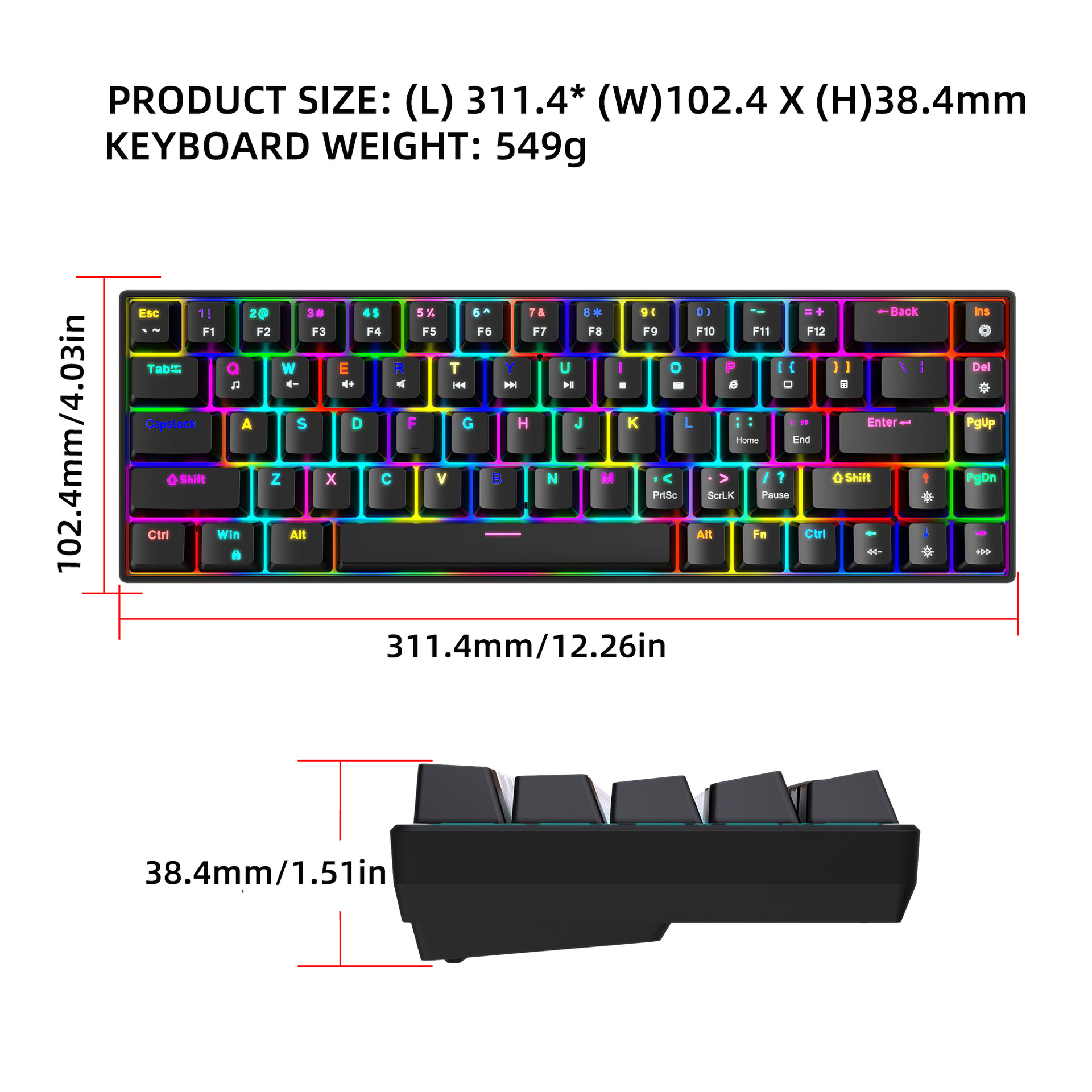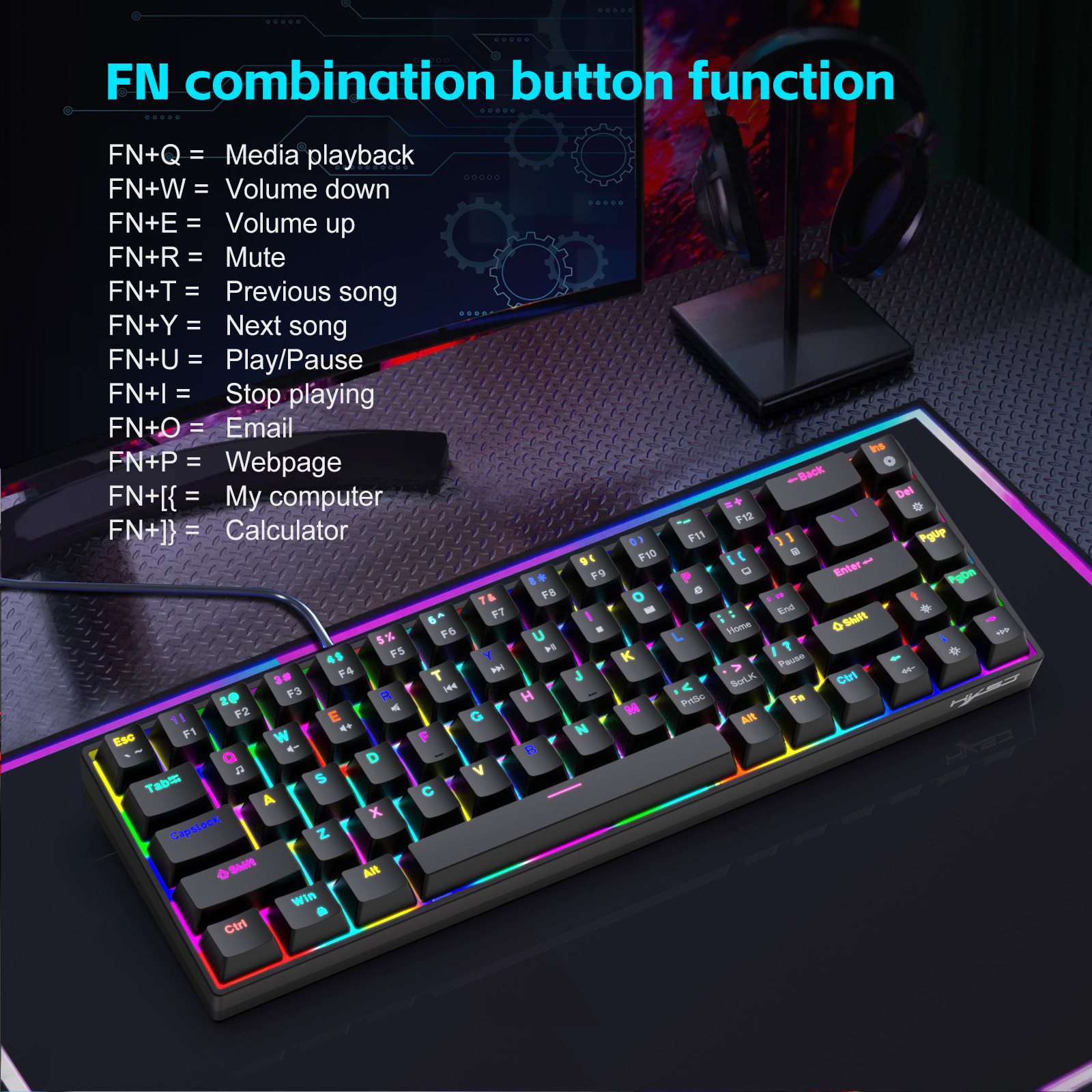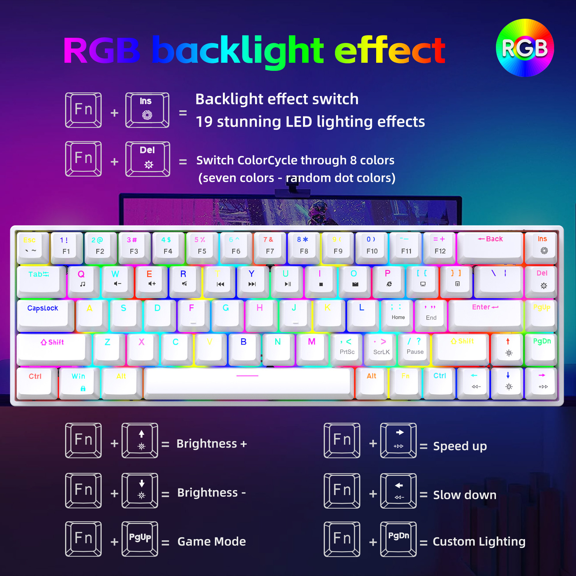 FN+Ins=Switch lighting mode (supports 19 lighting effect modes)