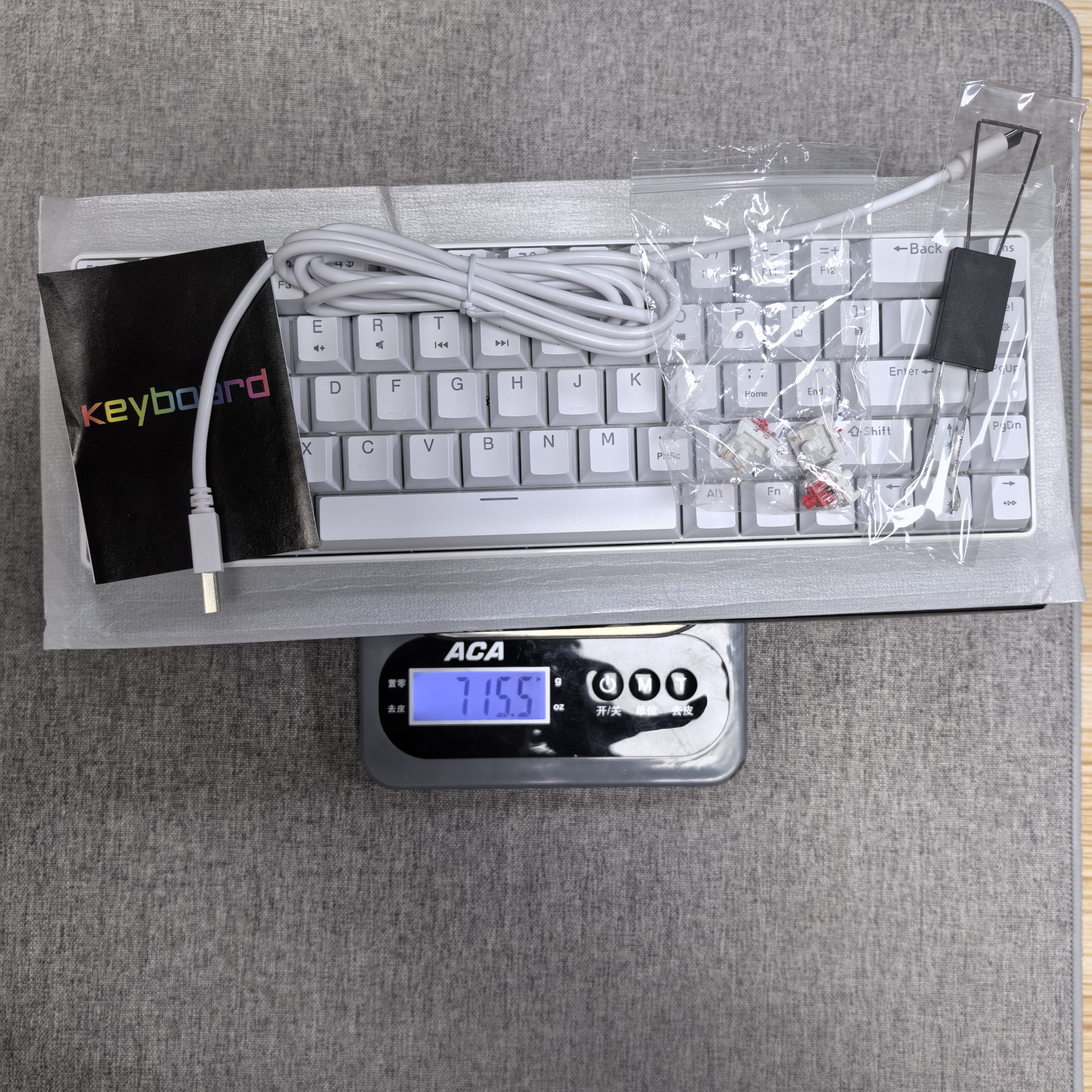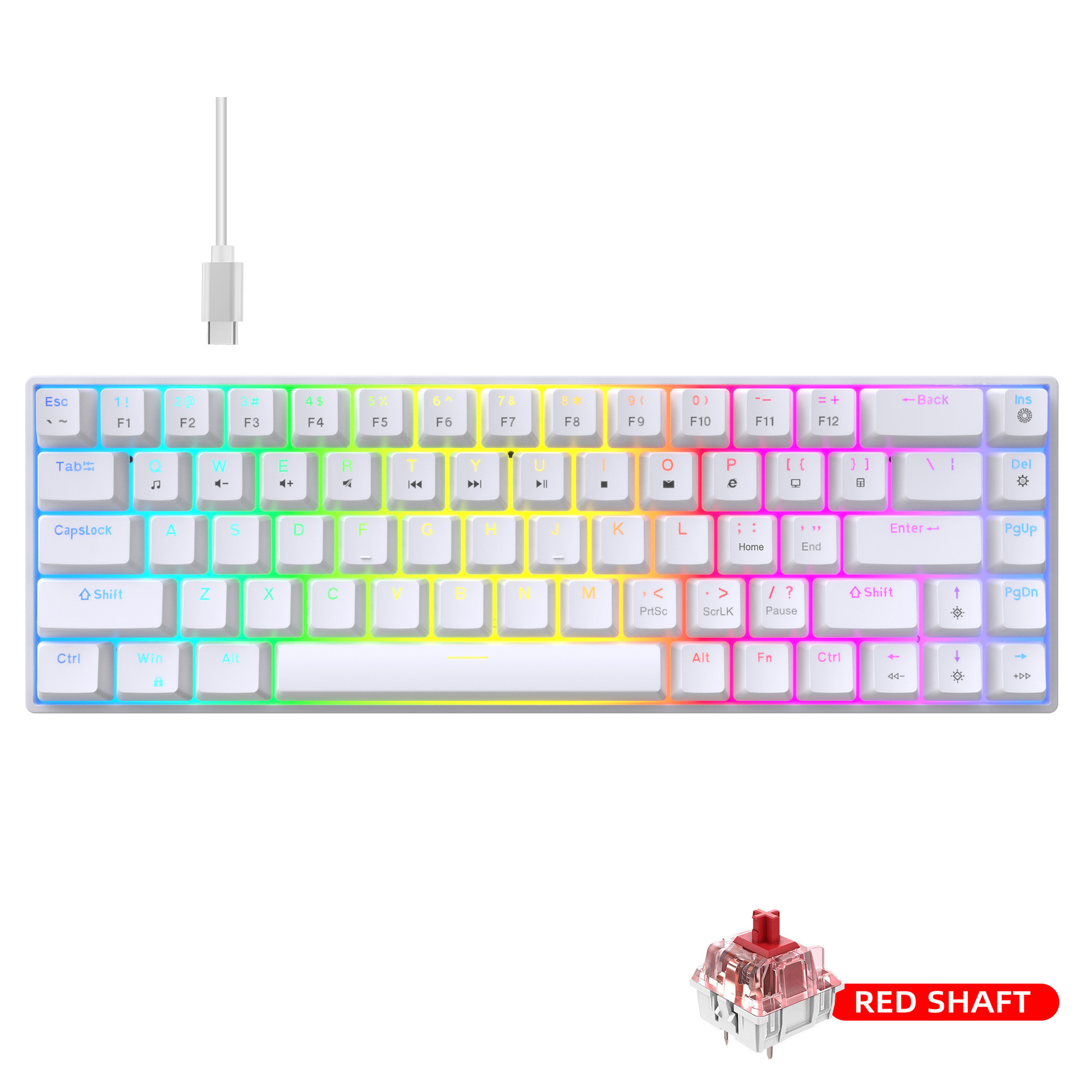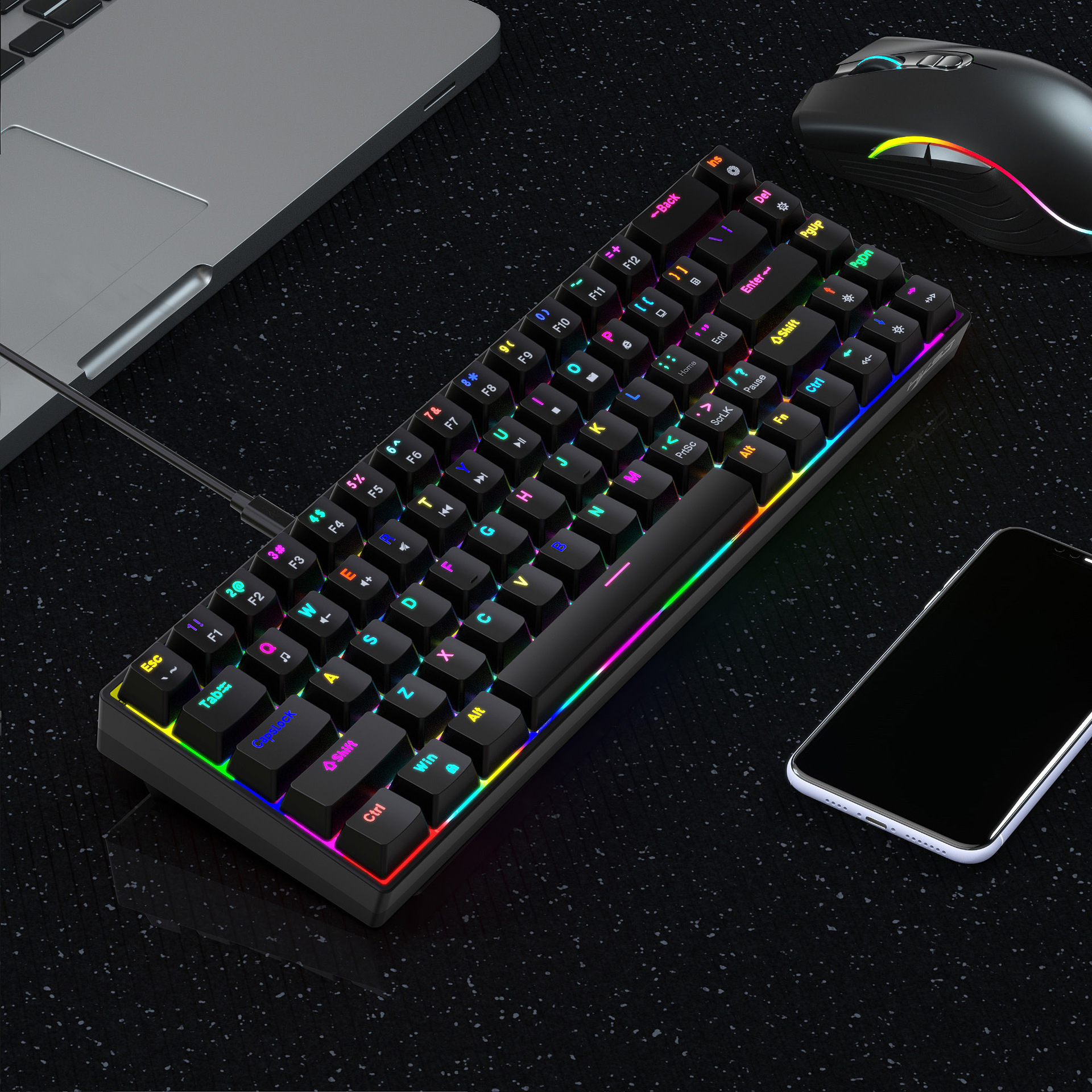 3. Detachable cable design and long data cable: The 68-key keyboard adopts a detachable cable design, allowing users to arrange the cables according to their preferences for a neater desktop space. It also comes with a 1.75-meter long data cable, facilitating connections to desktop computers, laptops, and other devices.