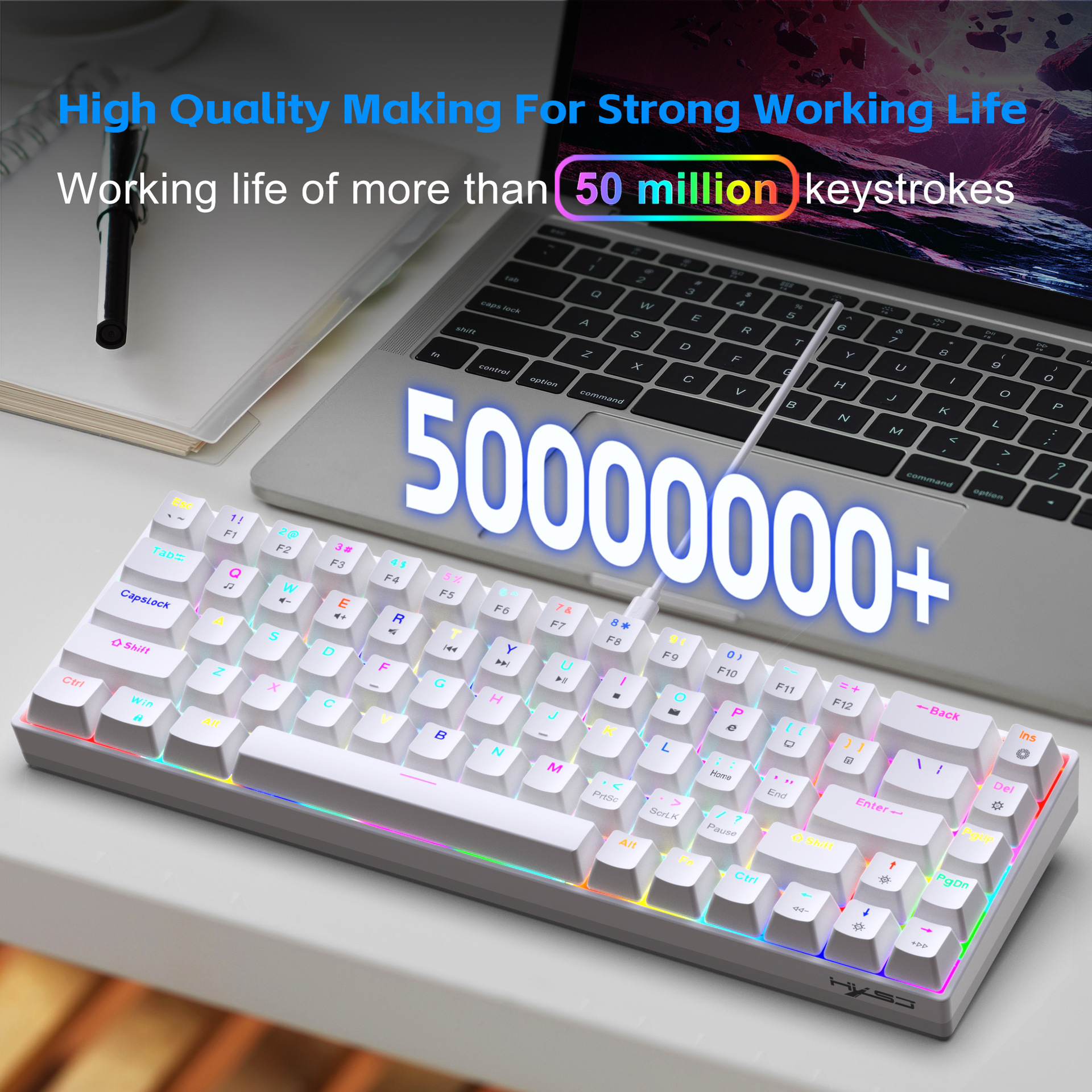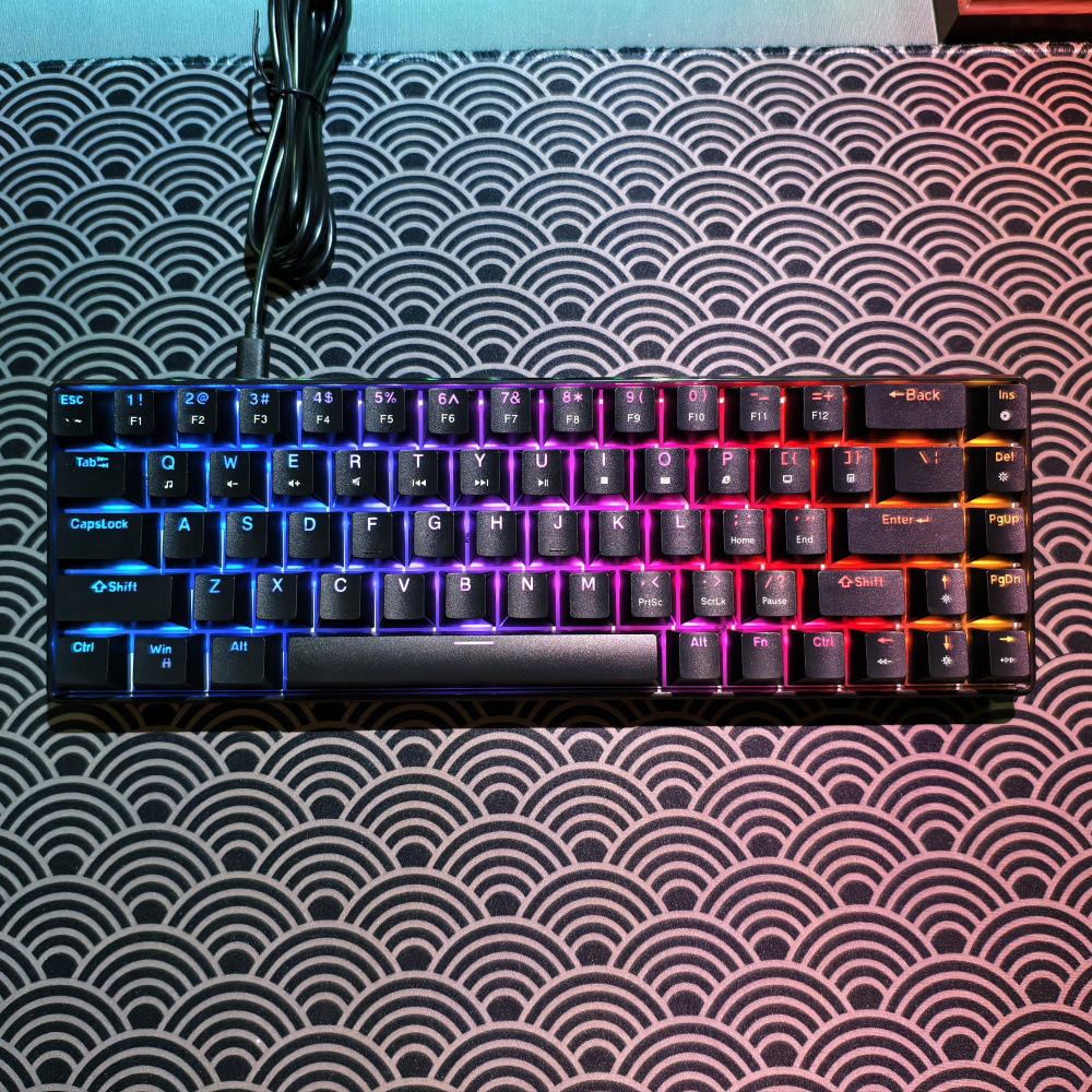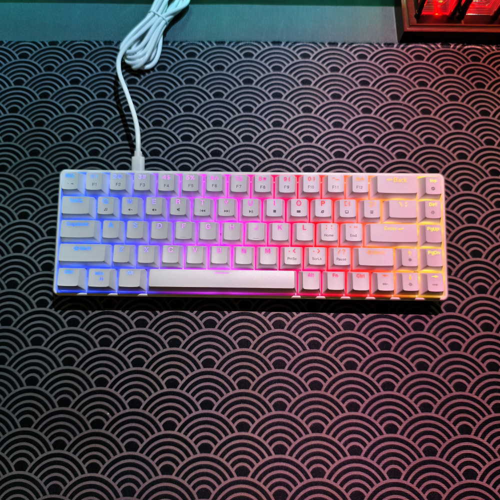 4. Dual-color injection keycaps and durability: The 68-key keyboard features dual-color injection keycaps, ensuring that the characters on the keycaps never fade. It also boasts a 50 million keystroke lifespan, guaranteeing durability and stability.