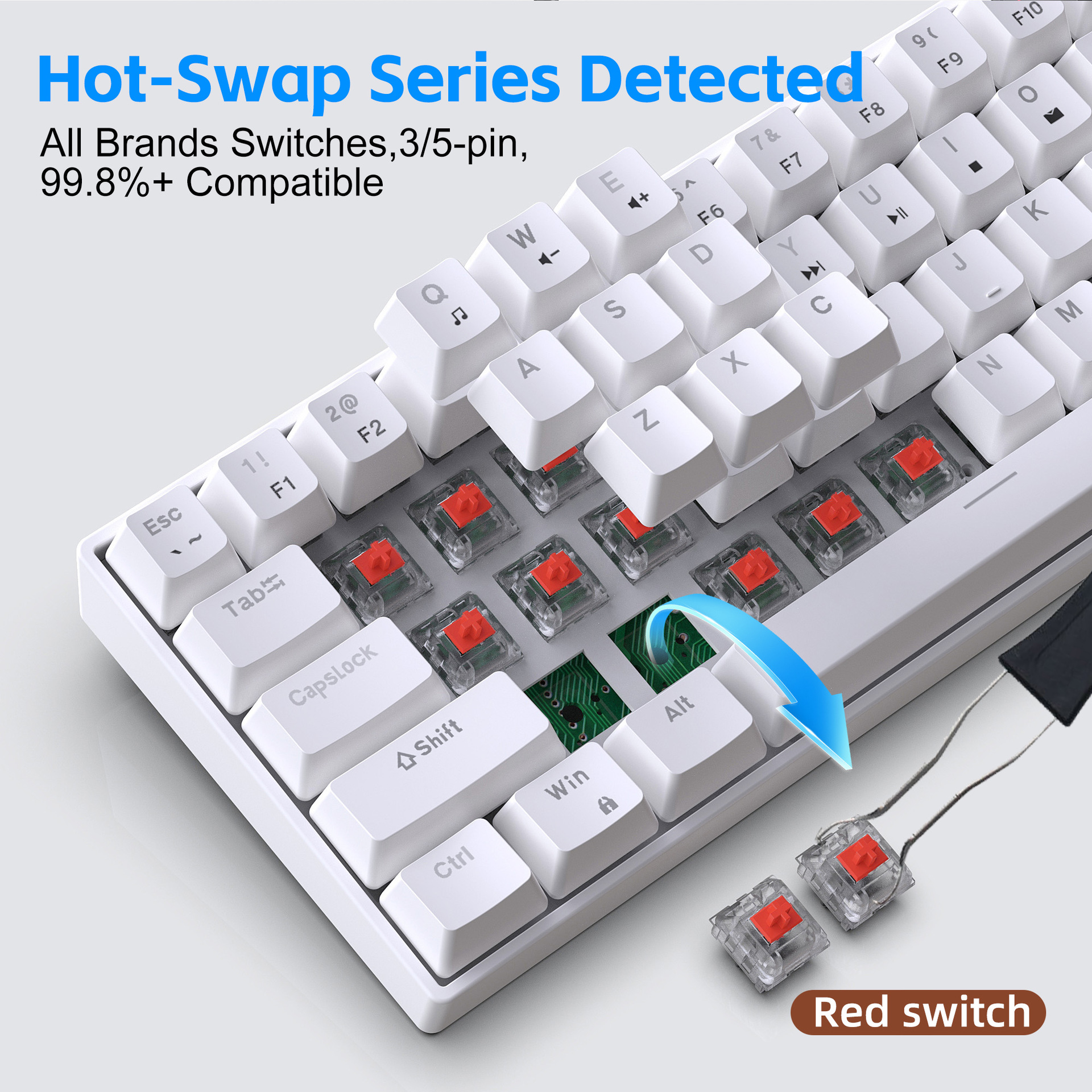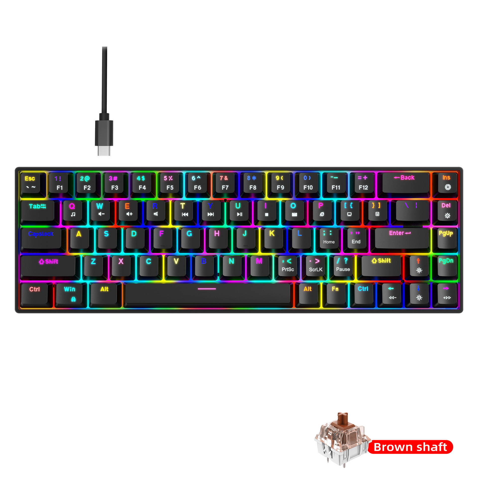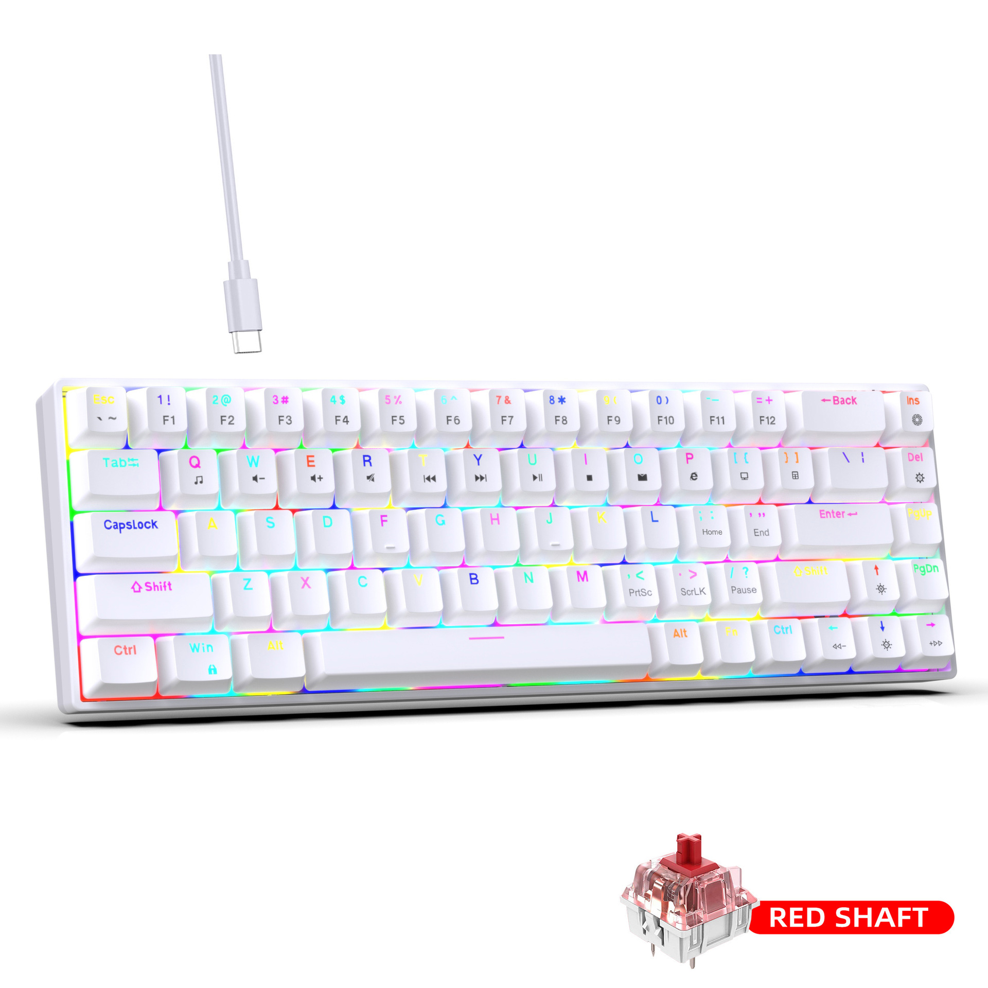 4. Dual-color injection keycaps and durability: The 68-key keyboard features dual-color injection keycaps, ensuring that the characters on the keycaps never fade. It also boasts a 50 million keystroke lifespan, guaranteeing durability and stability.