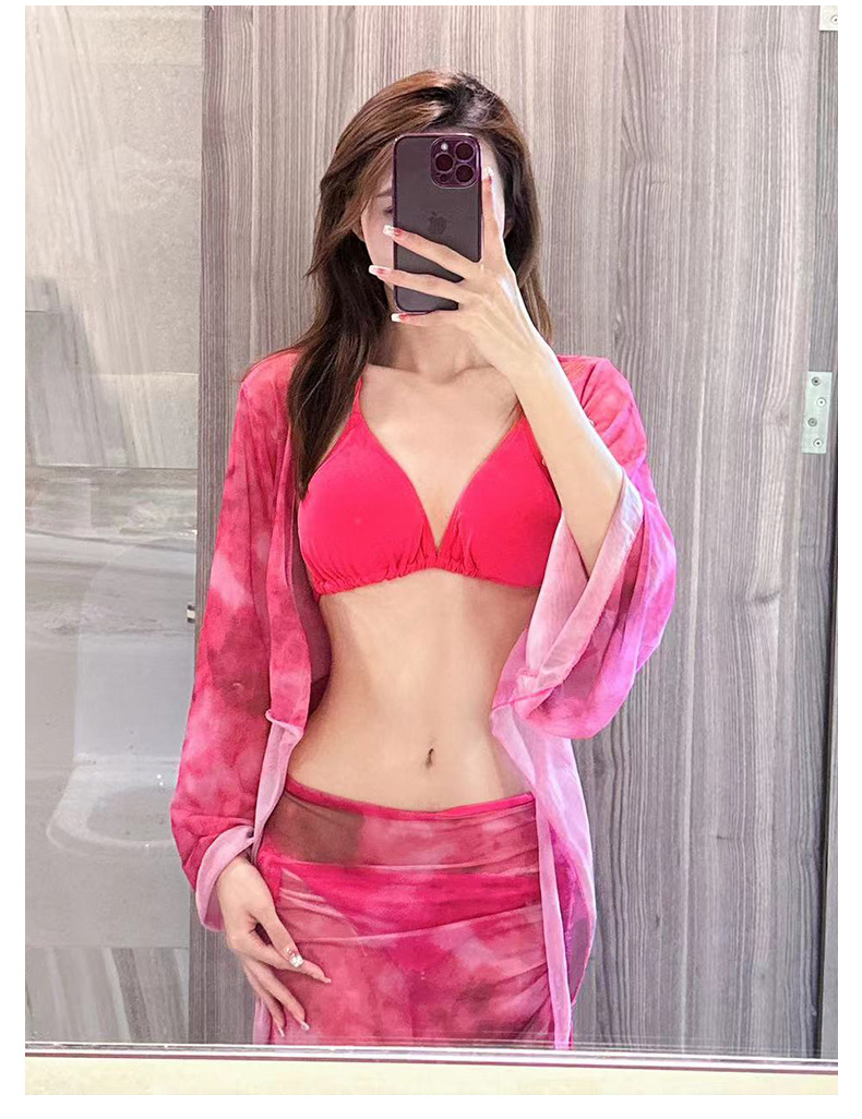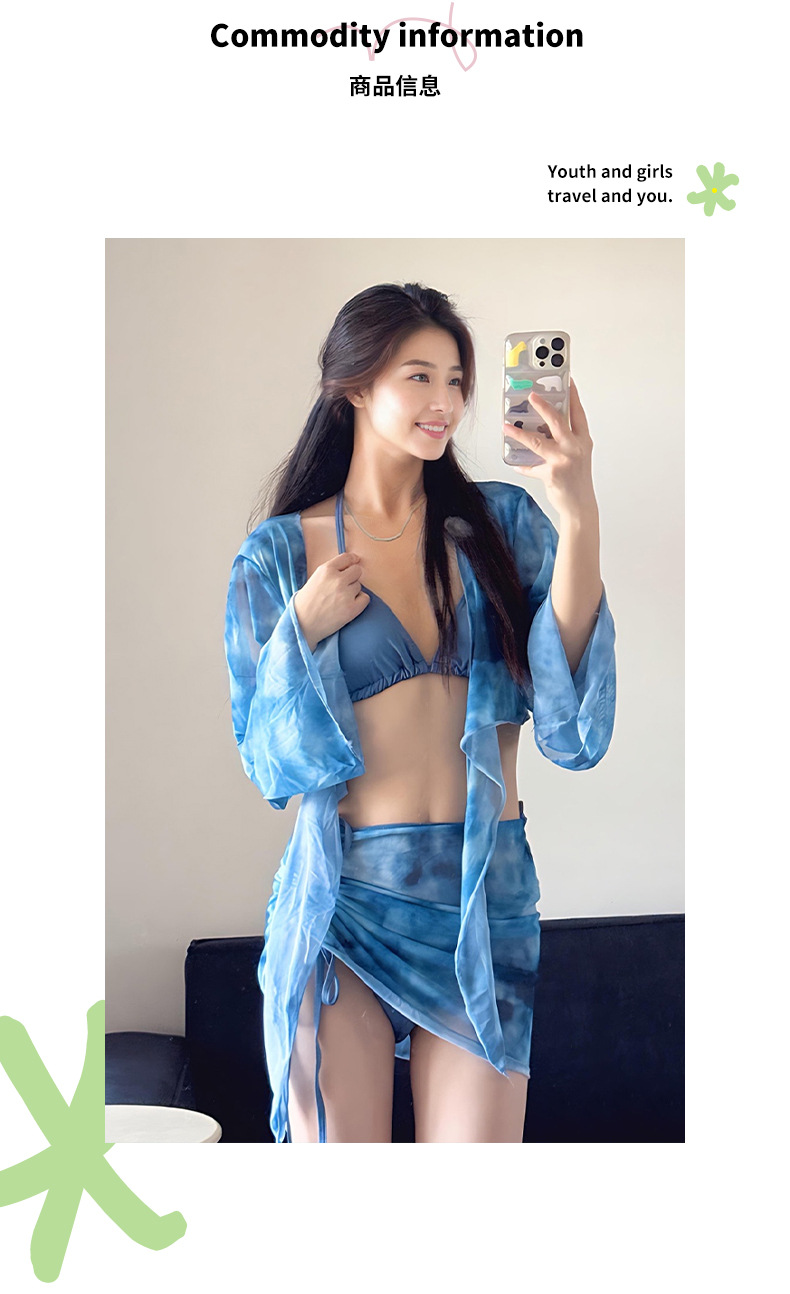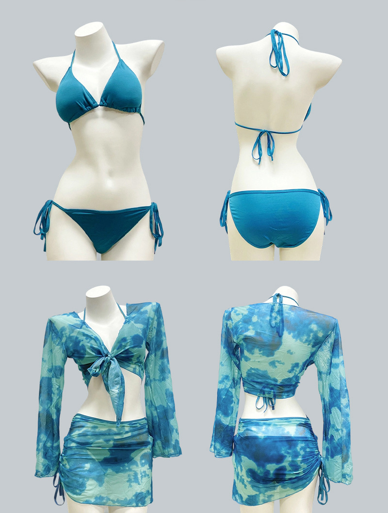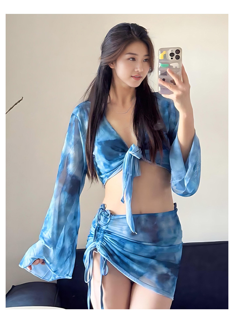 2025 새로운 수영복 여성 타이 염색 순수한 욕망 섹시한 스플릿 비키니 4 피스 세트 긴팔 자외선 차단제 하이 엔드 수영복스토어 가기