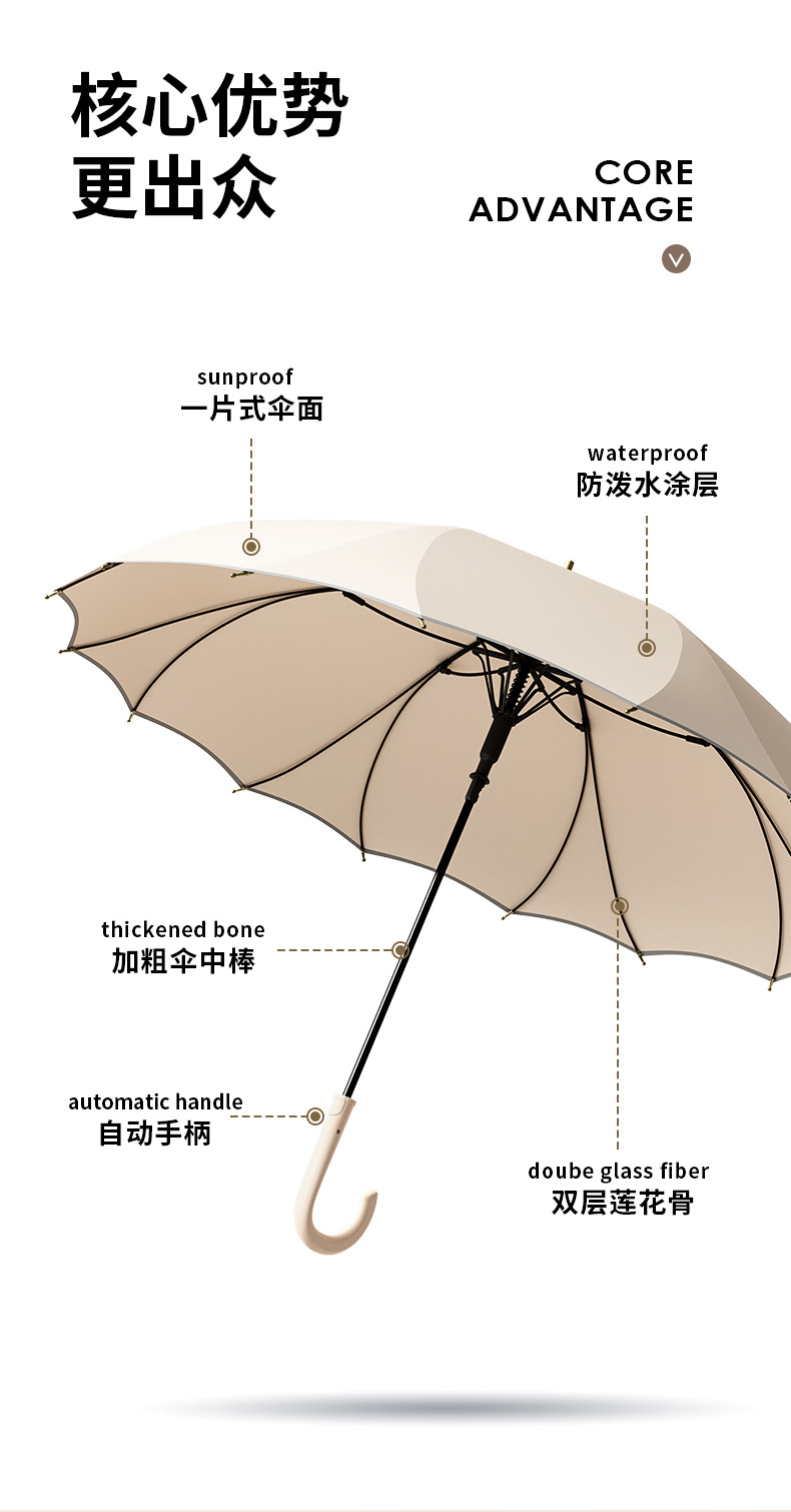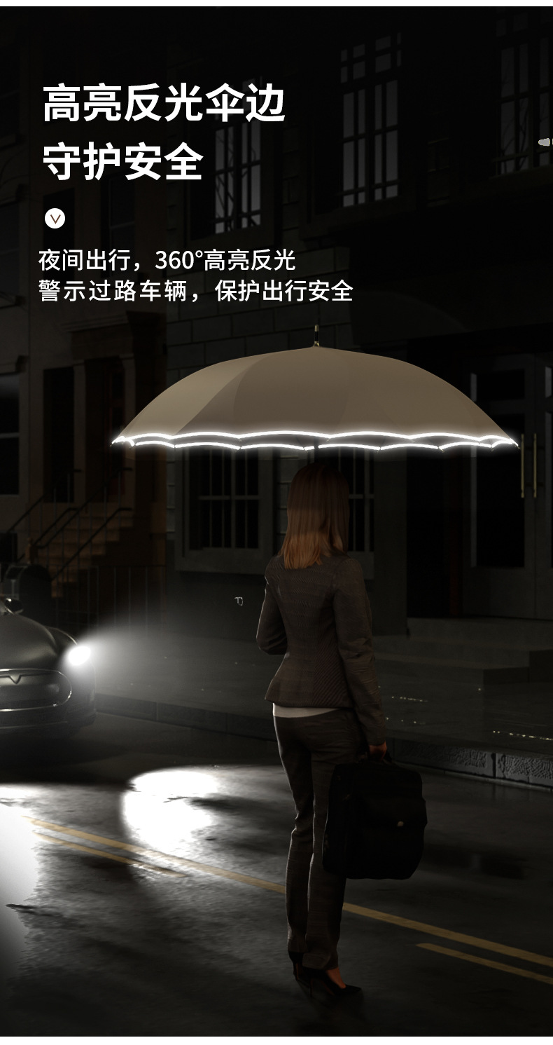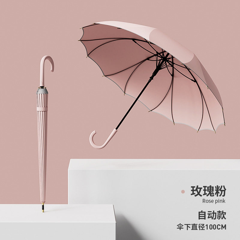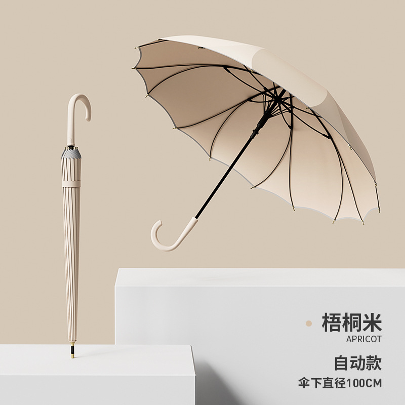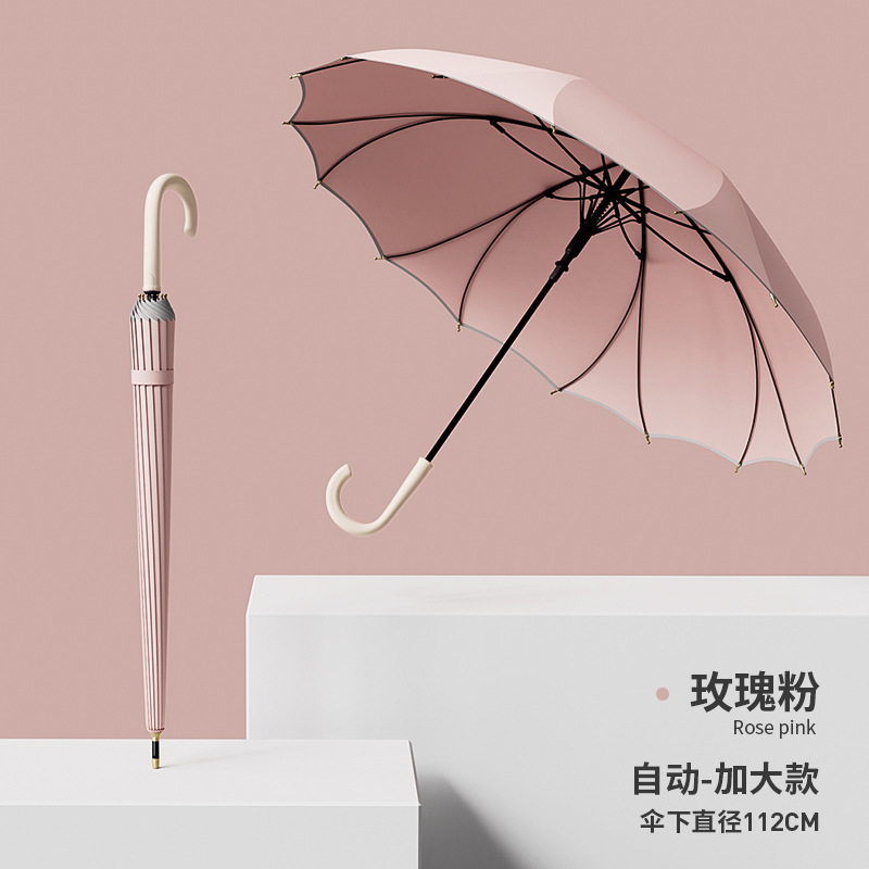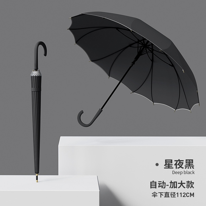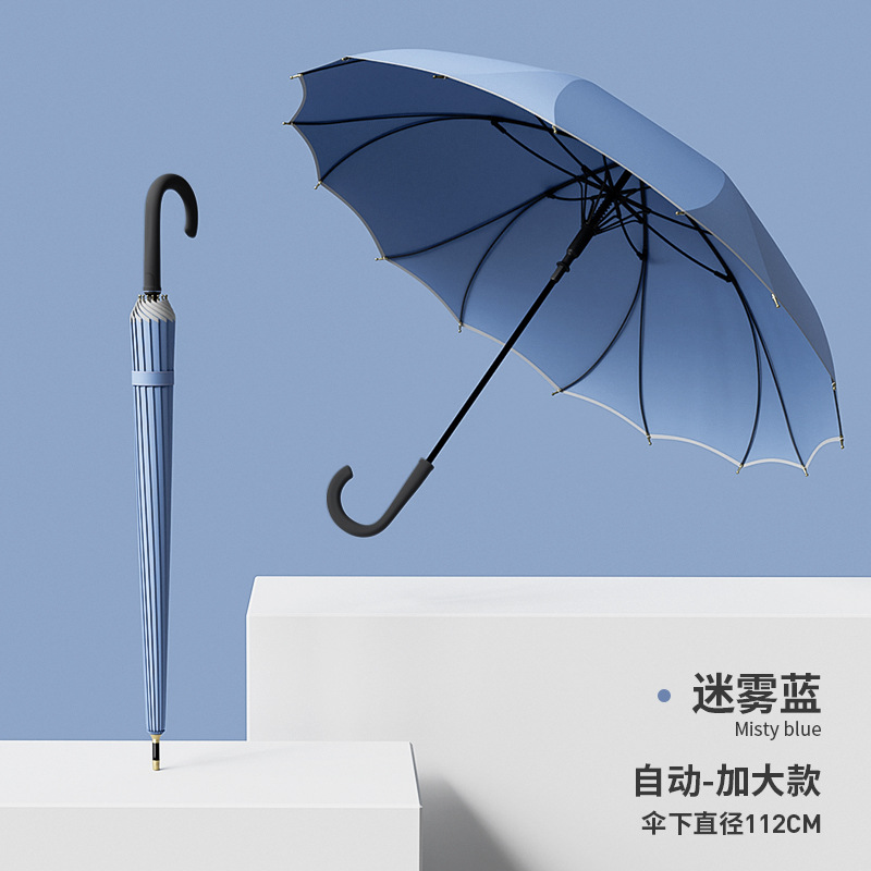 긴 손잡이, 16본, 자동 일체형, 방수 및 방풍, 더블 플러스 사이즈 직선 우산, 로고 인쇄 가능, 제조업체 도매스토어 가기