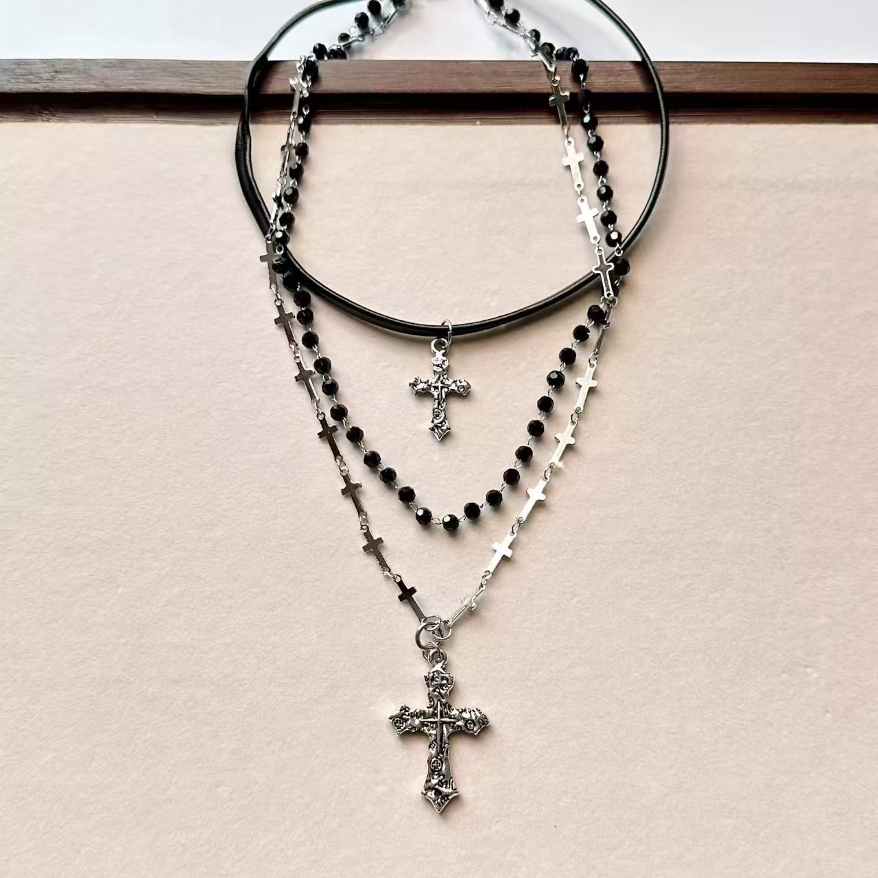 레트로 고딕 스타일 크로스 가죽 페르시 목걸이 다층 체인 틈새 쇄골 체인 펜던트 여성 액세서리 쥬얼리스토어 가기