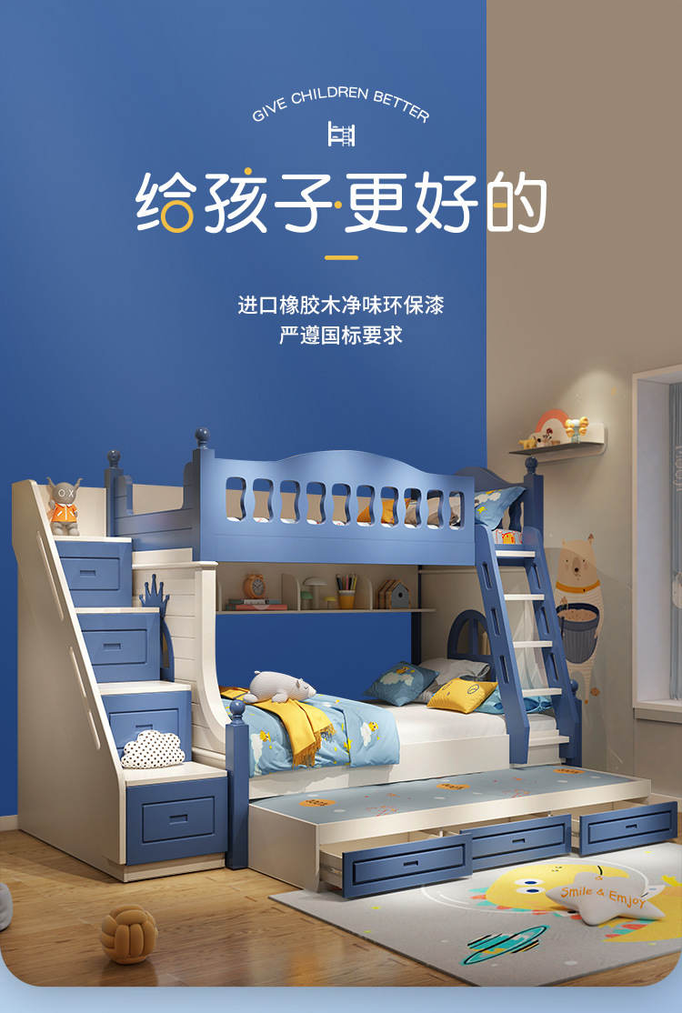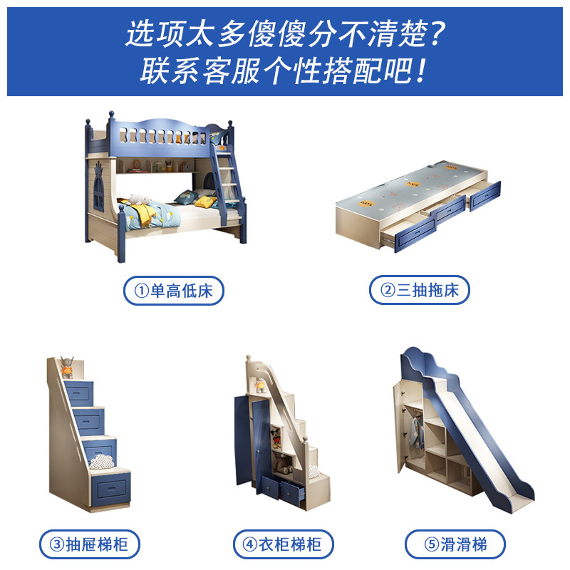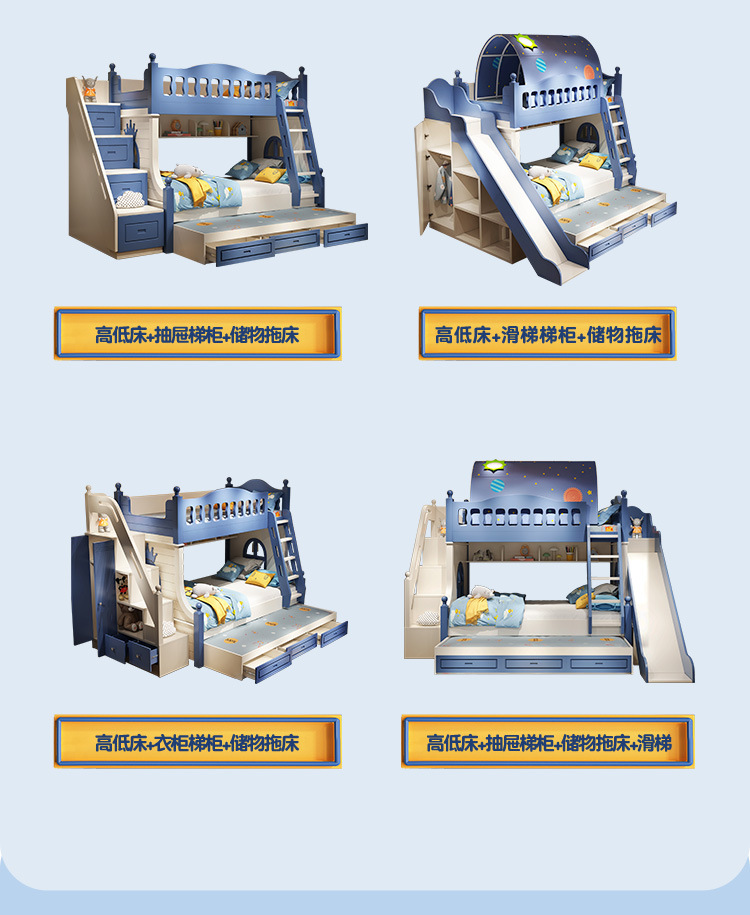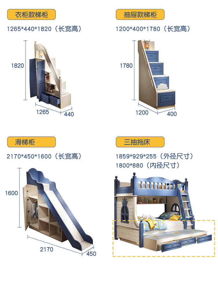 • 이층 침대 + 드래그 침대 + 서랍 사다리 캐비닛 + 슬라이드
