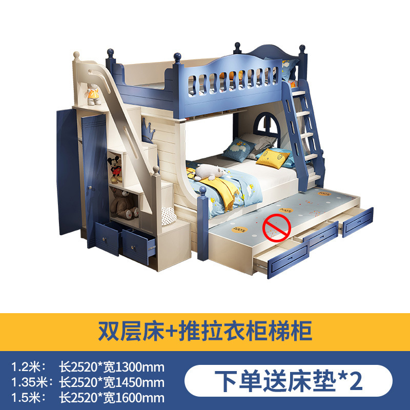 • 이층 침대 + 드래그 침대 + 슬라이딩 옷장 사다리 캐비닛