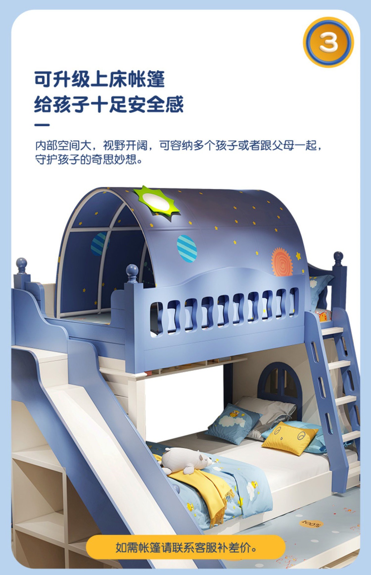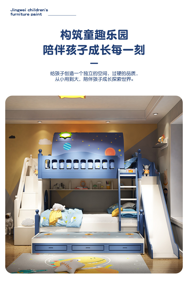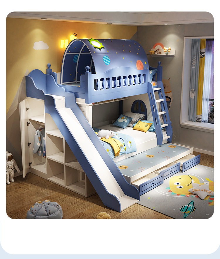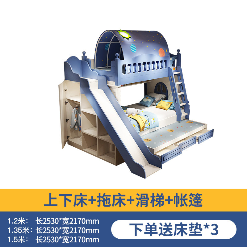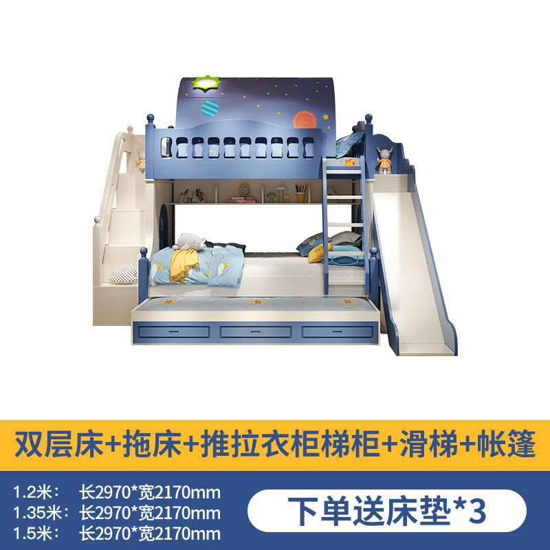 • 이층 침대 + 드래그 침대 + 미닫이 옷장 사다리 캐비닛 + 슬라이드 + 텐트