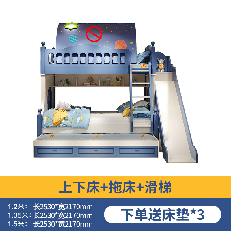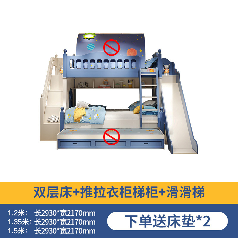 • 이층 침대 + 드래그 침대 + 미닫이 옷장 사다리 캐비닛 + 슬라이드