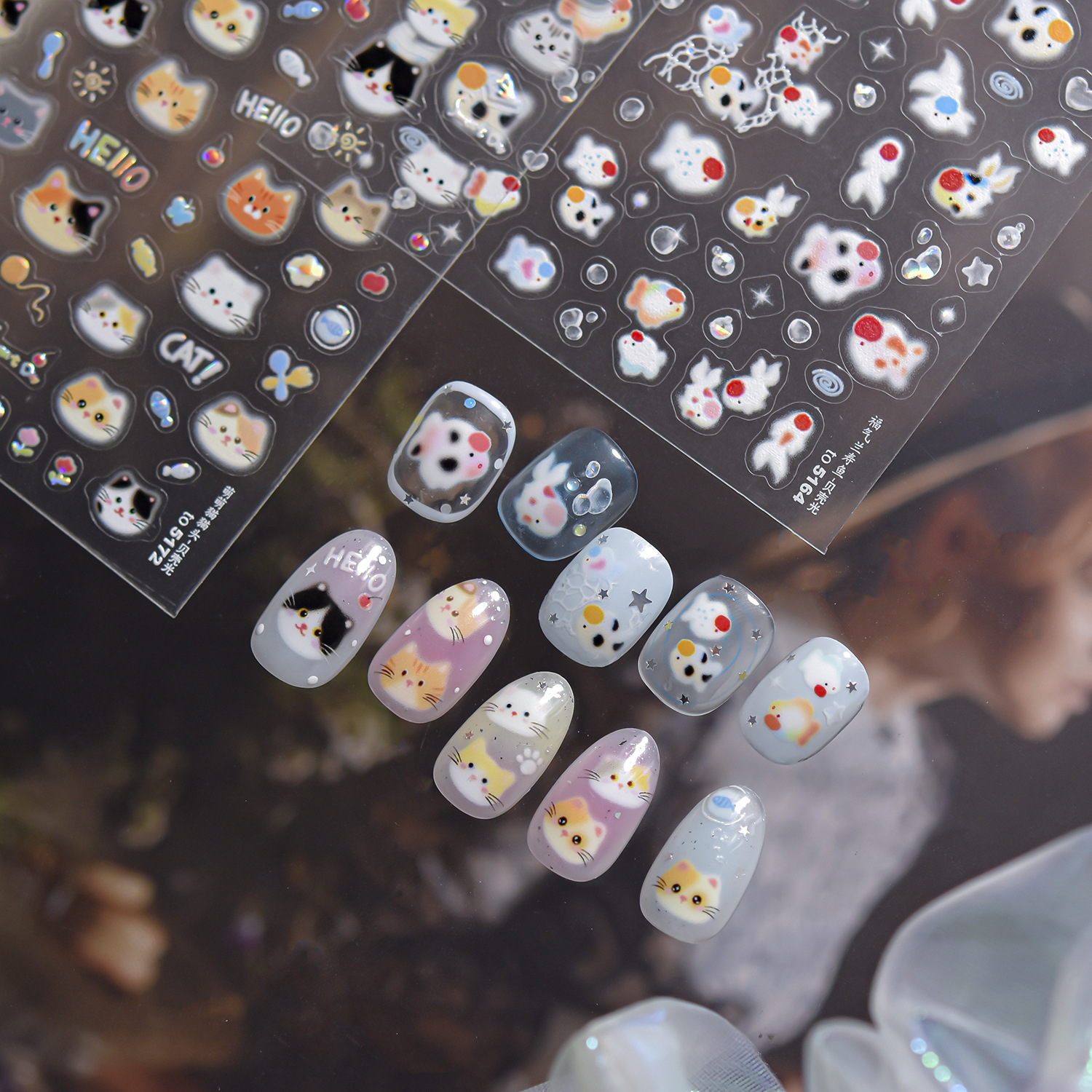 tomoni 쉘 라이트 네일 아트 스티커 인기 귀여운 어린이 네일 스티커 귀여운 고양이 머리 네일 아트 보조 스티커스토어 가기