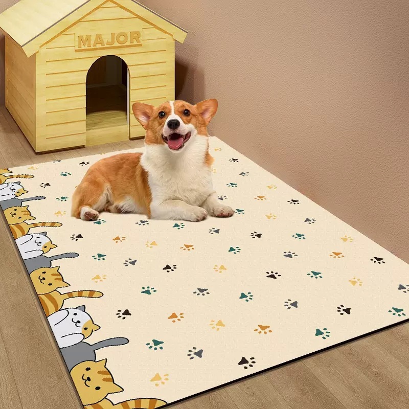 고양이와 개를 위한 만화 프린트 규조토 진흙 애완동물 울타리 매트, 얼룩 방지 및 관리가 쉬운 먹이 매트, 얼룩 방지, 흡수성 및 미끄럼 방지 바닥 매트