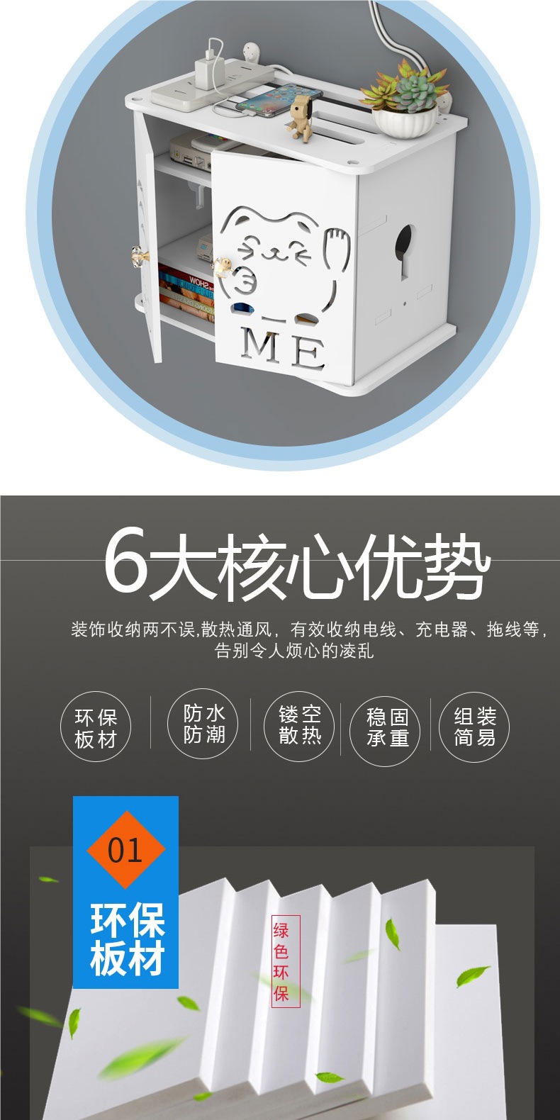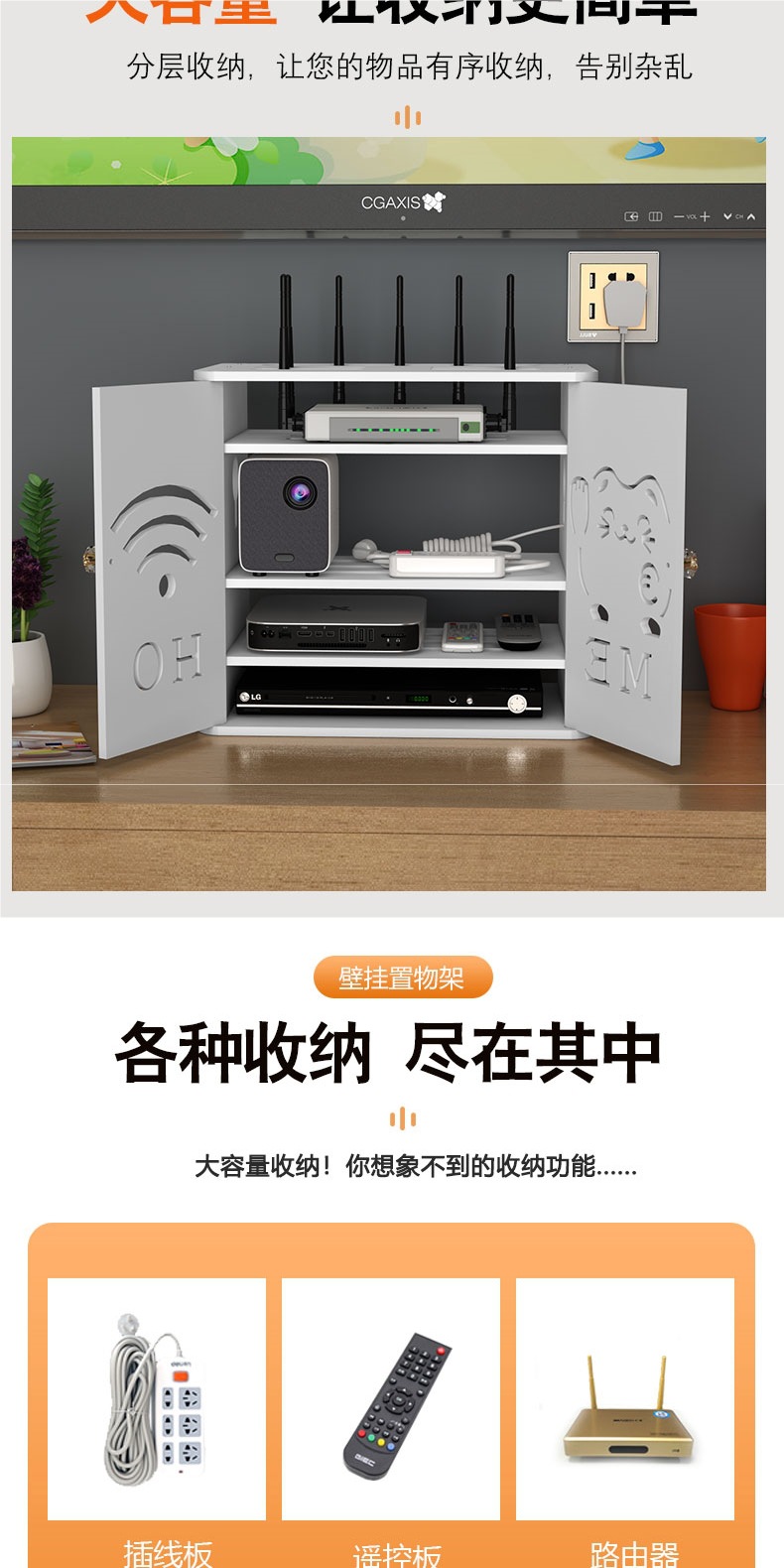라우터 보관함 무선 Wi-Fi 셋톱 박스 광고 고양이 보관함 거실 와이어 플러그인 정리함 및 차단 상자