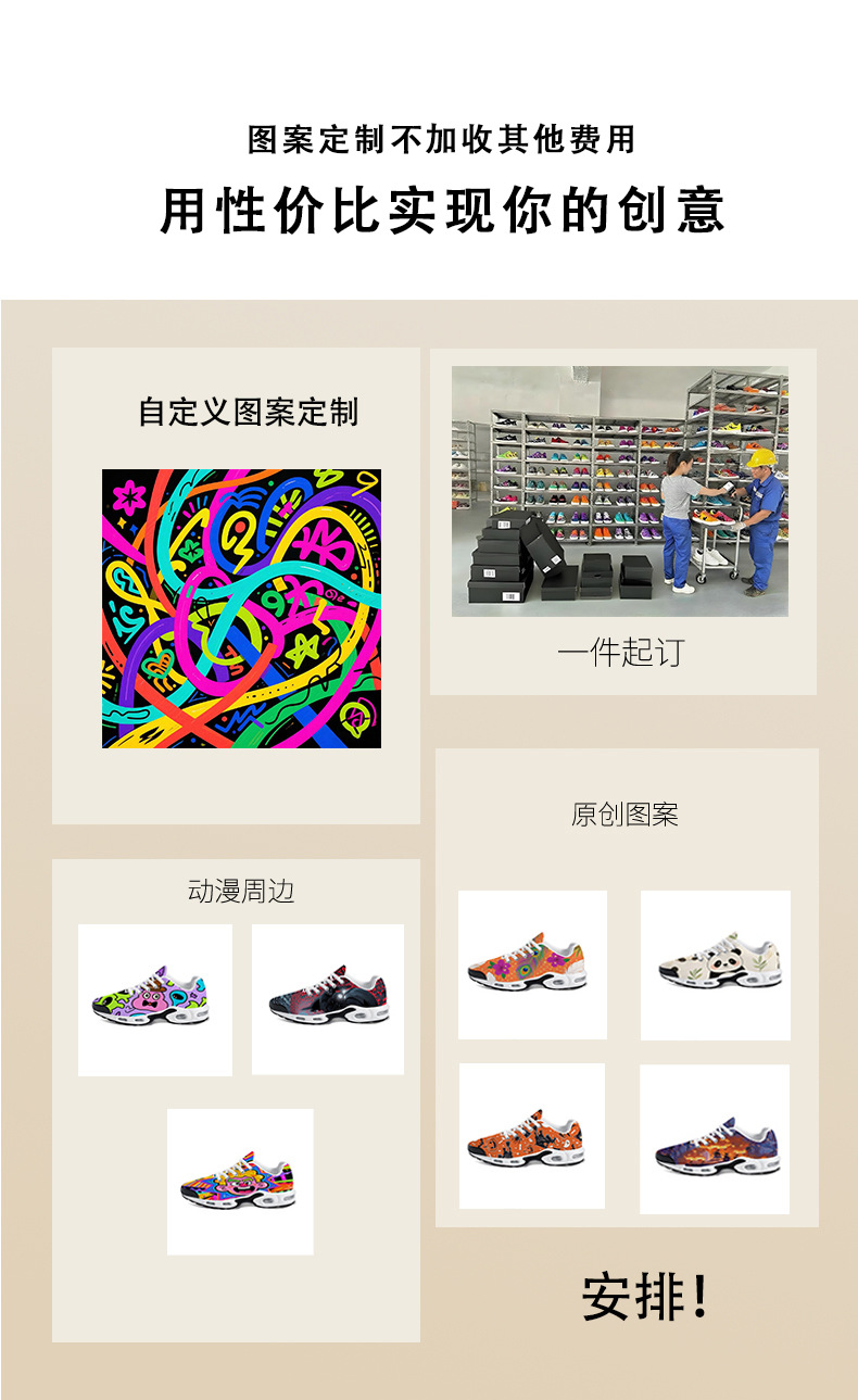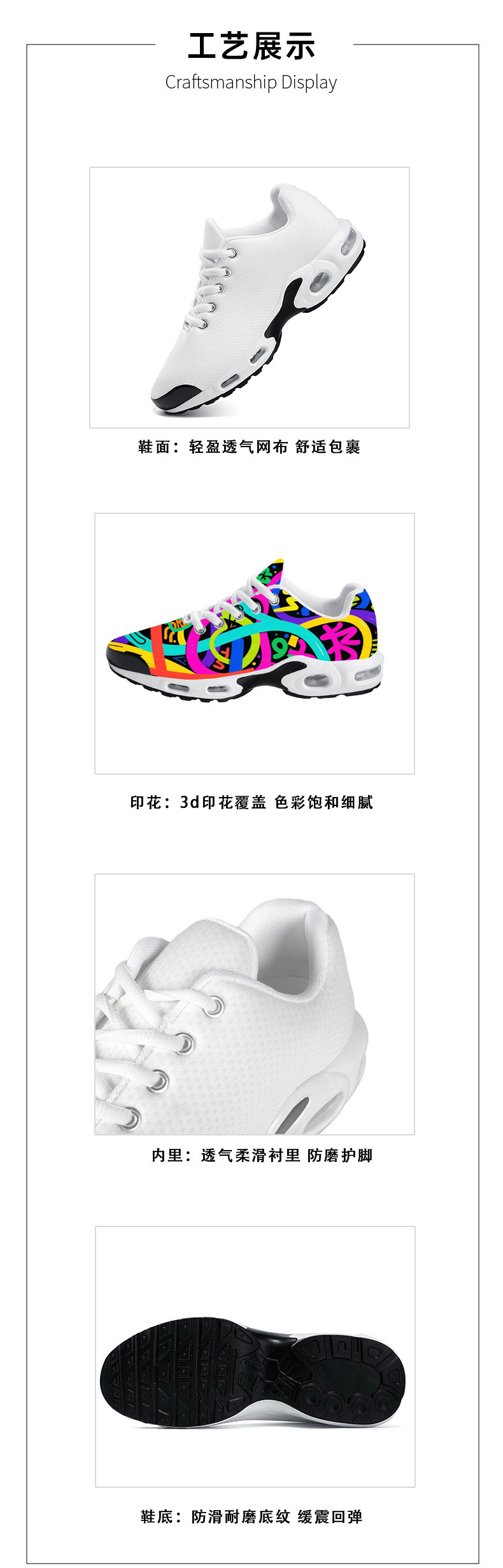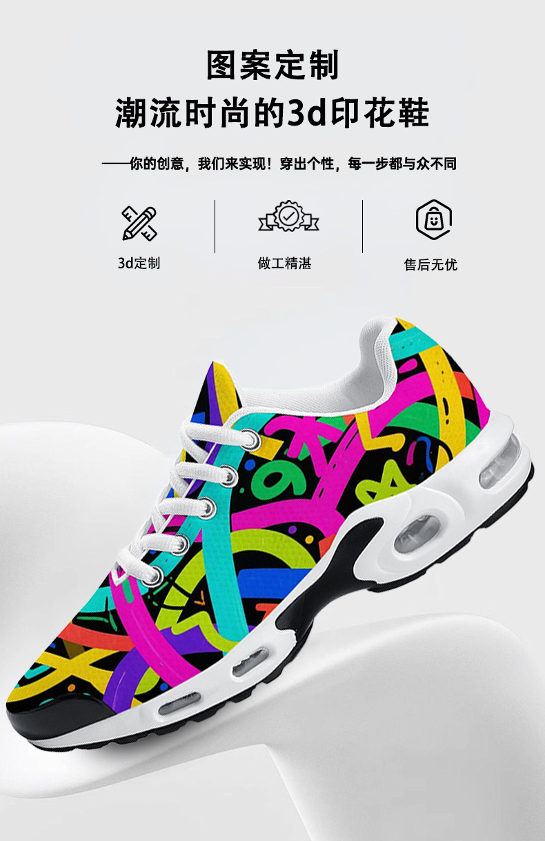 독립 스테이션 플라이 짠 에어 쿠션 스포츠 신발 유럽과 미국의 폴리 에스터 운동화 POD 커플 프론트 레이스 업 에어 쿠션 신발스토어 가기