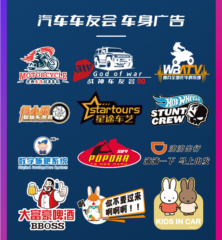 工厂批发pvc车贴定制防水防晒队徽车贴文字镂空反光贴镭射贴可移