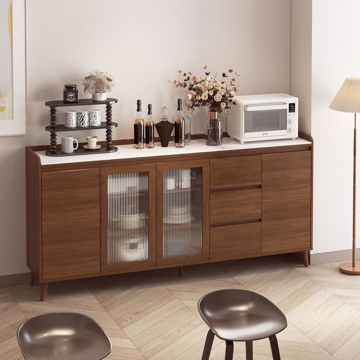 모든 원목 찬장, 차 수납장, 주방 수납장, 현대적인 미니멀리스트 거실 와인 캐비닛 수납장, 벽에 통합스토어 가기