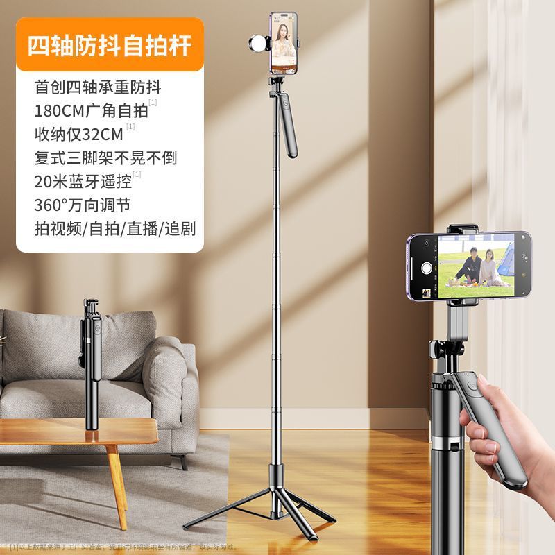 1.8m 셀카봉 삼각대 블루투스 휴대폰 라이브 방송 Douyin 360도 필 라이트 휴대용 플로어 스탠드 유니버설스토어 가기