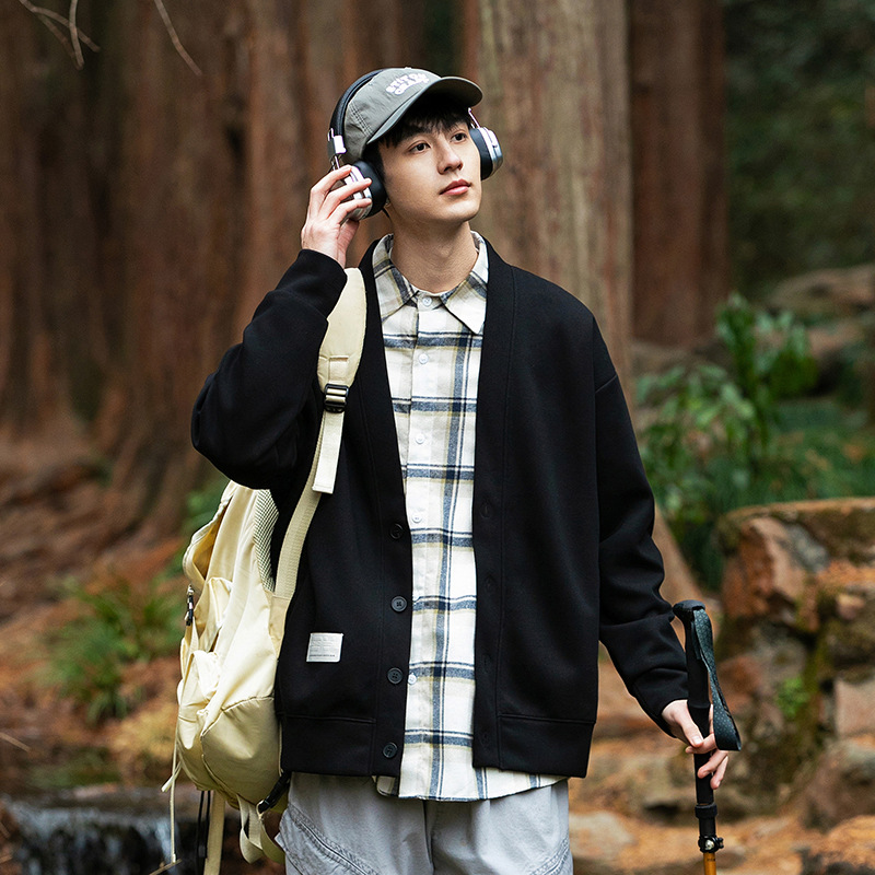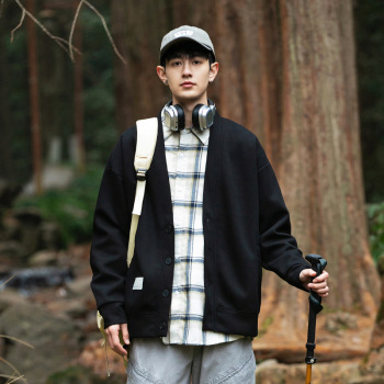 쿤하이펑윈 니트 가디건 스웨트셔츠 남성용 야외 가을 겨울 신상 루즈핏 트렌디 긴팔 남성용 두꺼운 코트 가을