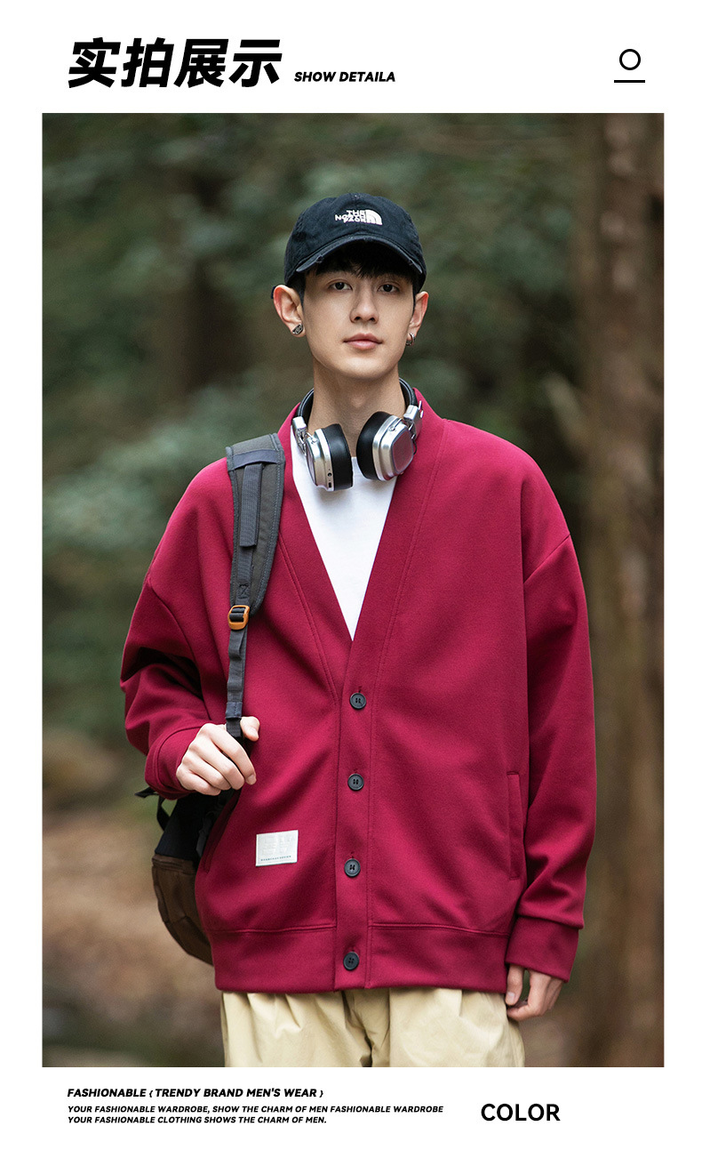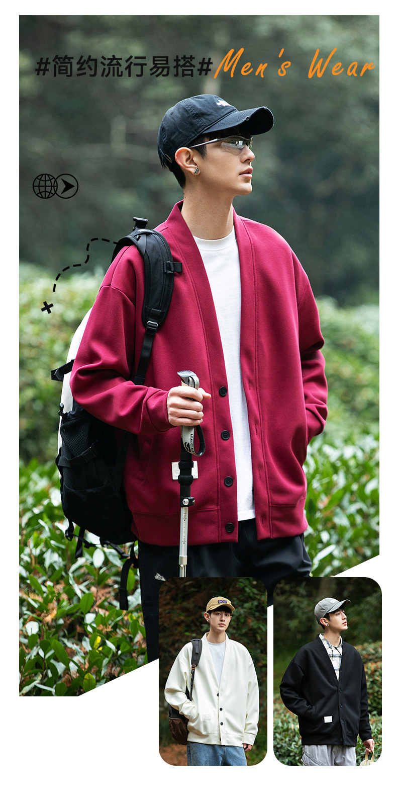 쿤하이펑윈 니트 가디건 스웨트셔츠 남성용 야외 가을 겨울 신상 루즈핏 트렌디 긴팔 남성용 두꺼운 코트 가을스토어 가기