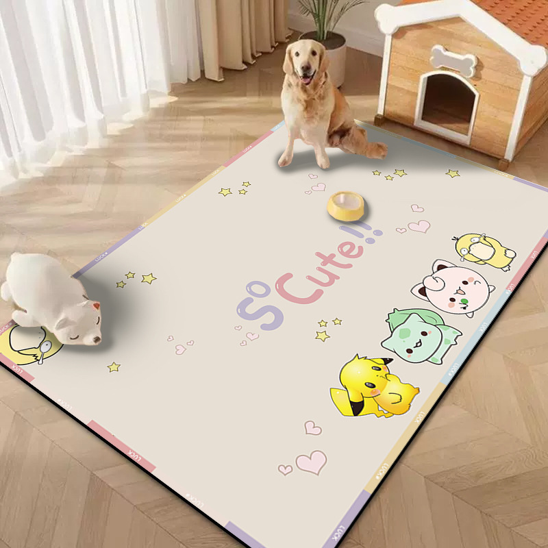 만화 PVC 깔끔한 바닥 매트, 절단 가능한 고양이 및 개 애완 동물 스플래시 방지 먹이 매트, 관리가 쉽고 세탁이 필요 없는 울타리 매트