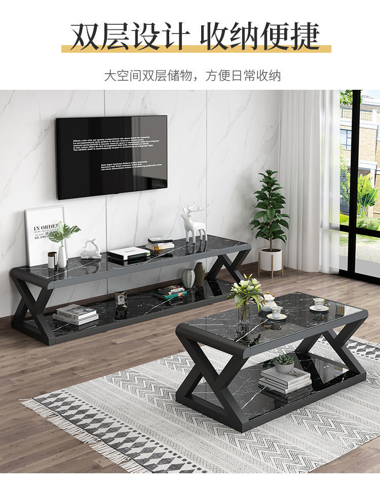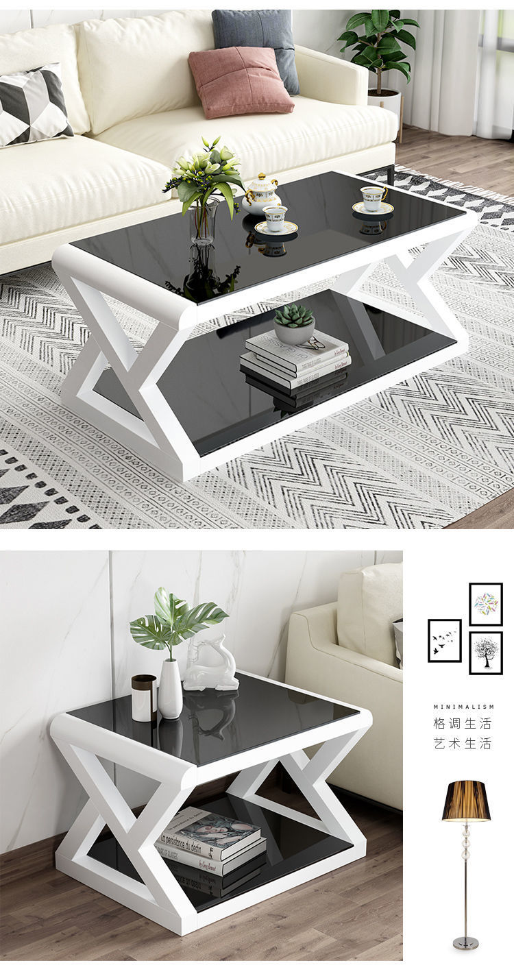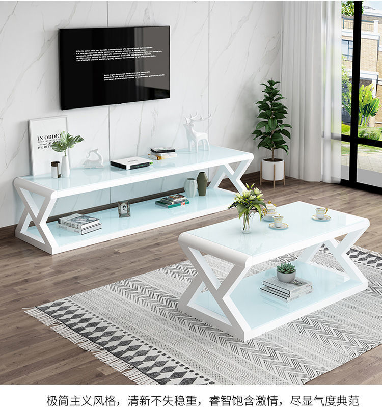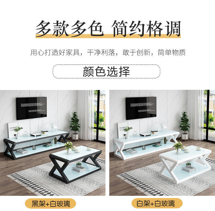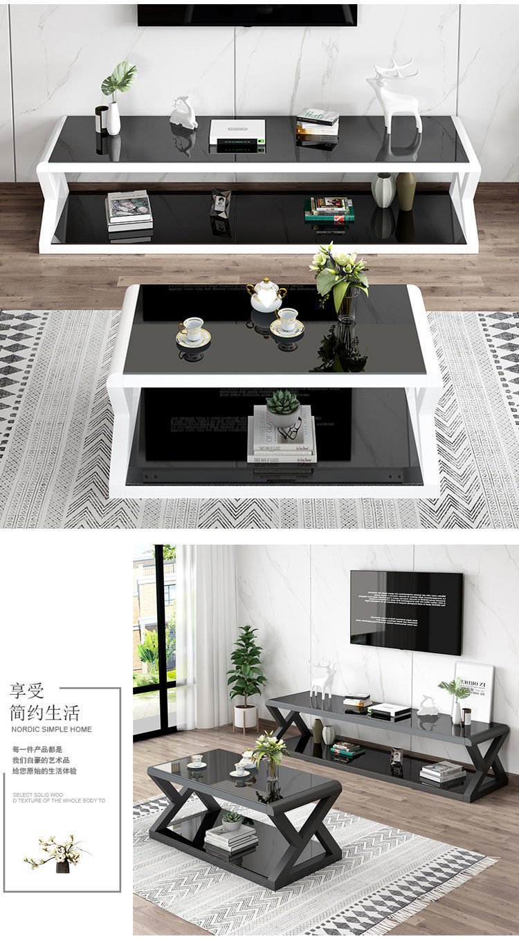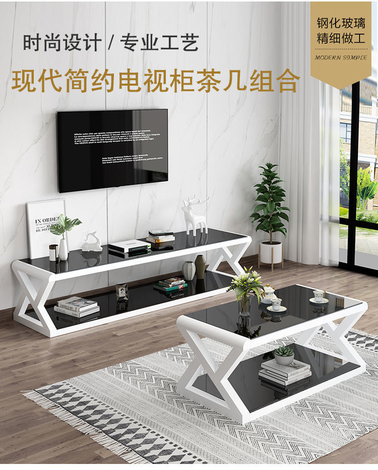 흑백 간단한 크기의 거실 TV 캐비닛 강화 유리 TV 캐비닛 커피 테이블 조합 세트 직접 판매스토어 가기